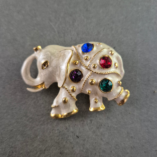 Verspielte Elefanten-Brosche mit bunten Schmucksteinen – Exotischer Hingucker