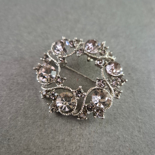 Glamouröse Vintage-Brosche mit klaren Strasssteinen – Rundes Design