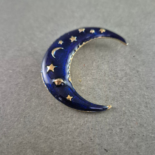 Halbmond-Brosche mit Sternenmuster – Mystischer Nachthimmel-Look