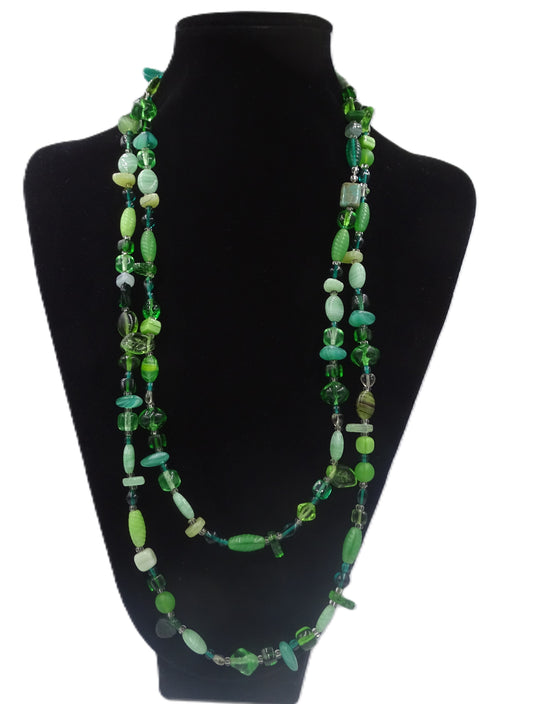 Mehrstrangige Perlenkette in Grüntönen 1970/80 - Opera Länge ca. 130 cm
