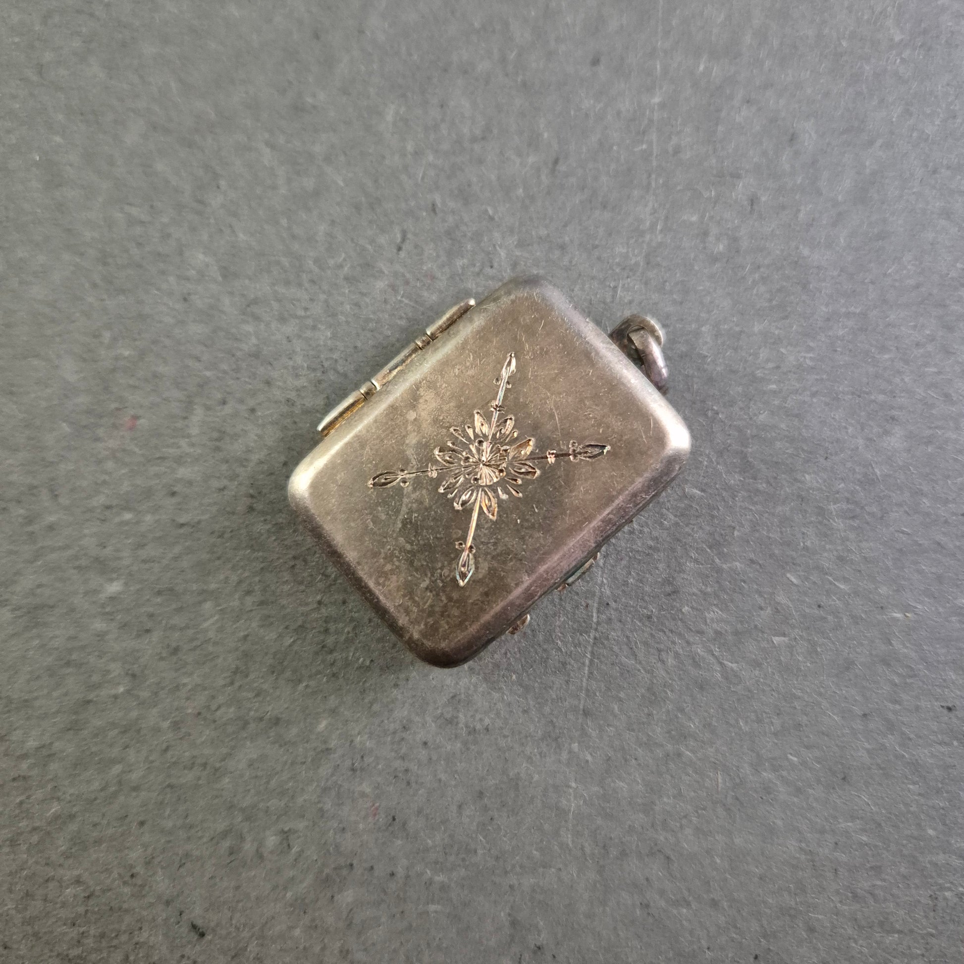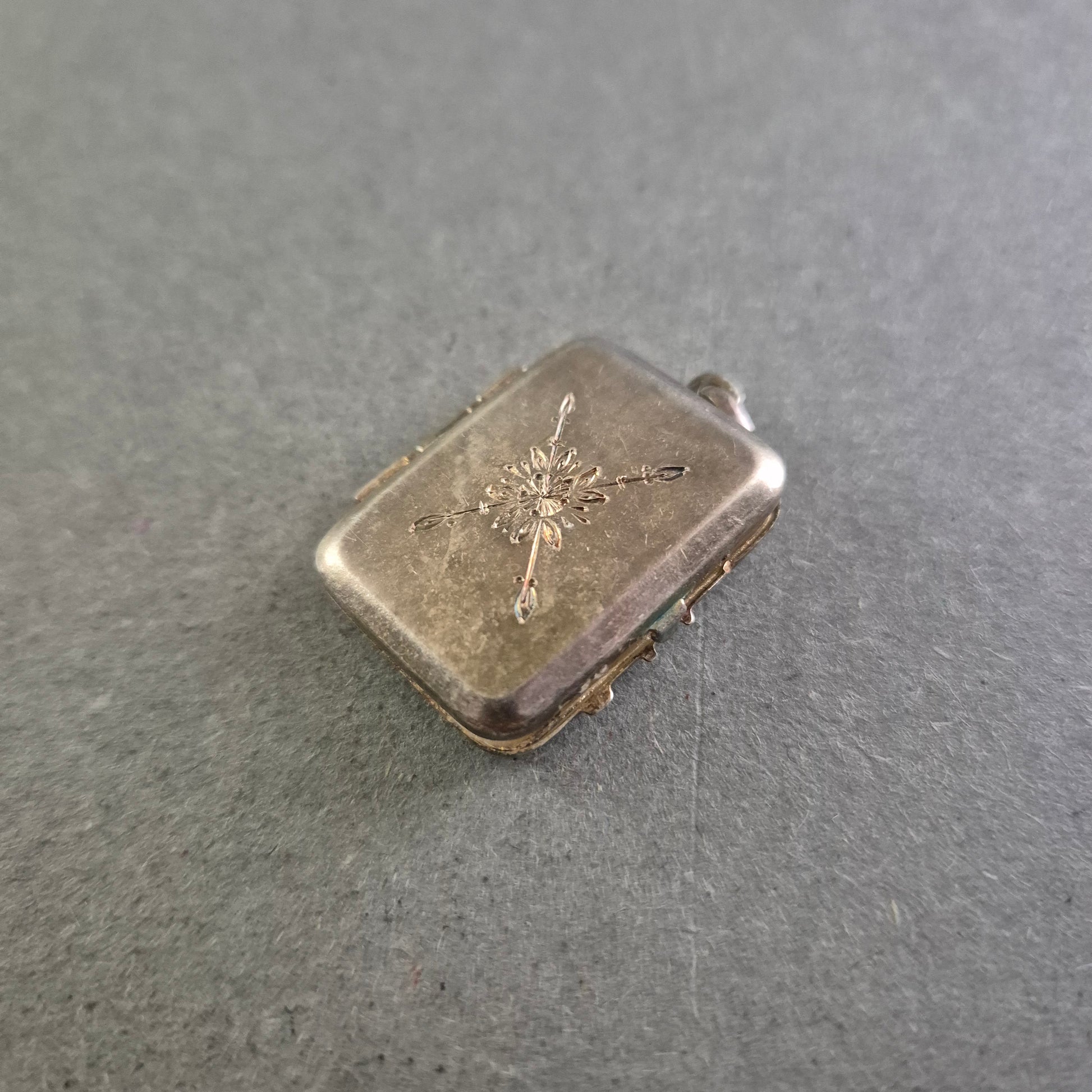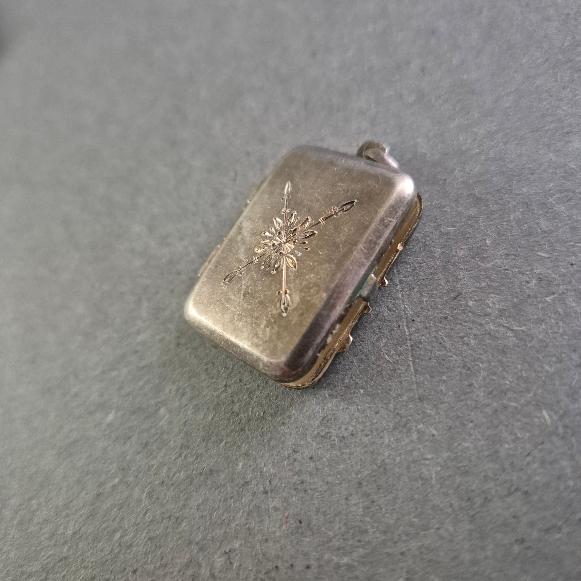 Antiker rechteckiger Medaillon-Anhänger aus echtem Silber mit zarter Gravur