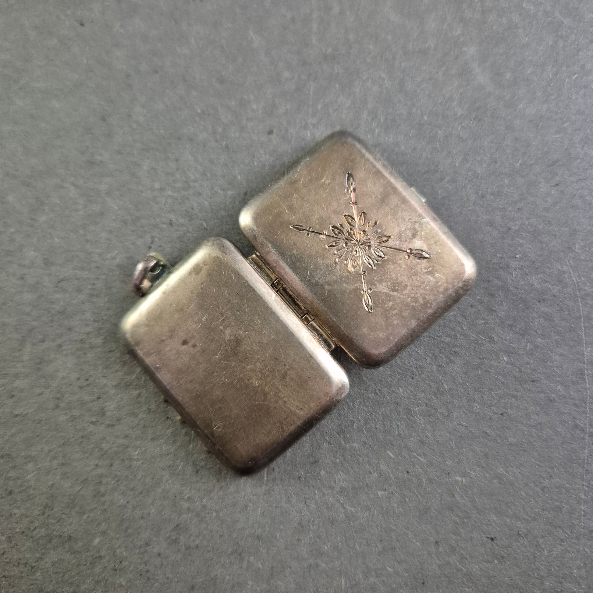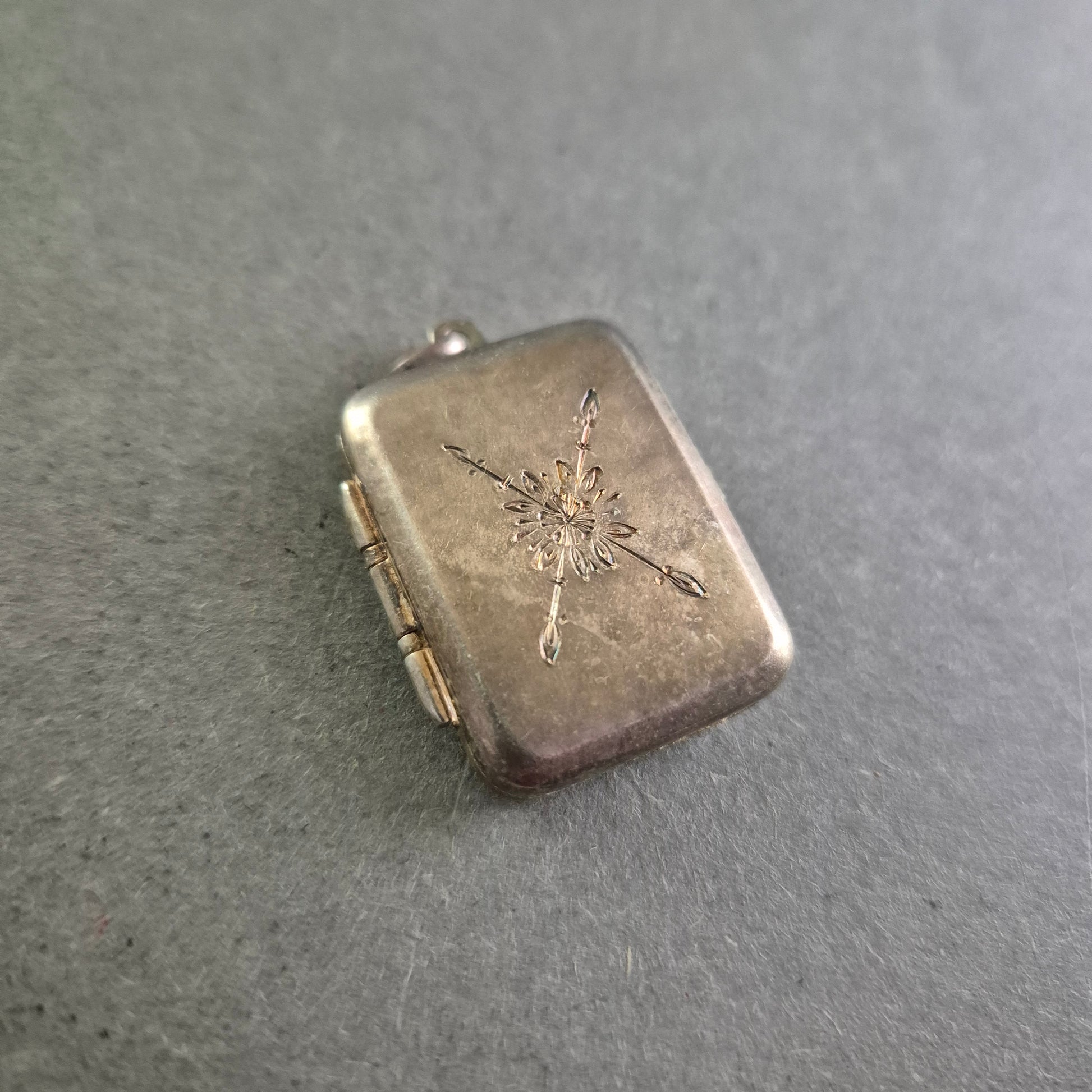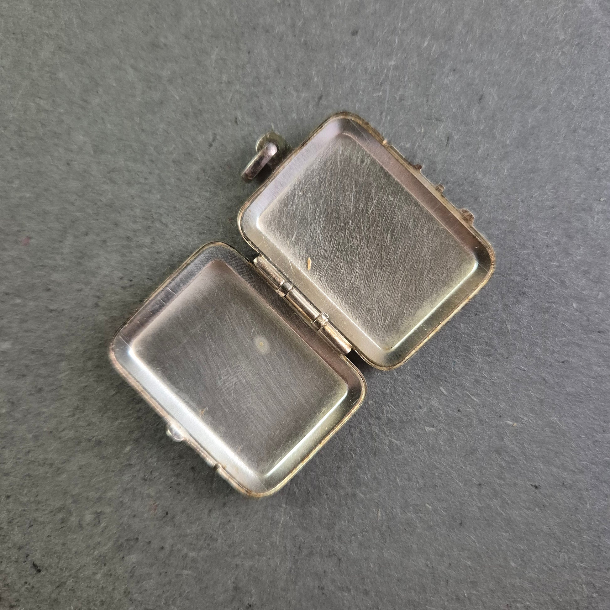 Antiker rechteckiger Medaillon-Anhänger aus echtem Silber mit zarter Gravur
