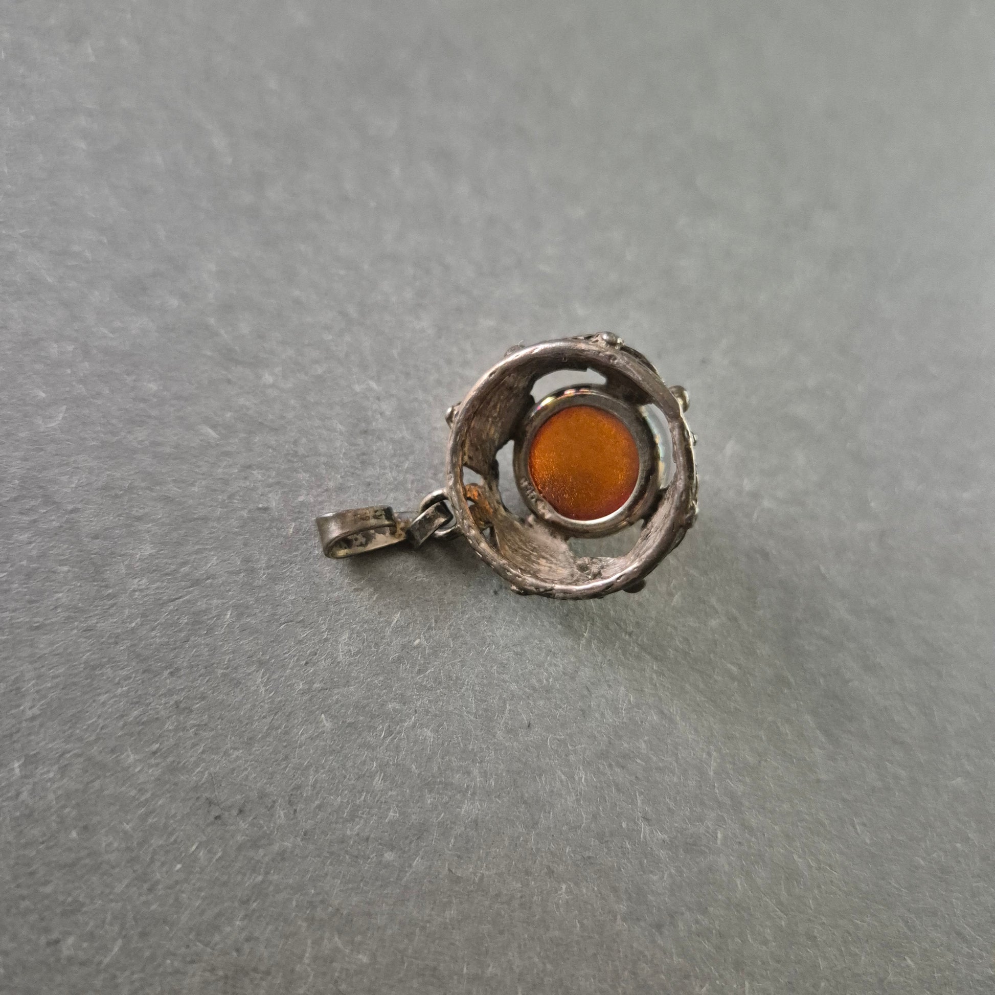 Antiker Silberanhänger mit rundem Bernstein – Eleganter Vintage-Schmuck