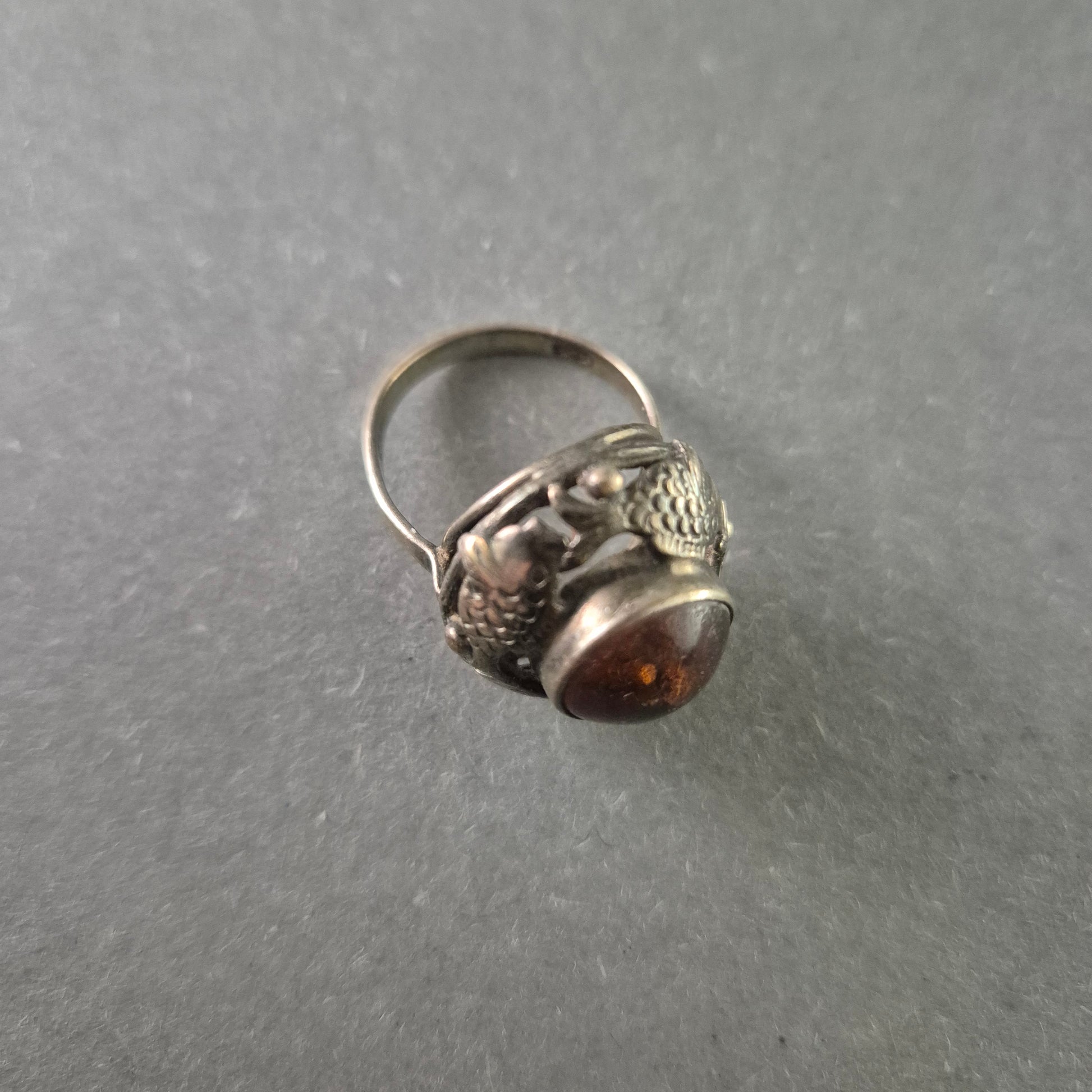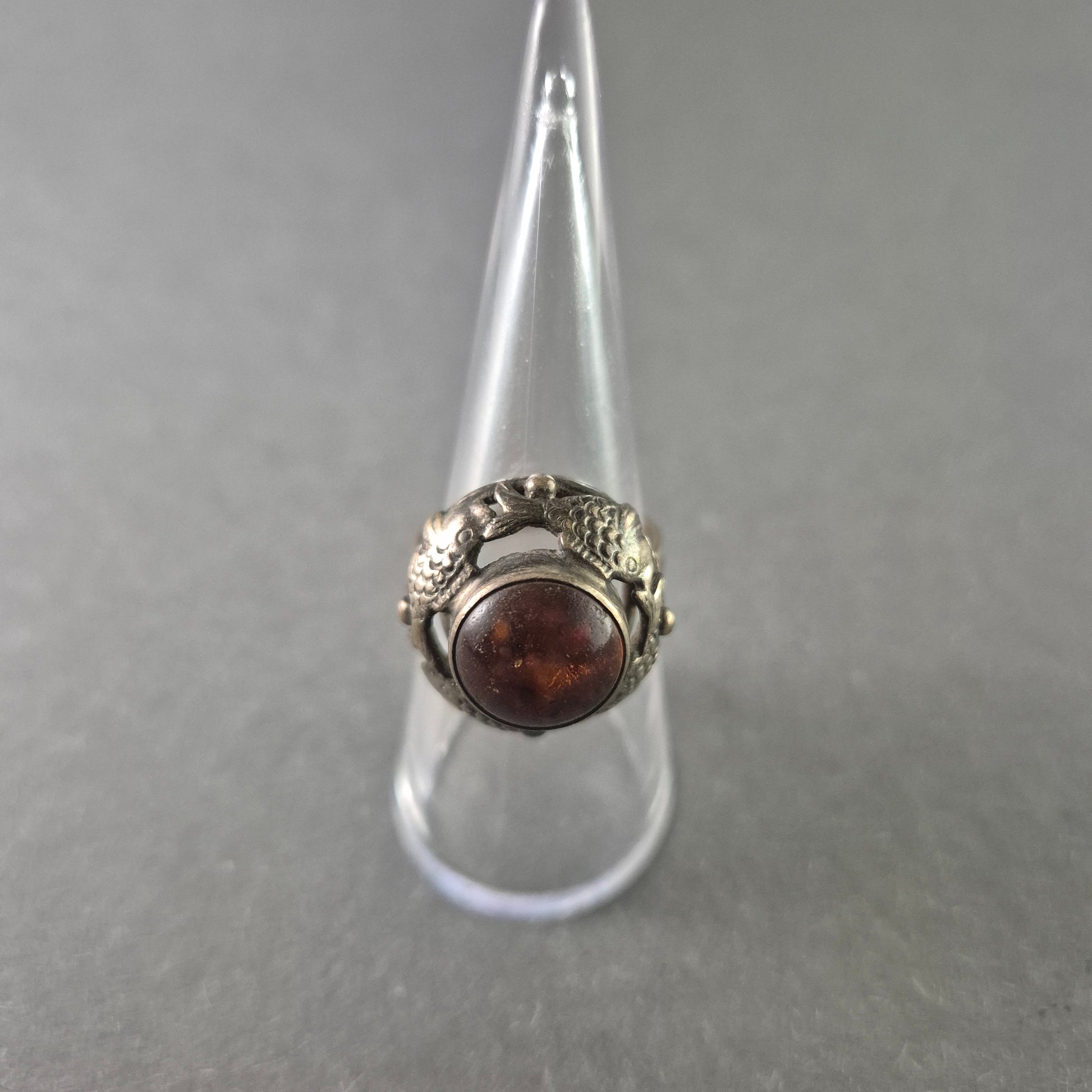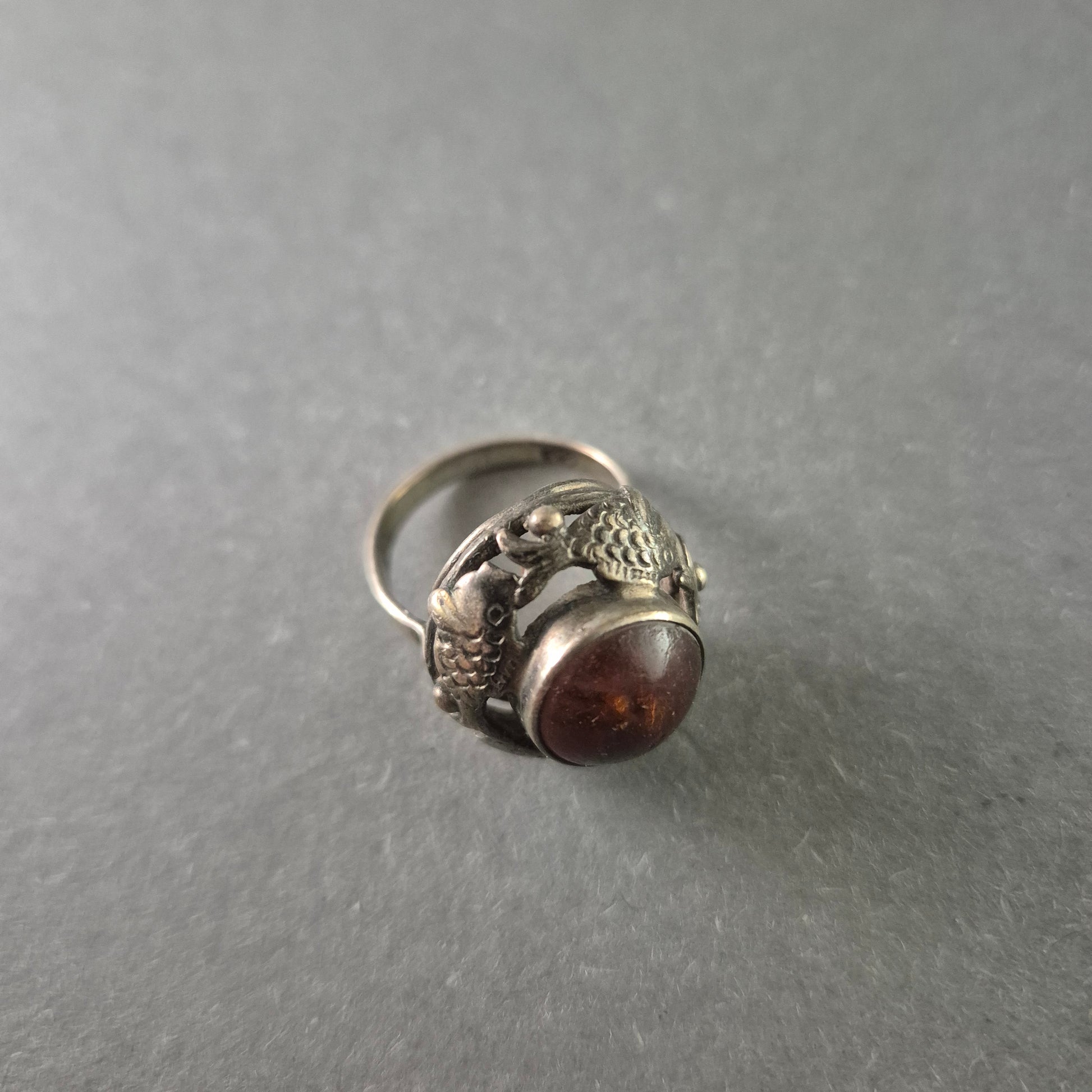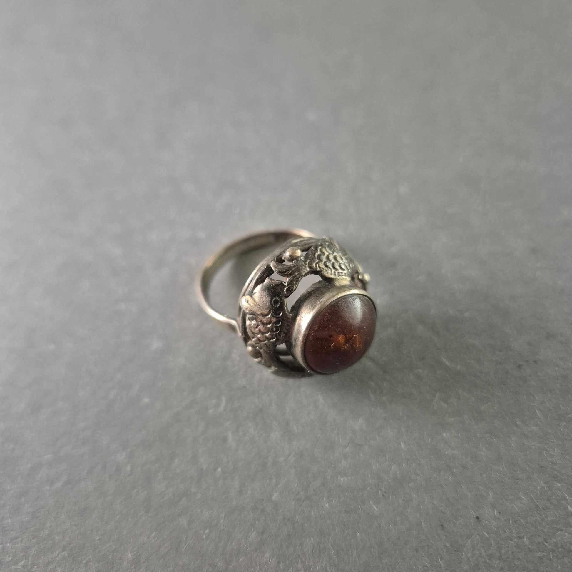 Antiker Silberring mit Bernstein – Exquisites Drachenmotiv