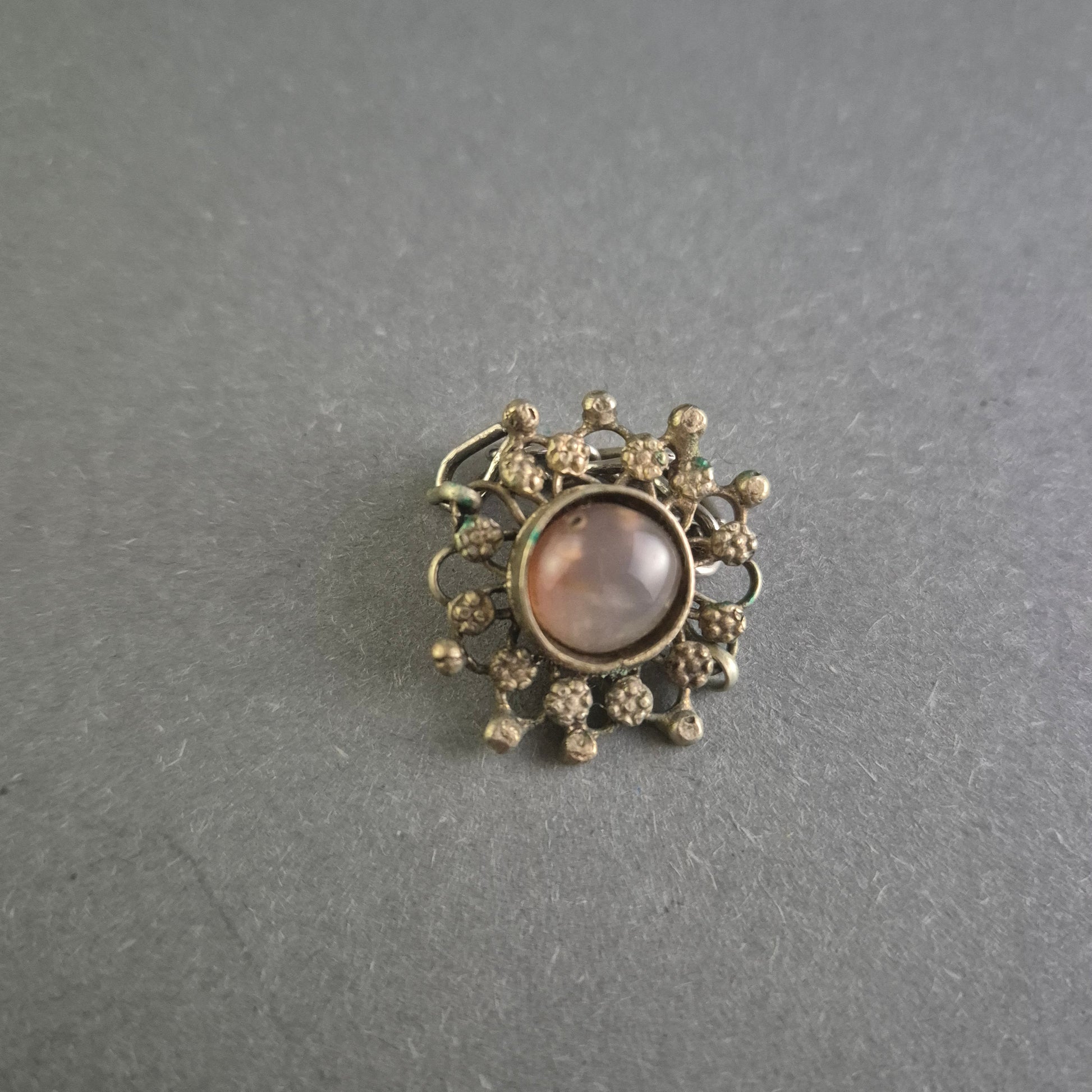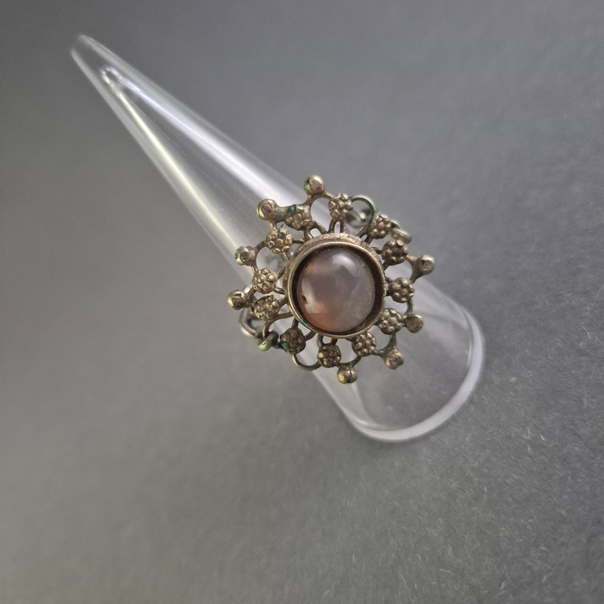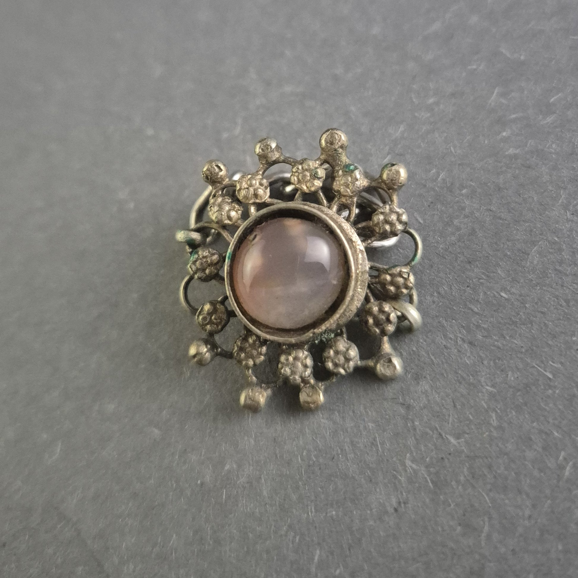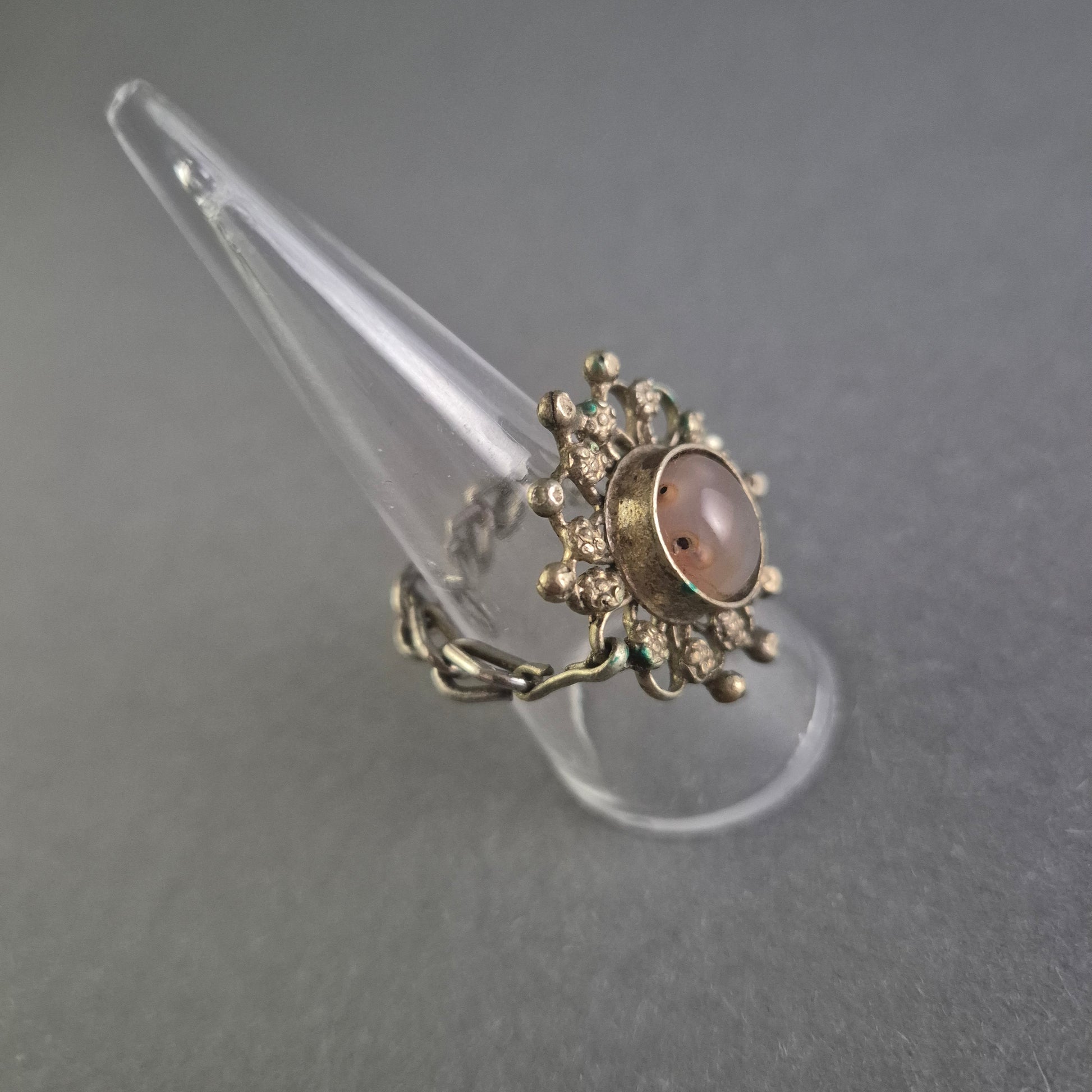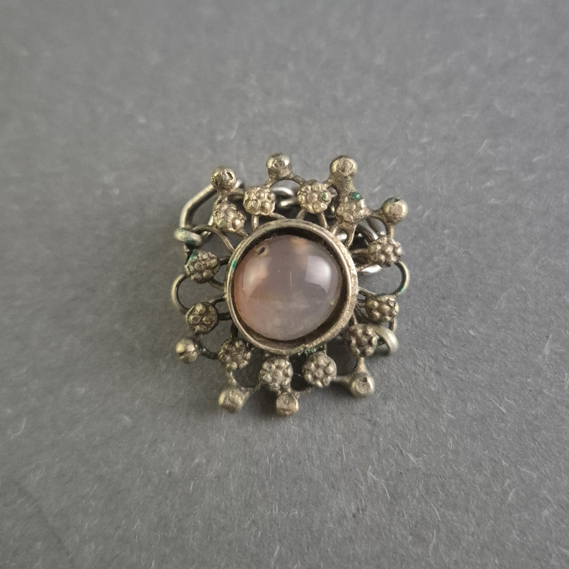 Antiker Silberring mit floraler Verzierung und Steinbesatz