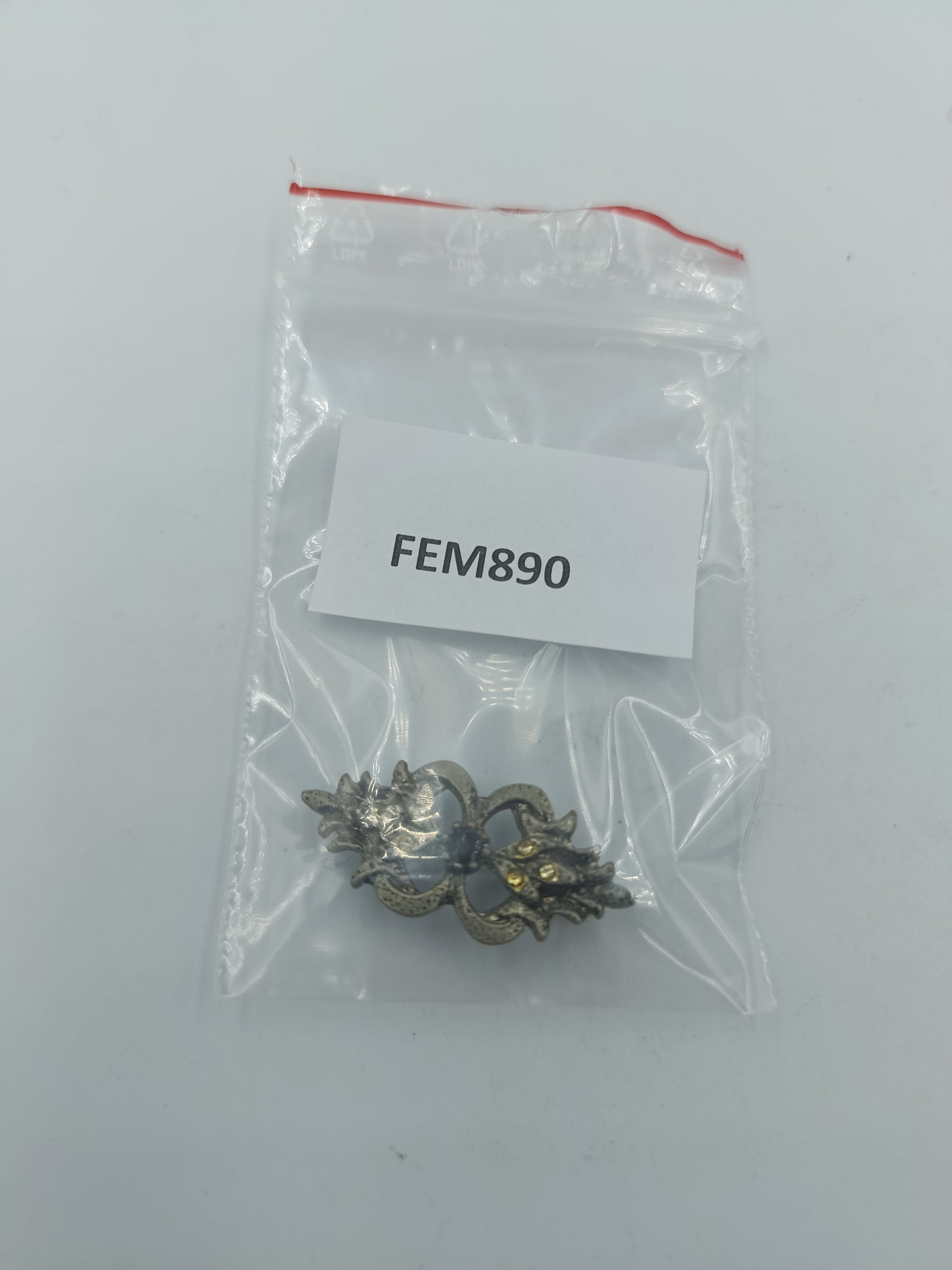• Farbe: Antiksilber mit gelben und dunklen Strasssteinen