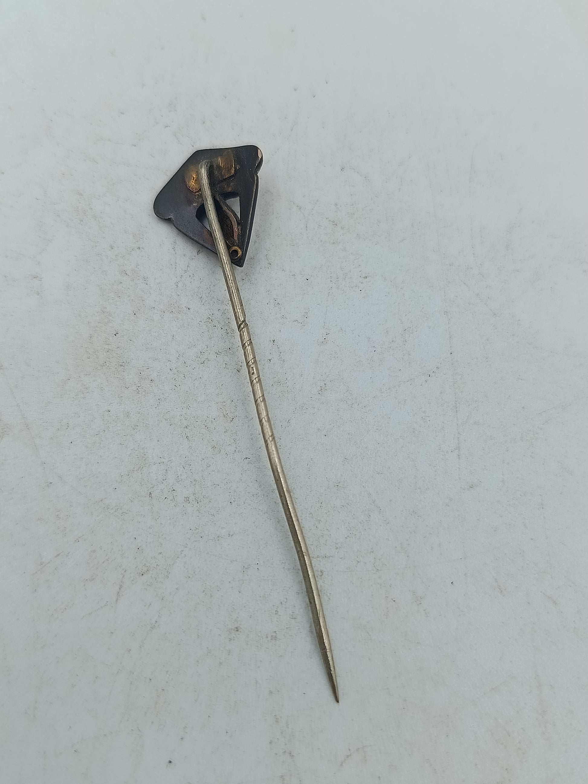 Diese elegante Anstecknadel zeigt ein klassisches Art déco Design mit einer länglichen Opal Einlage in leuchtendem Blau Grün die je nach Licht geheimnisvoll schimmert. Kleine rote Steine setzen einen edlen Kontrast und unterstreichen den warmen Goldton der vermutlich vergoldeten Fassung. Die feine Stabform macht sie ideal für Revers Schals oder Hüte und verleiht jedem Outfit einen besonderen Akzent.