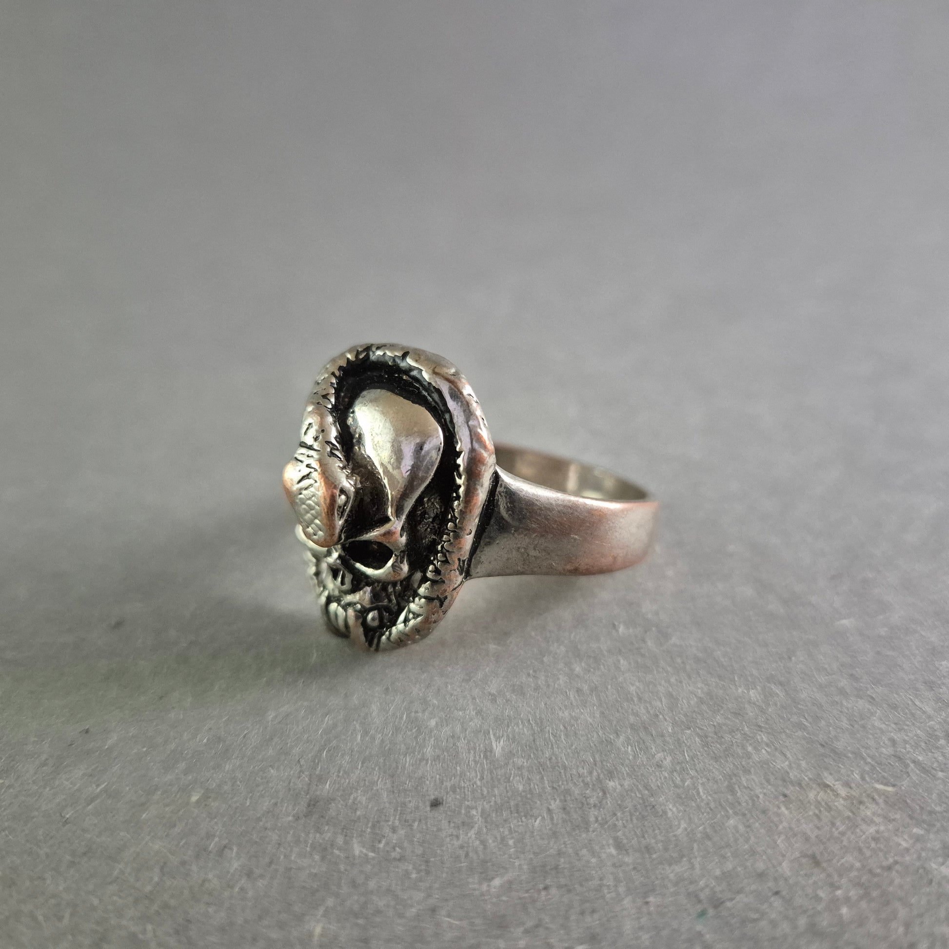 Ausgefallener Totenkopf-Ring mit Schlange – Markantes Statement-Piece
