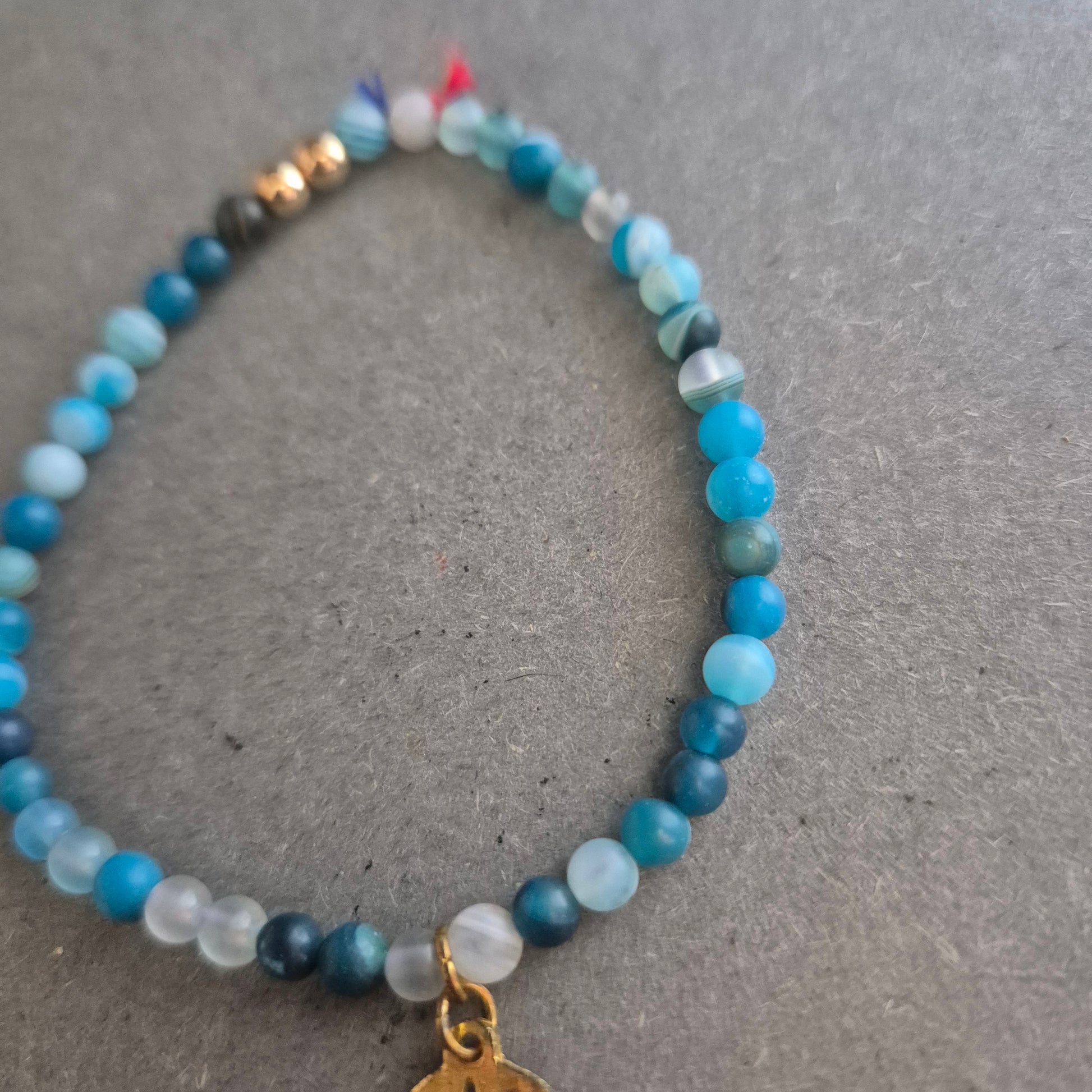 Elastisches Armband mit blauen Glasperlen & Anhänger – Boho-Style