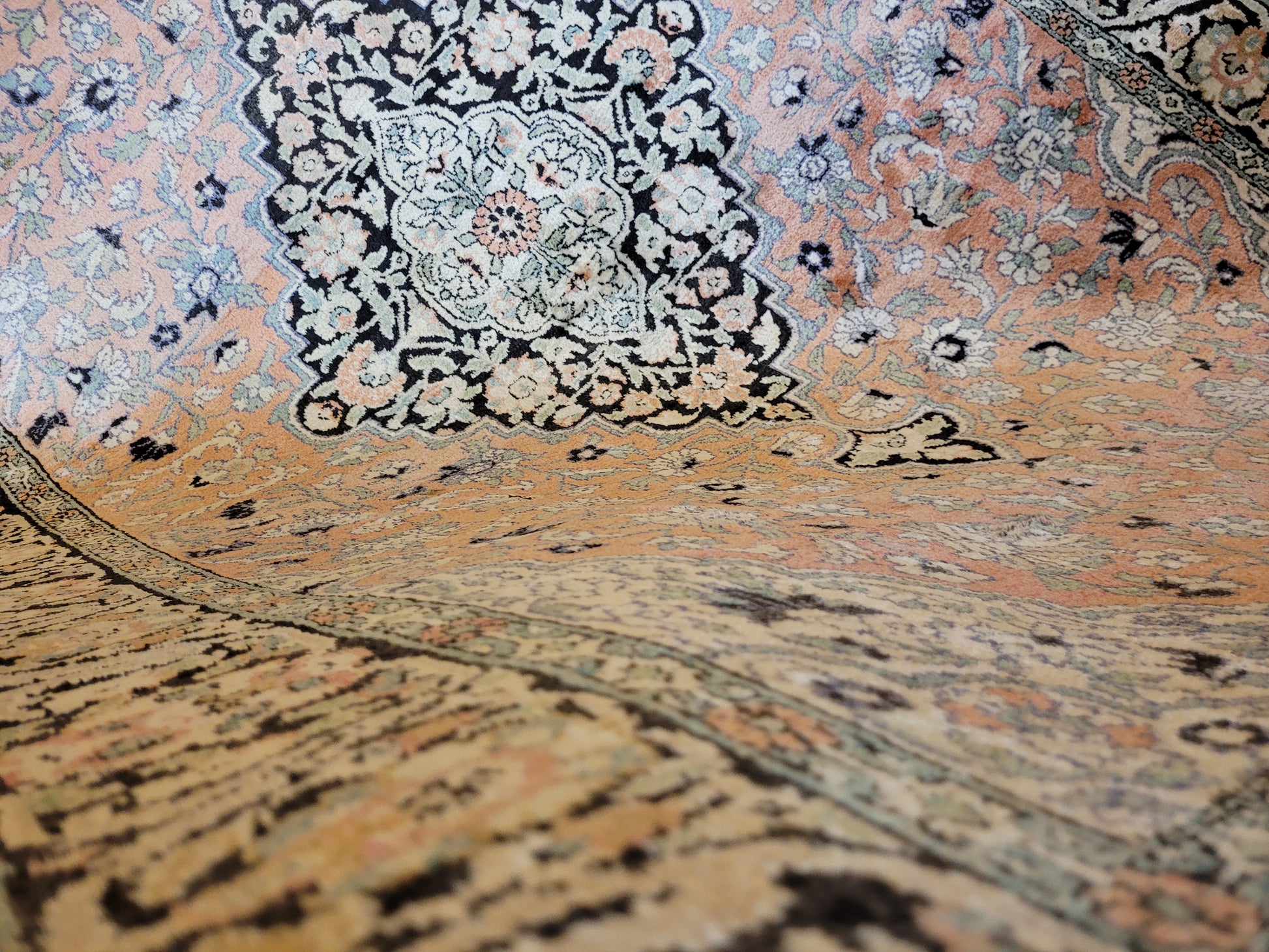Ghom Kaschmir Teppich Seide Medaillon florales Design