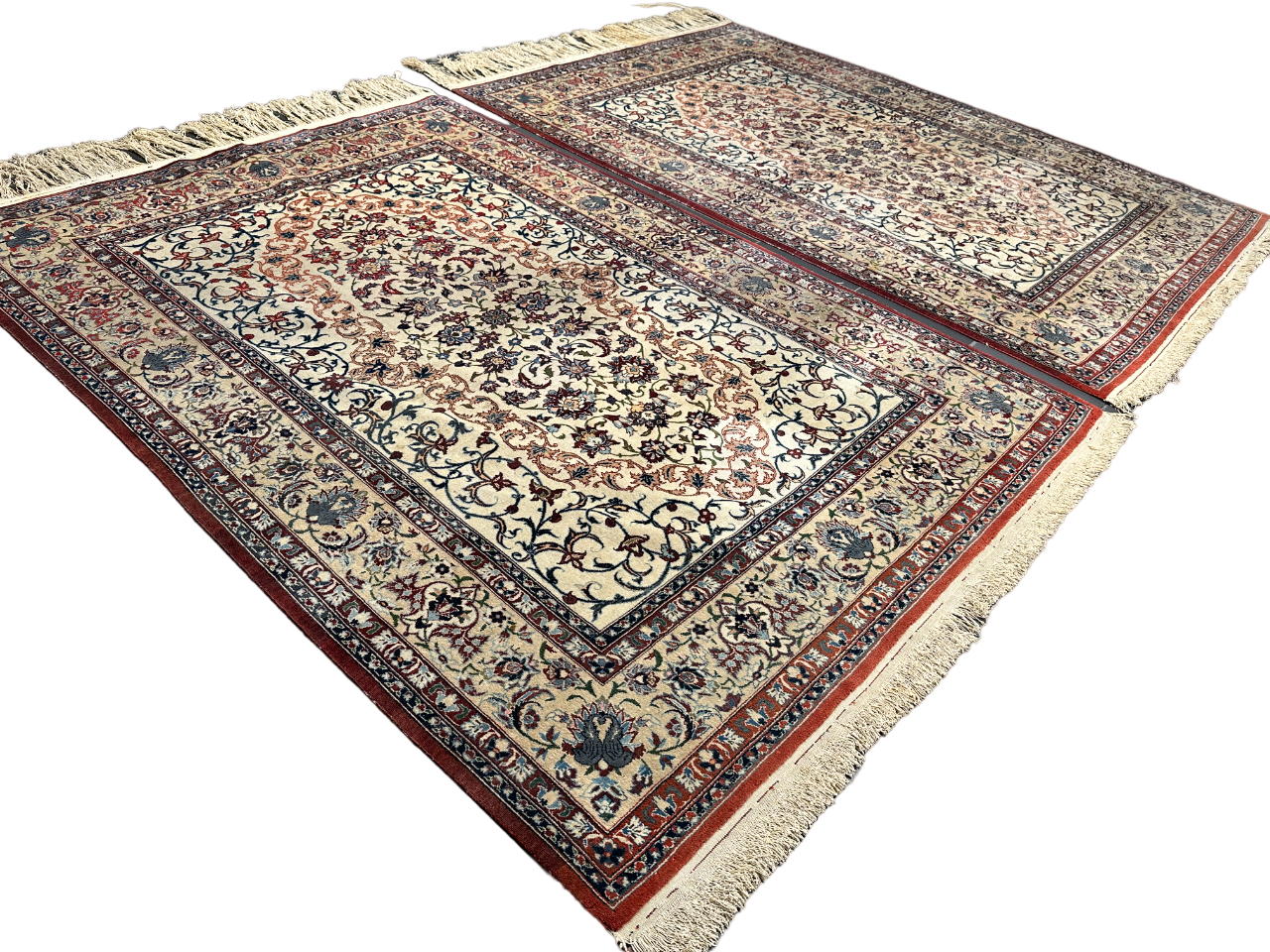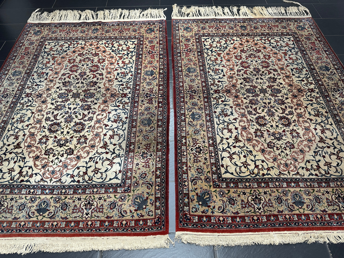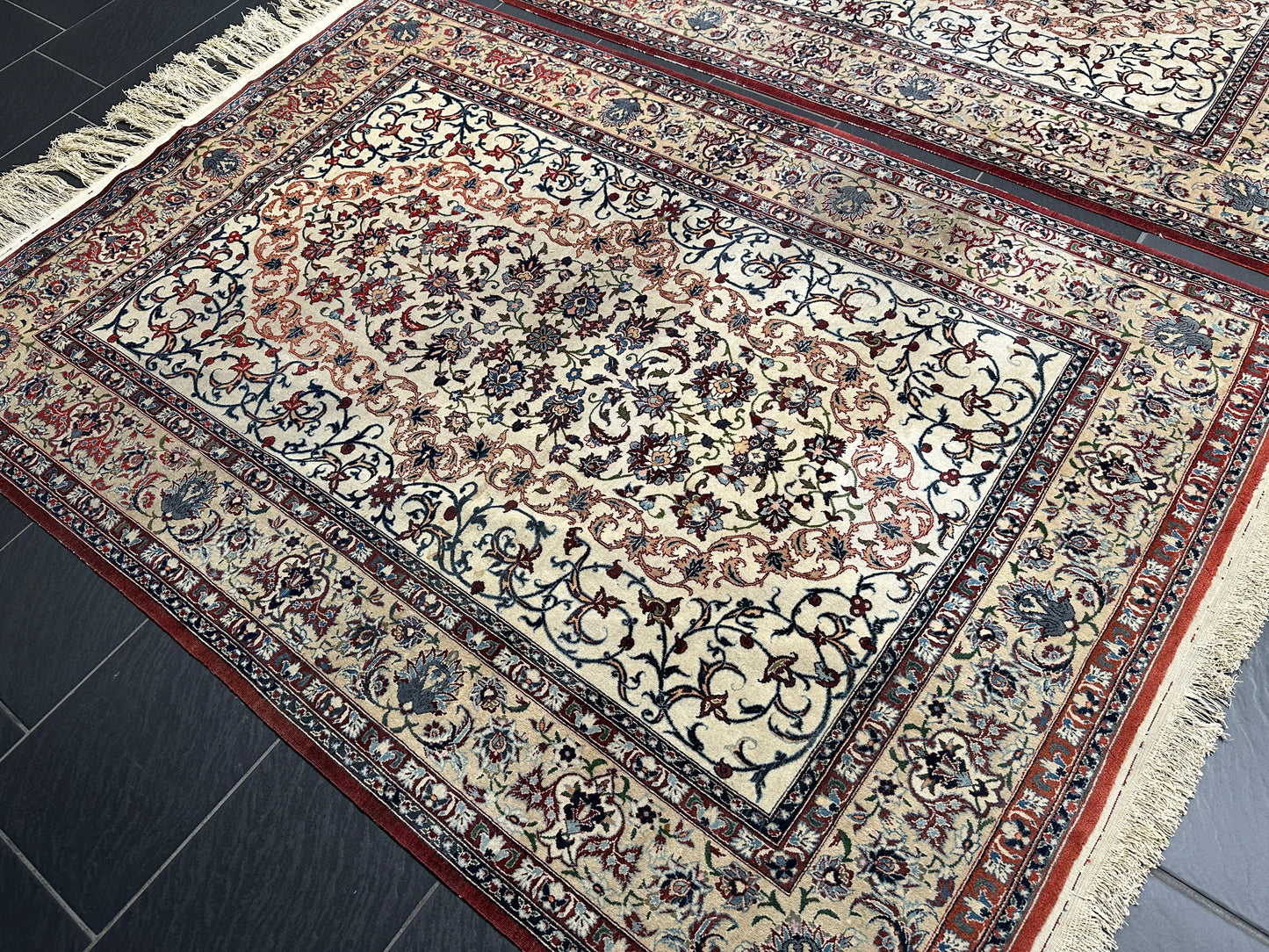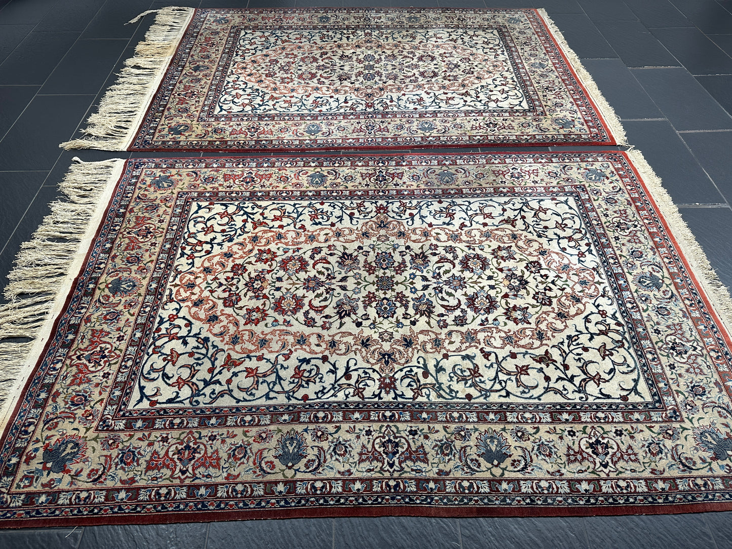 • Zustand: Trotz ihres Alters befinden sich diese Teppiche in einem bemerkenswert guten gebrauchten Zustand. Sie wurden liebevoll gepflegt und strahlen in ihrer vollen Pracht.