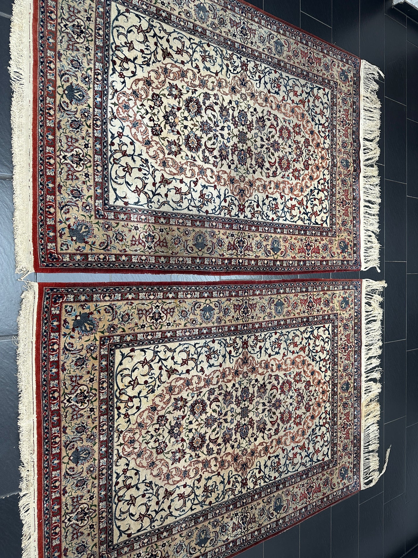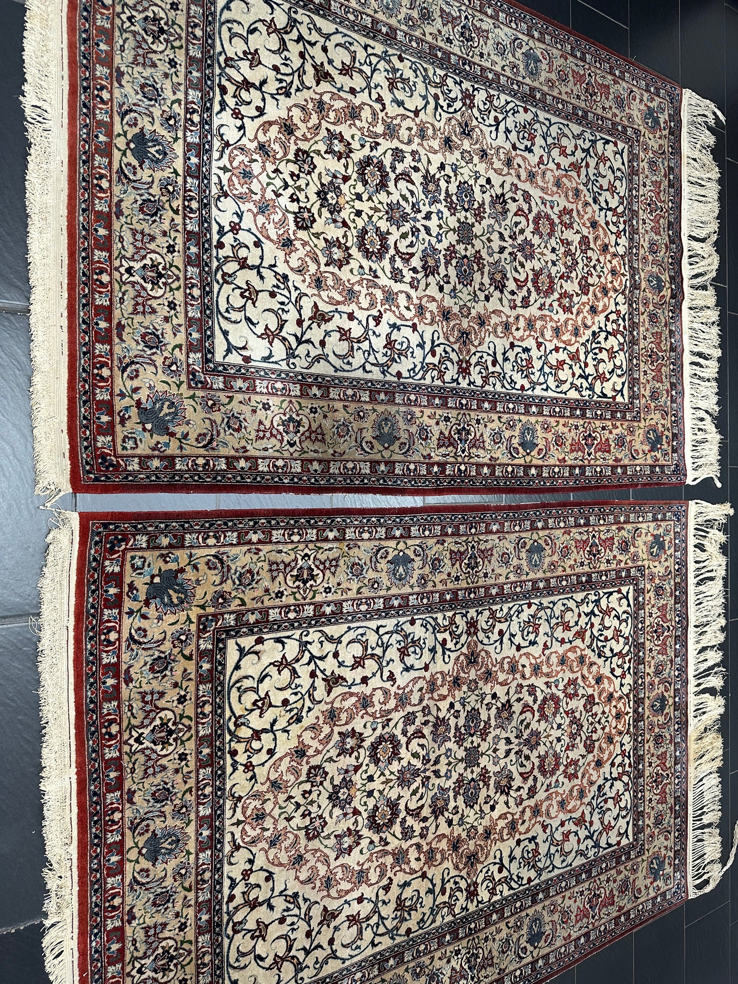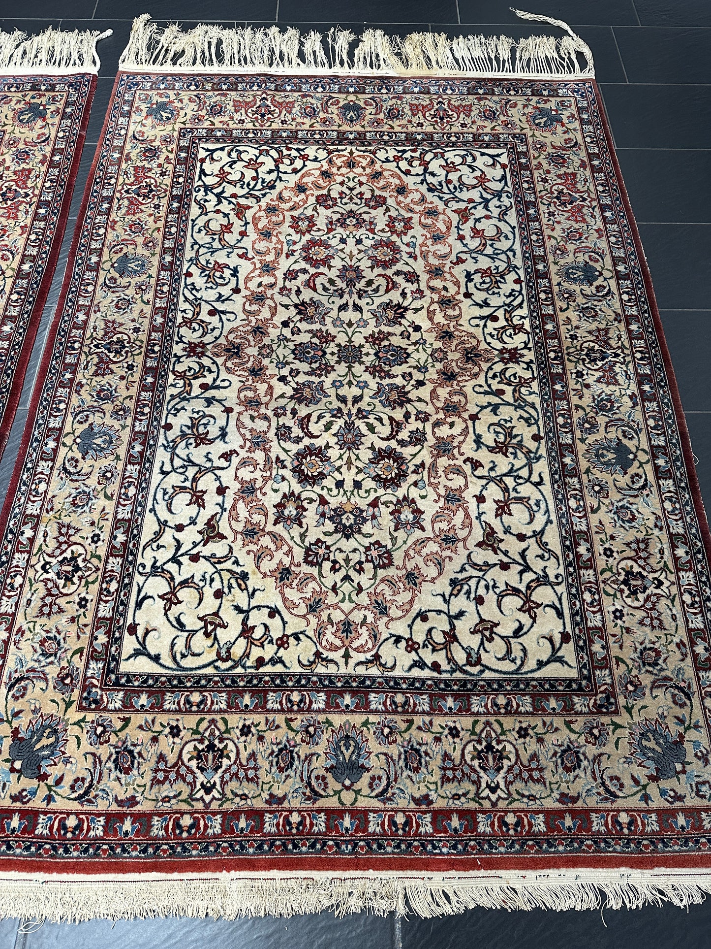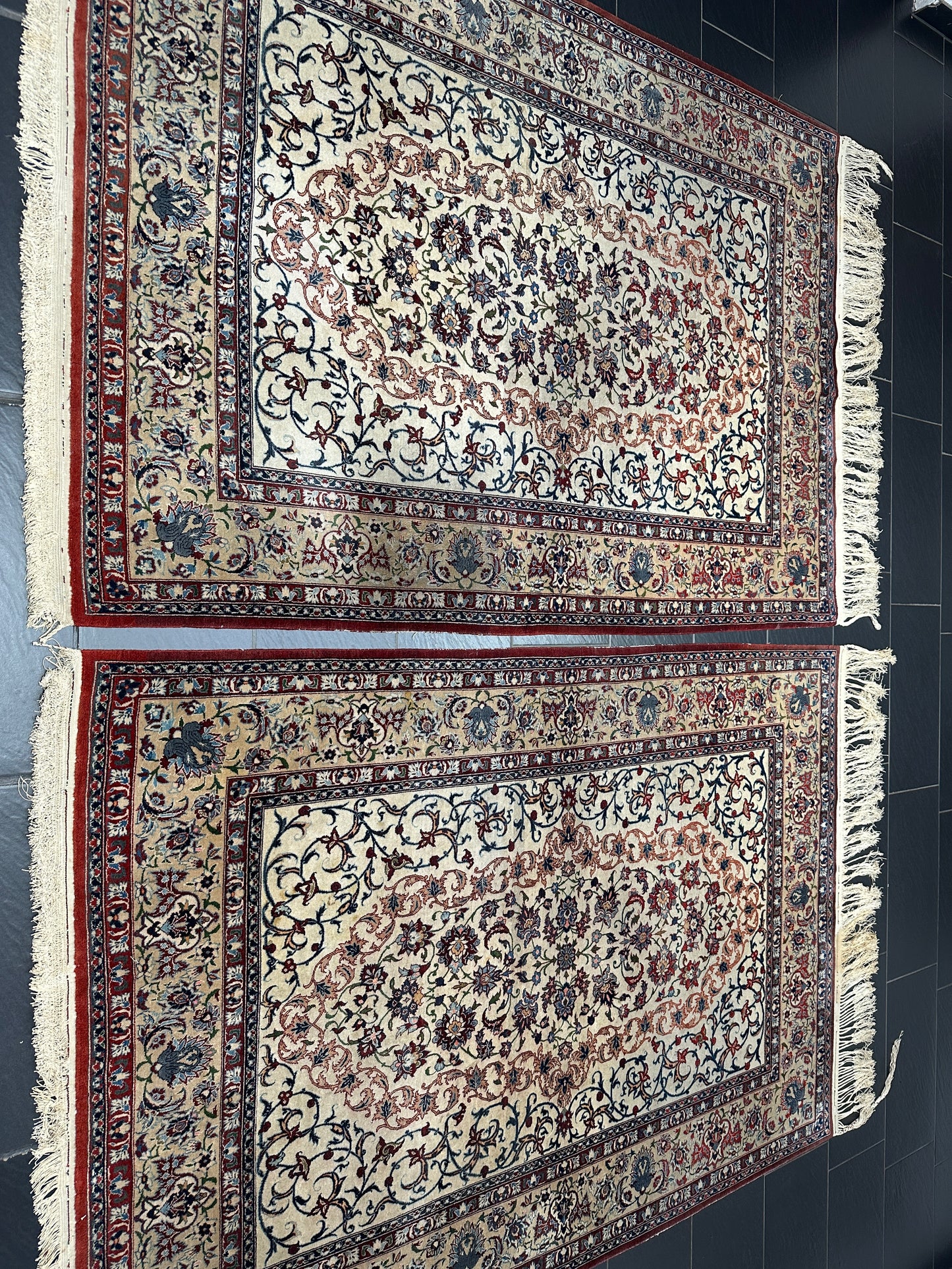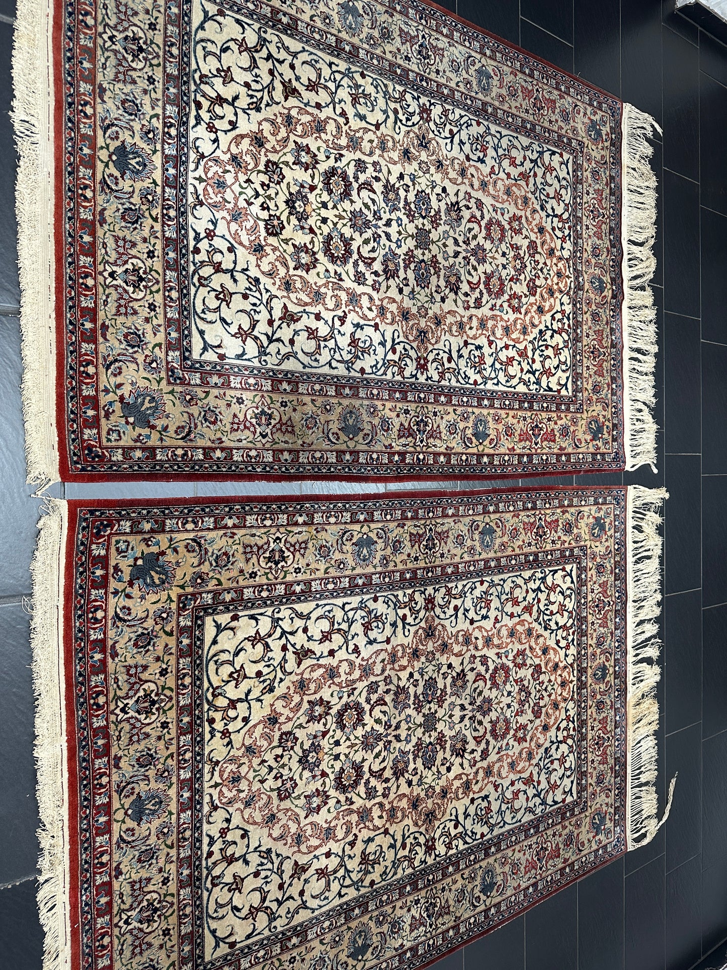 • Zustand: Trotz ihres Alters befinden sich diese Teppiche in einem bemerkenswert guten gebrauchten Zustand. Sie wurden liebevoll gepflegt und strahlen in ihrer vollen Pracht.