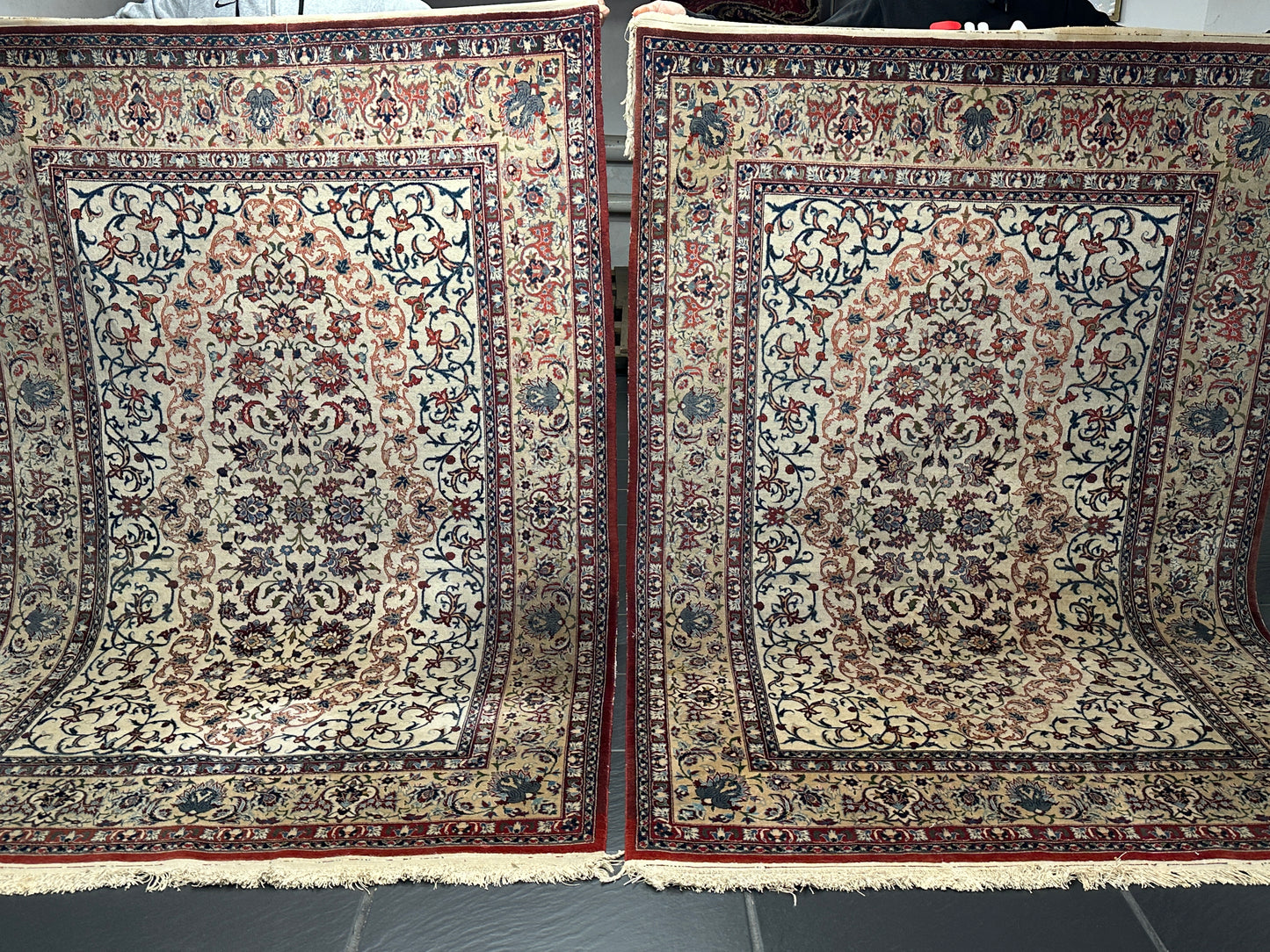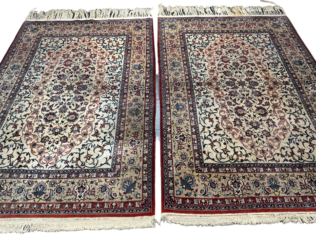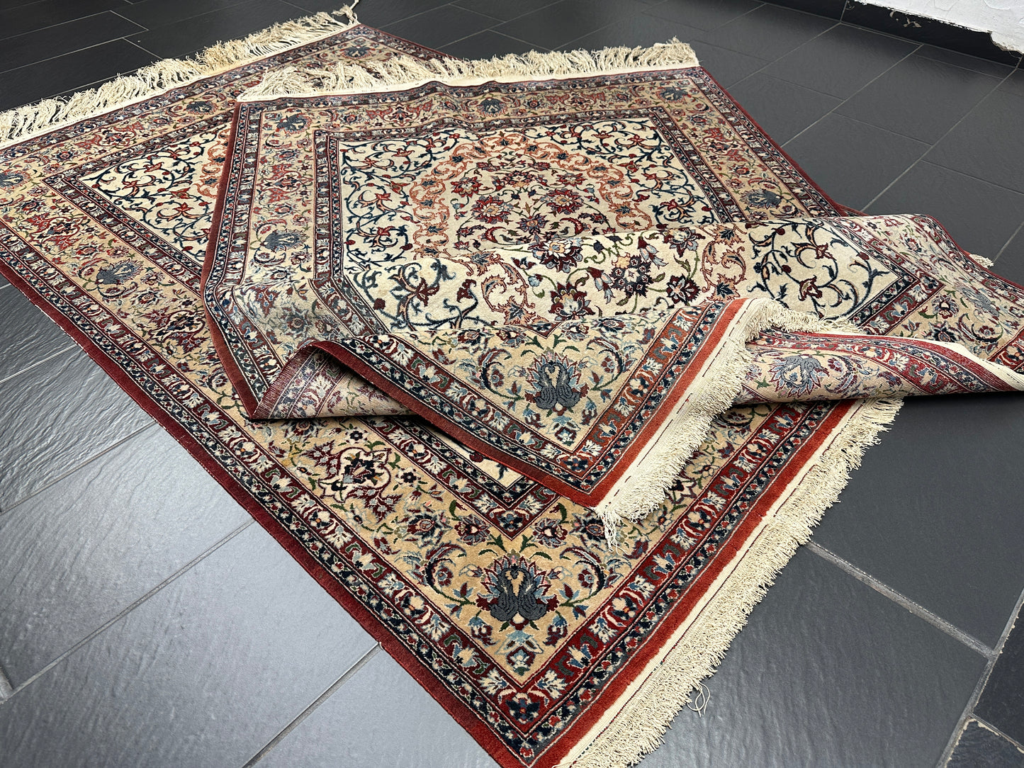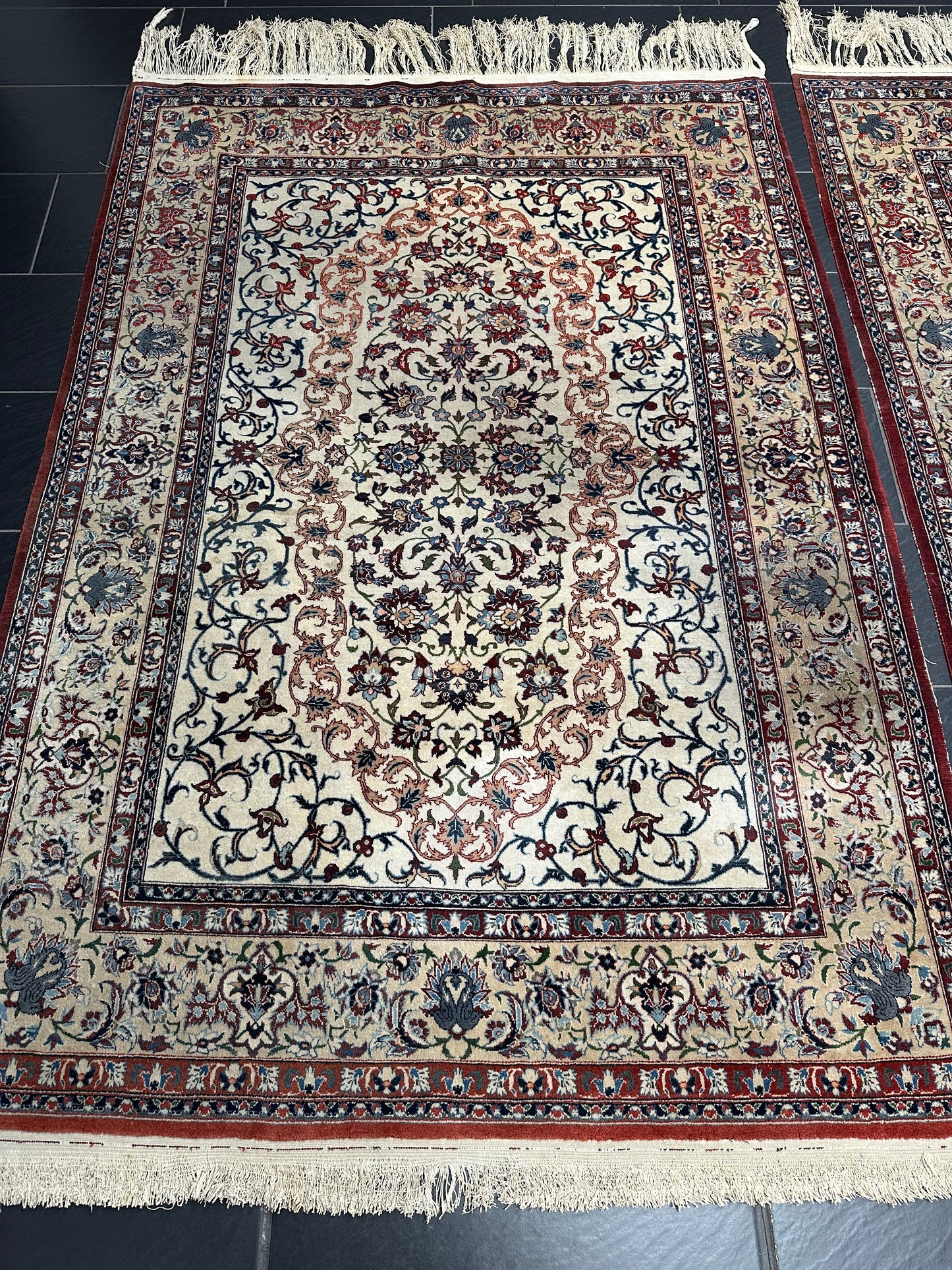 • Zustand: Trotz ihres Alters befinden sich diese Teppiche in einem bemerkenswert guten gebrauchten Zustand. Sie wurden liebevoll gepflegt und strahlen in ihrer vollen Pracht.