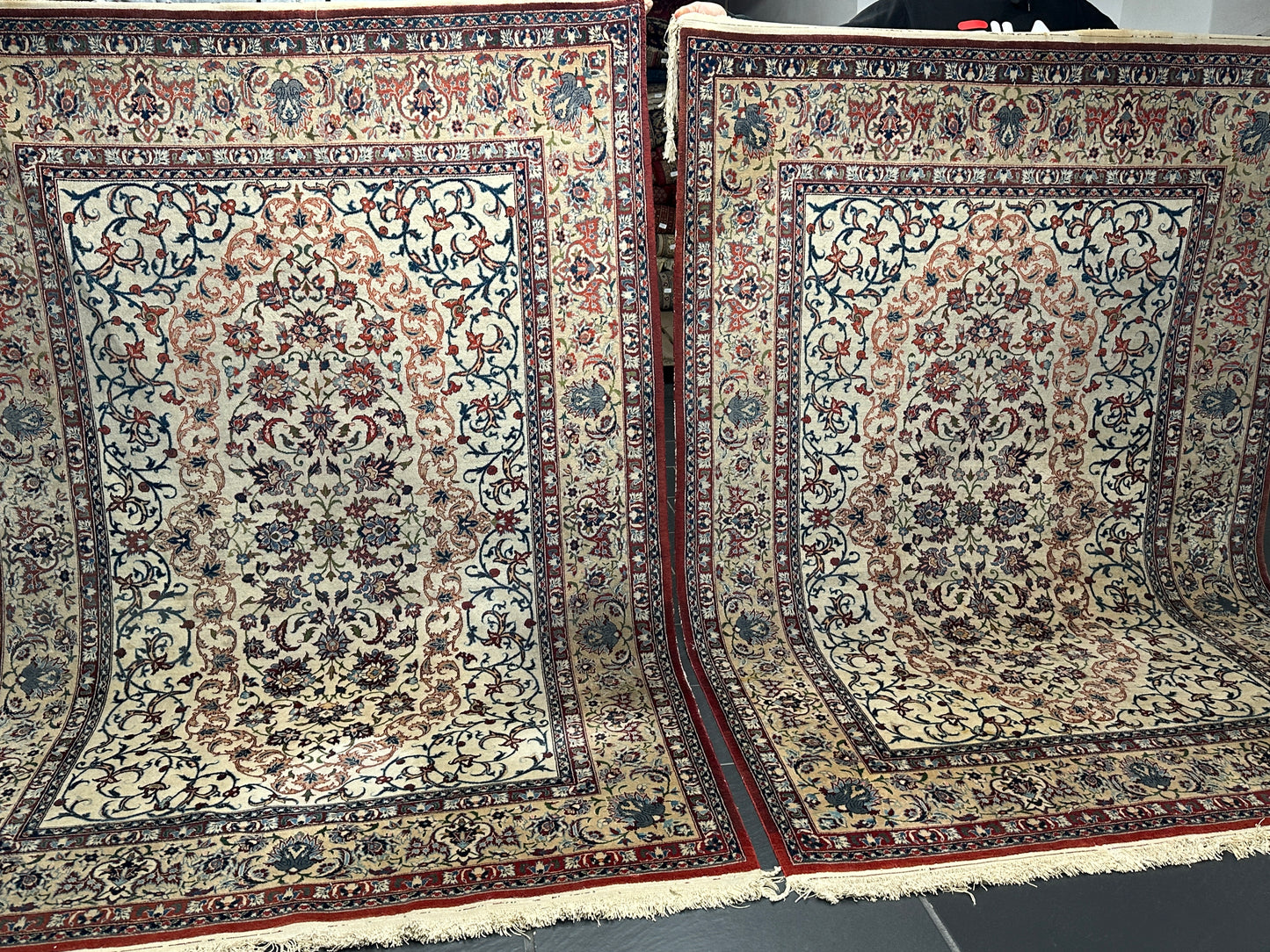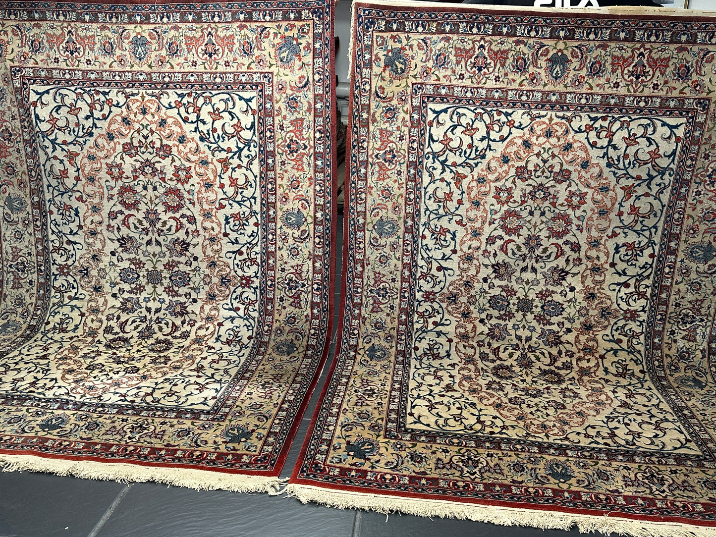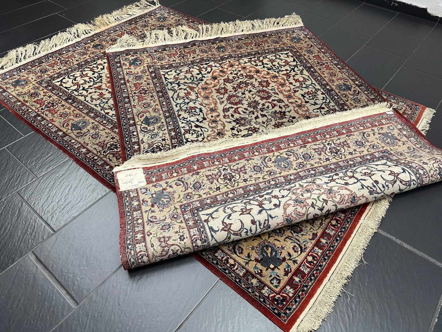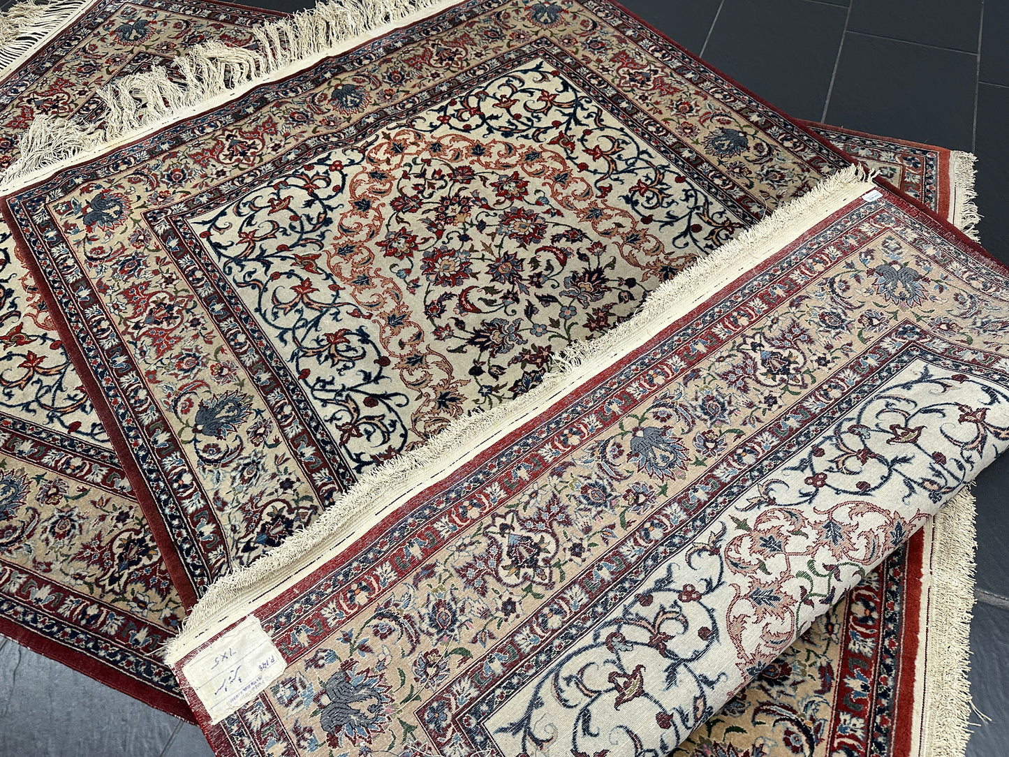 • Zustand: Trotz ihres Alters befinden sich diese Teppiche in einem bemerkenswert guten gebrauchten Zustand. Sie wurden liebevoll gepflegt und strahlen in ihrer vollen Pracht.