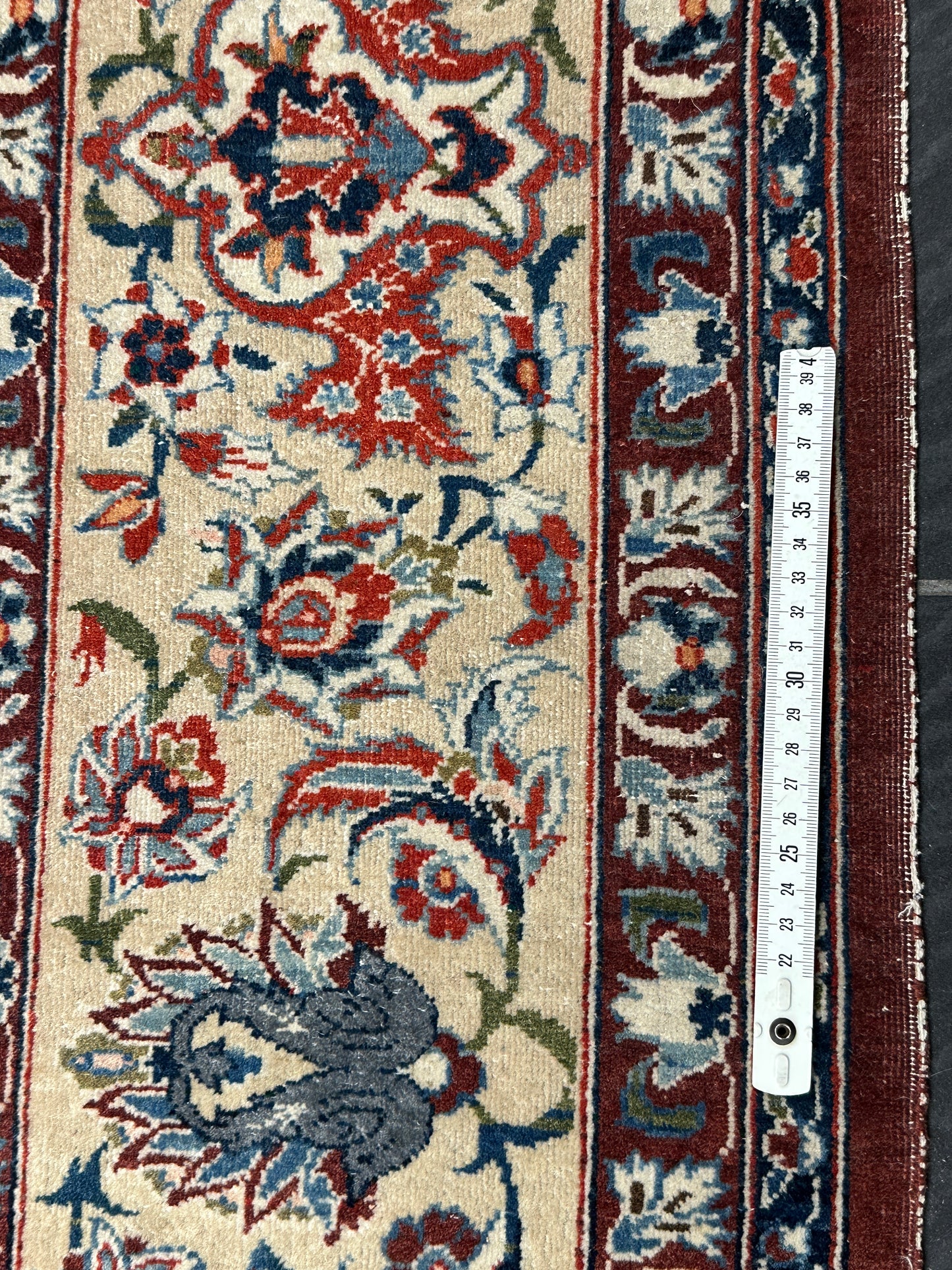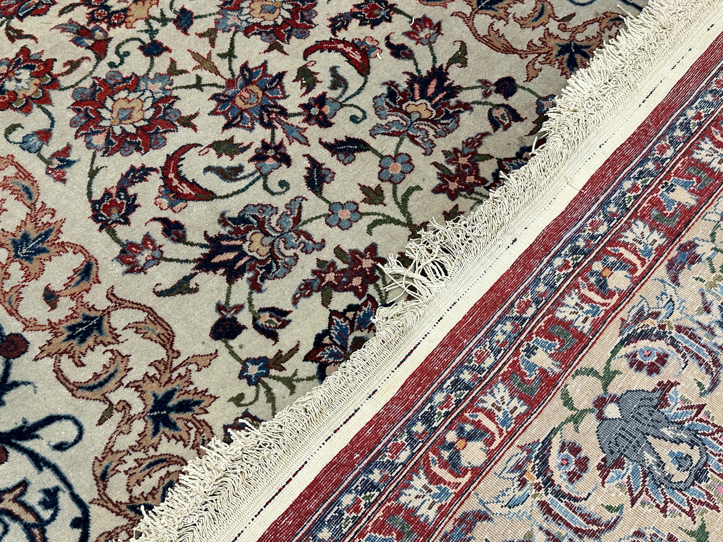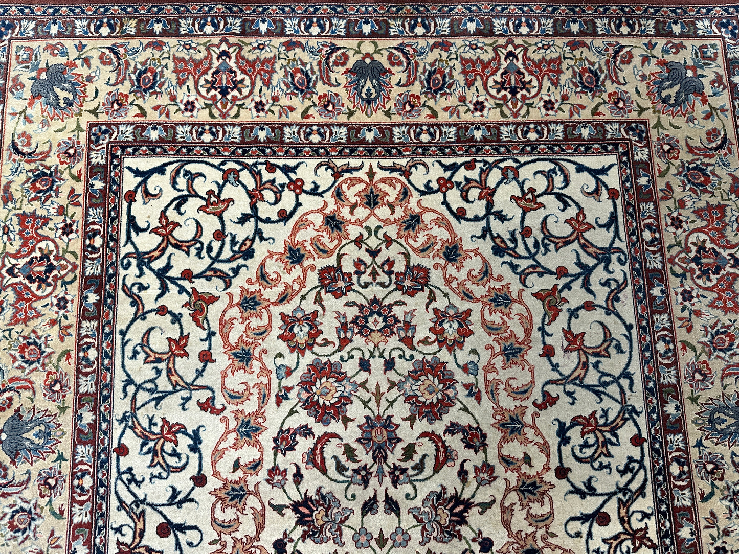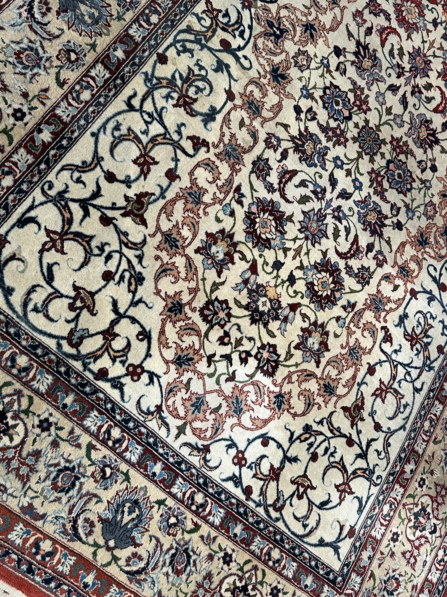• Design: Das Design dieser Isfahan Teppiche ist ein Meisterwerk der traditionellen Teppichkunst. Die filigranen Muster und die prächtigen Farben erzählen Geschichten von jahrhundertealter Tradition.