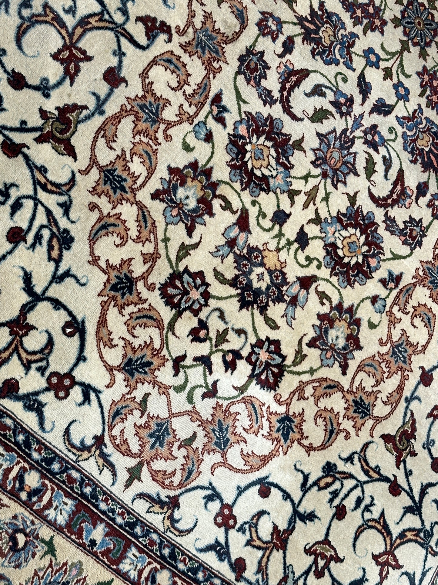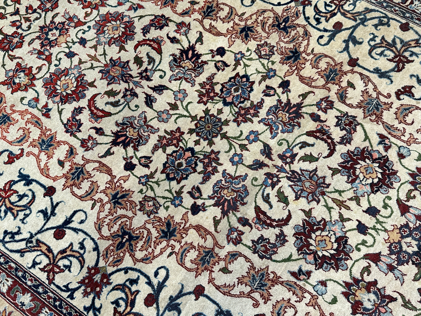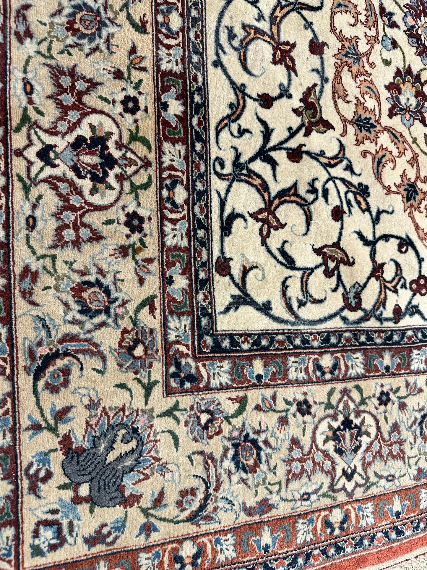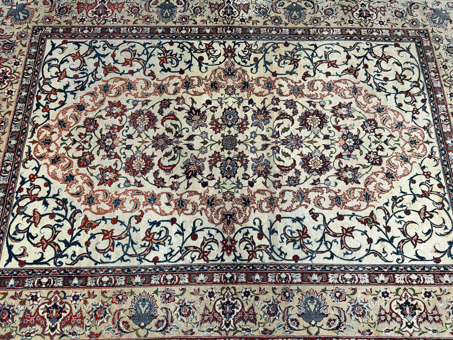 • Design: Das Design dieser Isfahan Teppiche ist ein Meisterwerk der traditionellen Teppichkunst. Die filigranen Muster und die prächtigen Farben erzählen Geschichten von jahrhundertealter Tradition.