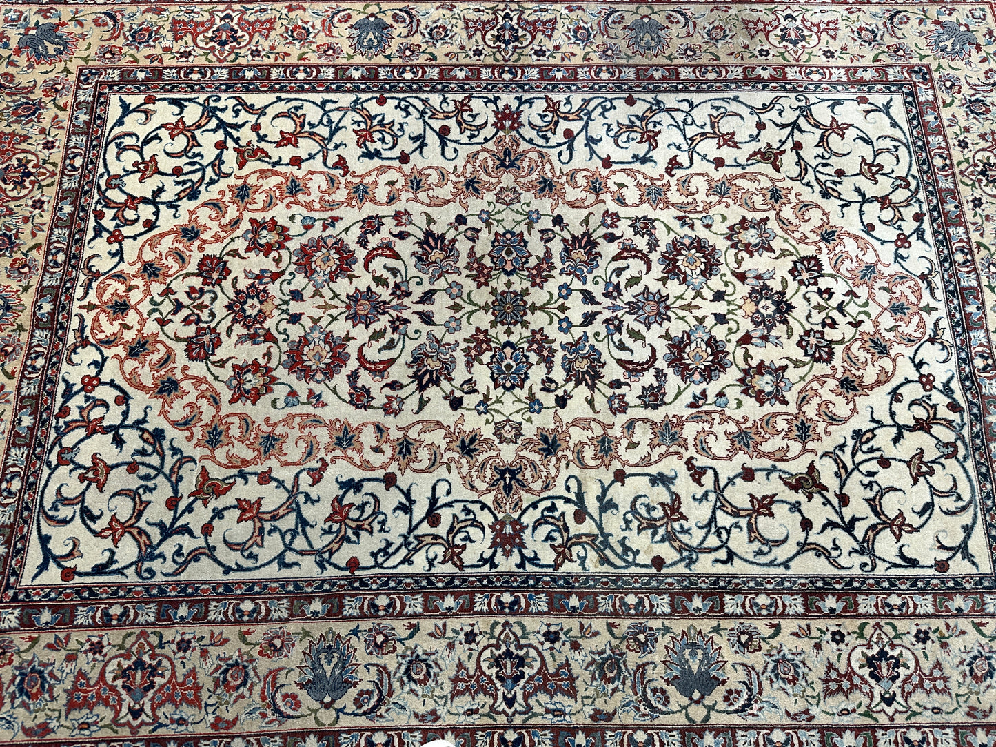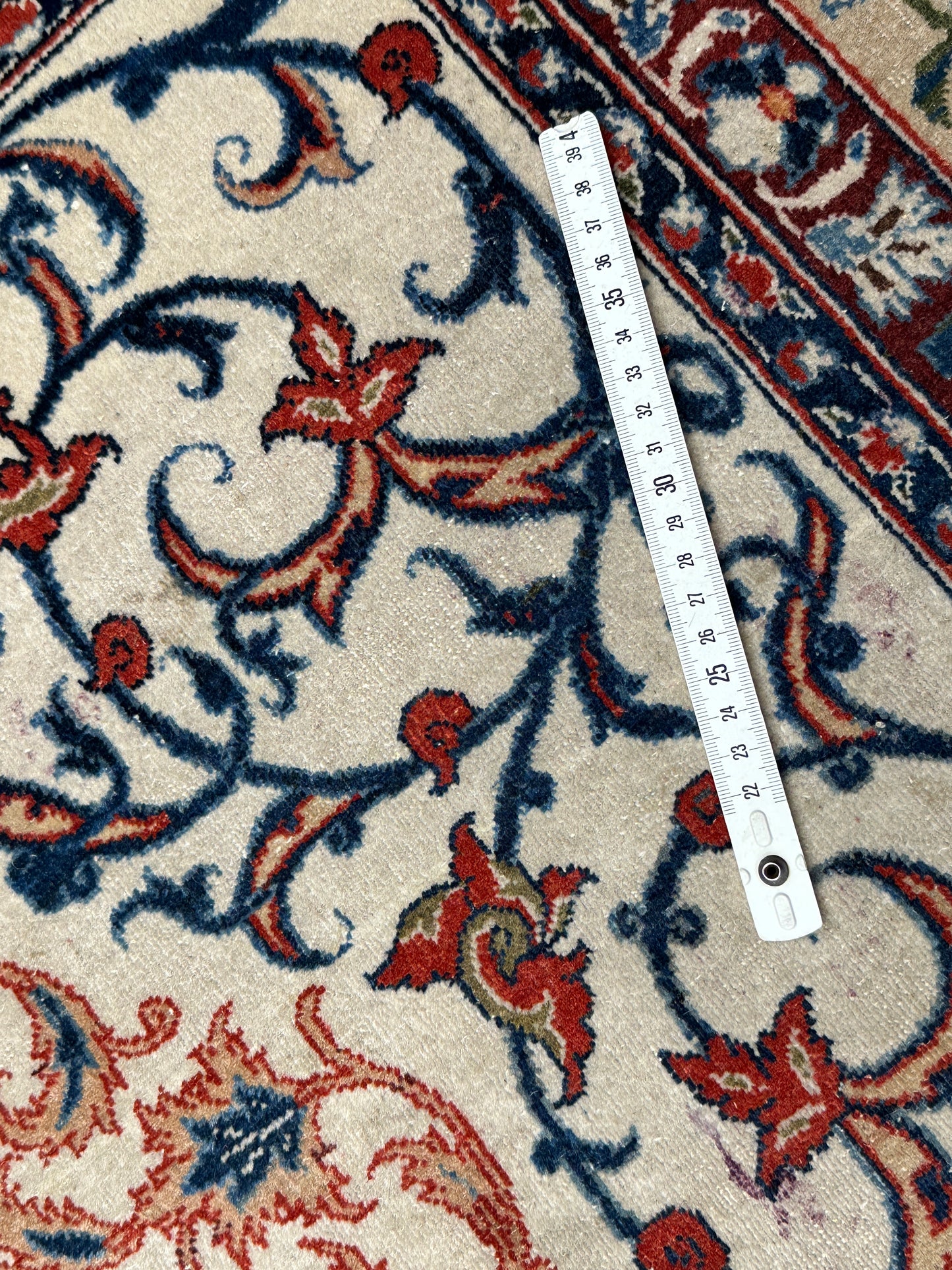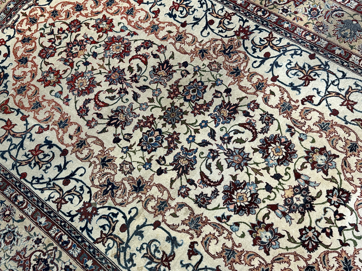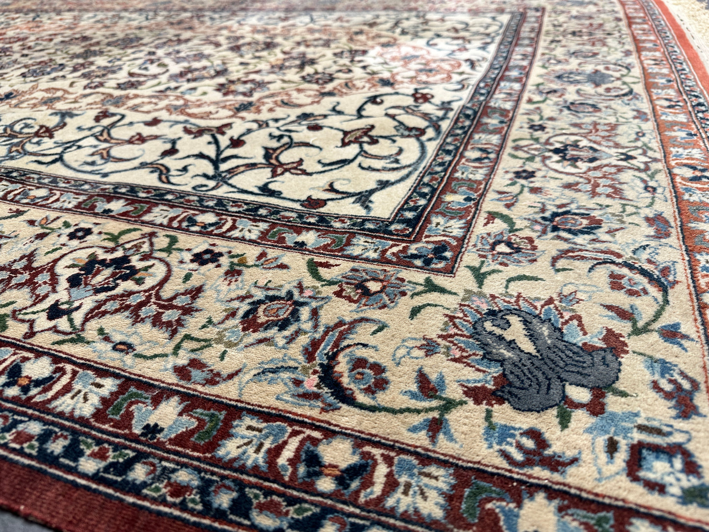 • Design: Das Design dieser Isfahan Teppiche ist ein Meisterwerk der traditionellen Teppichkunst. Die filigranen Muster und die prächtigen Farben erzählen Geschichten von jahrhundertealter Tradition.