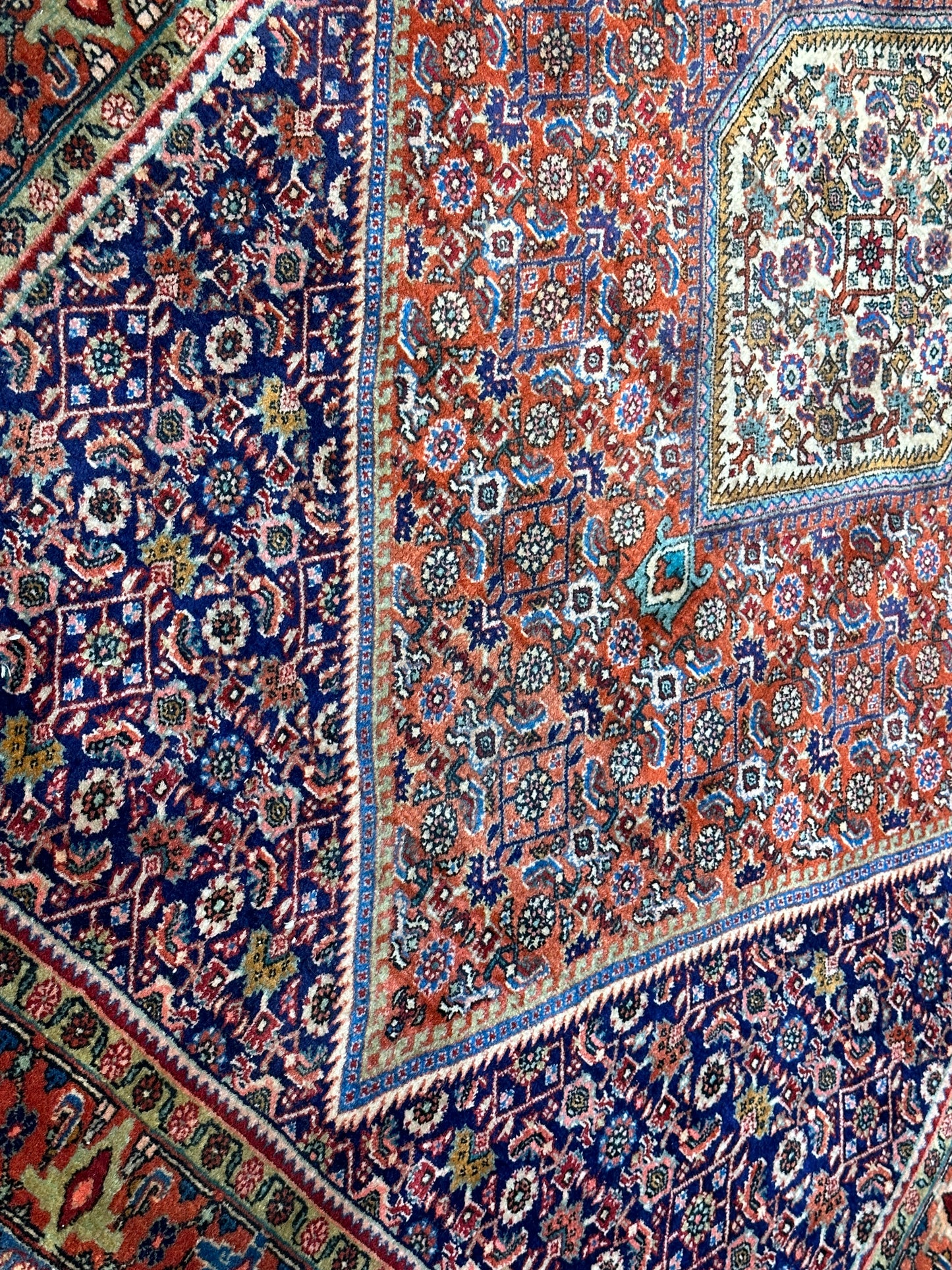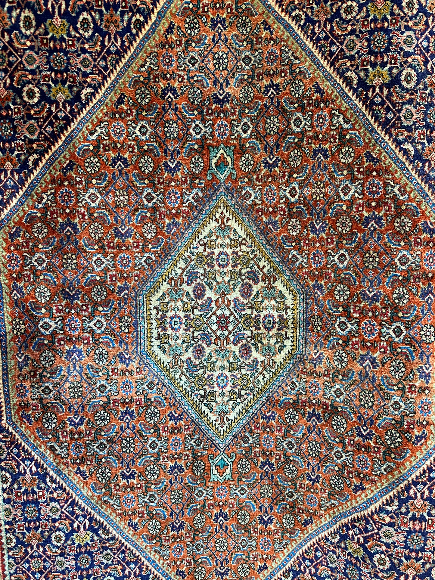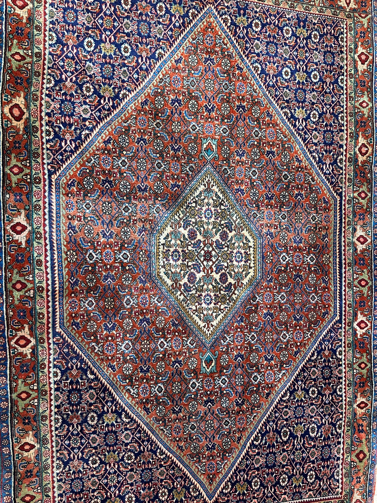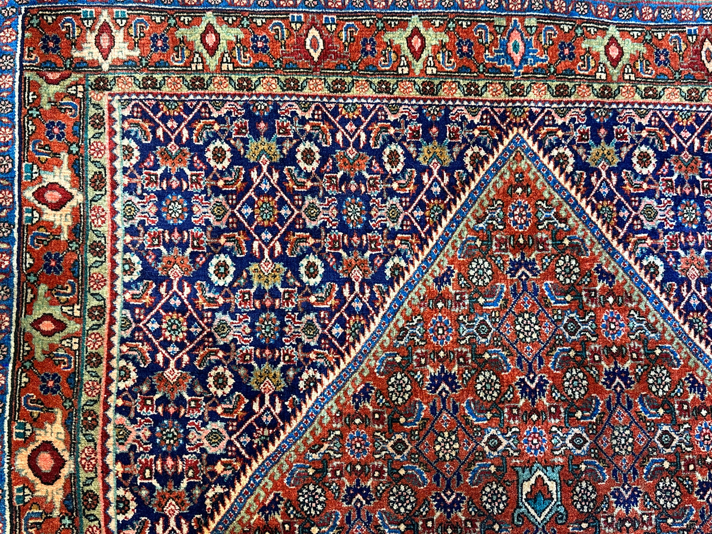 Charakteristisches Bidjar-Design: Die kunstvollen Muster und die tiefen Farben spiegeln die kulturelle Geschichte und Tradition des Bidjar-Teppichs wider, strahlend in zeitloser Eleganz.
