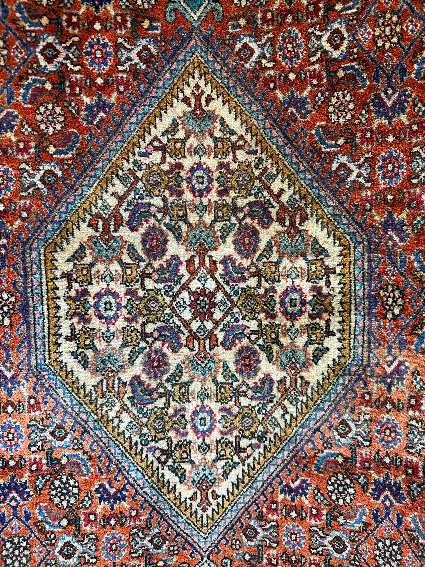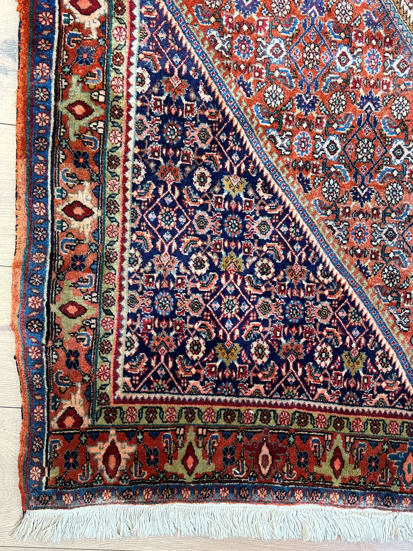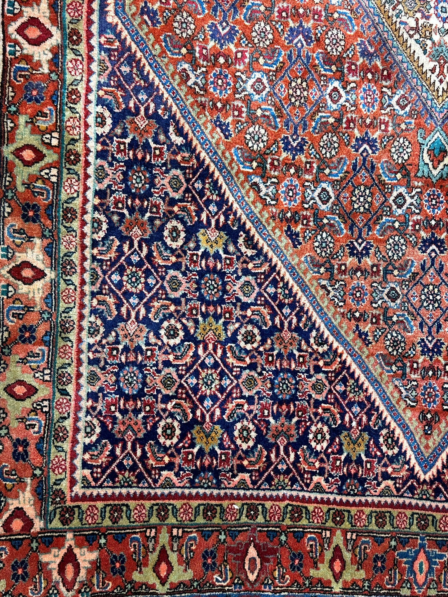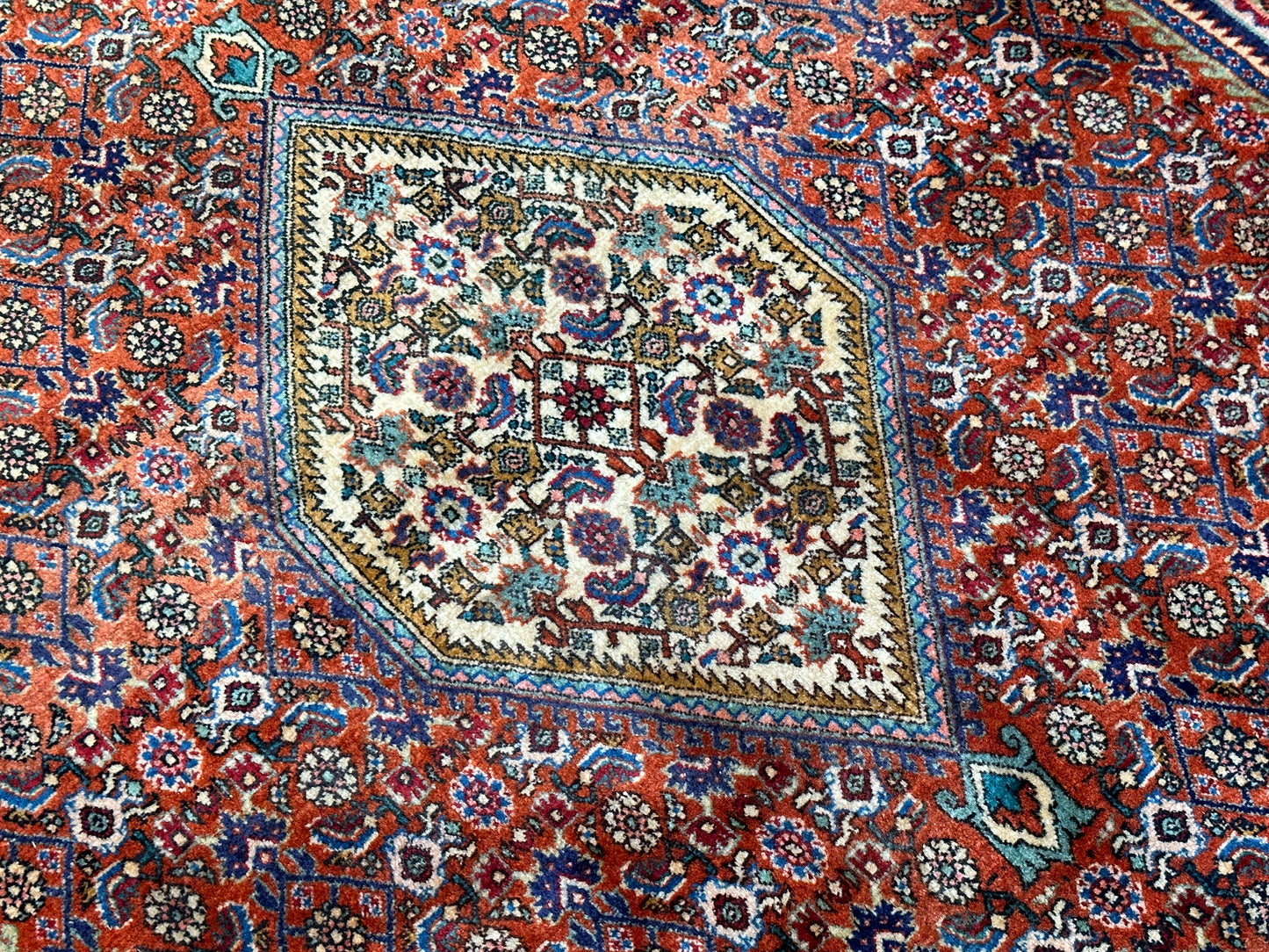 Charakteristisches Bidjar-Design: Die kunstvollen Muster und die tiefen Farben spiegeln die kulturelle Geschichte und Tradition des Bidjar-Teppichs wider, strahlend in zeitloser Eleganz.