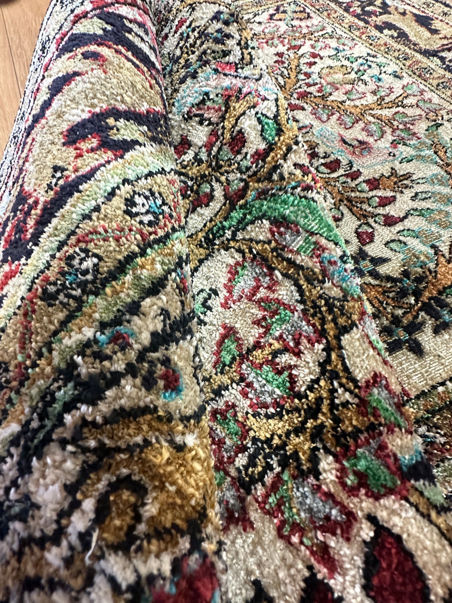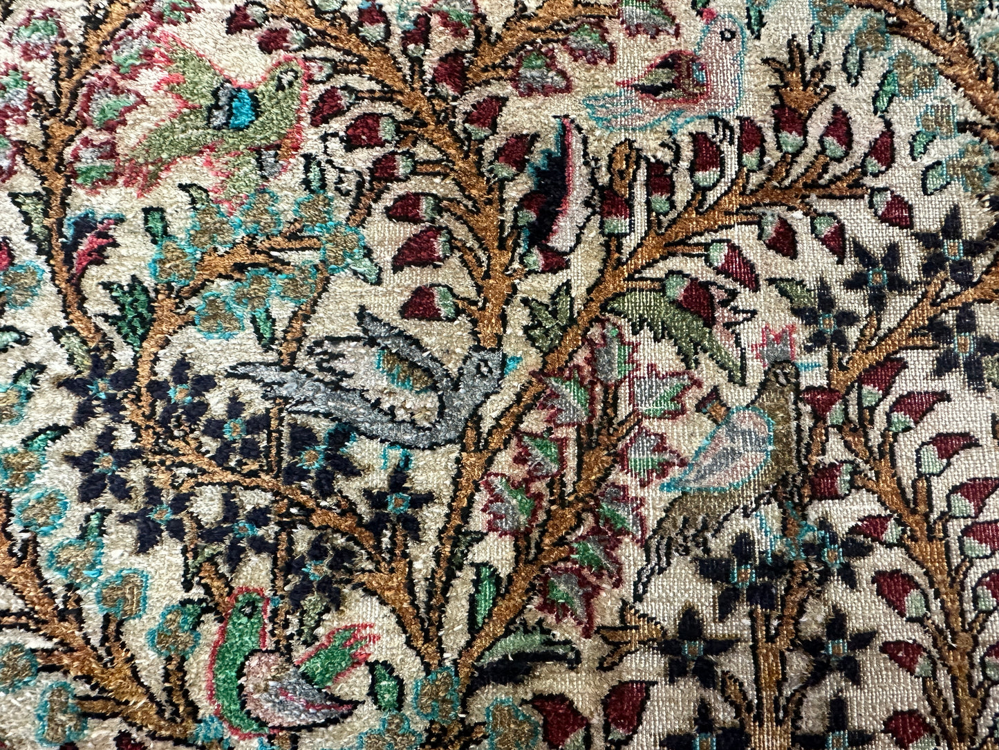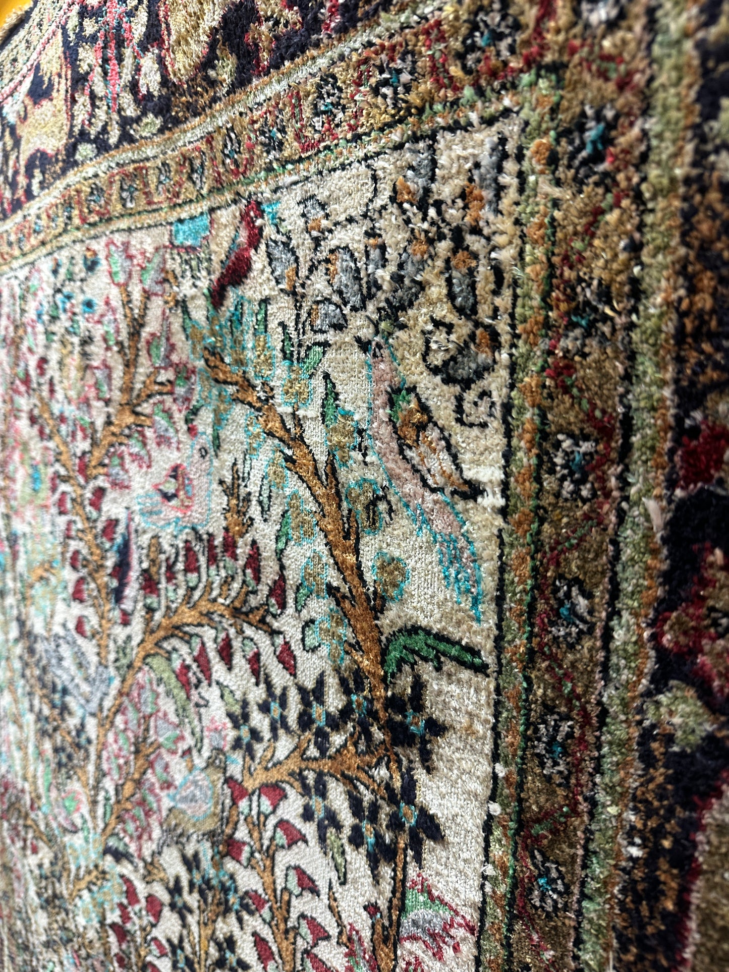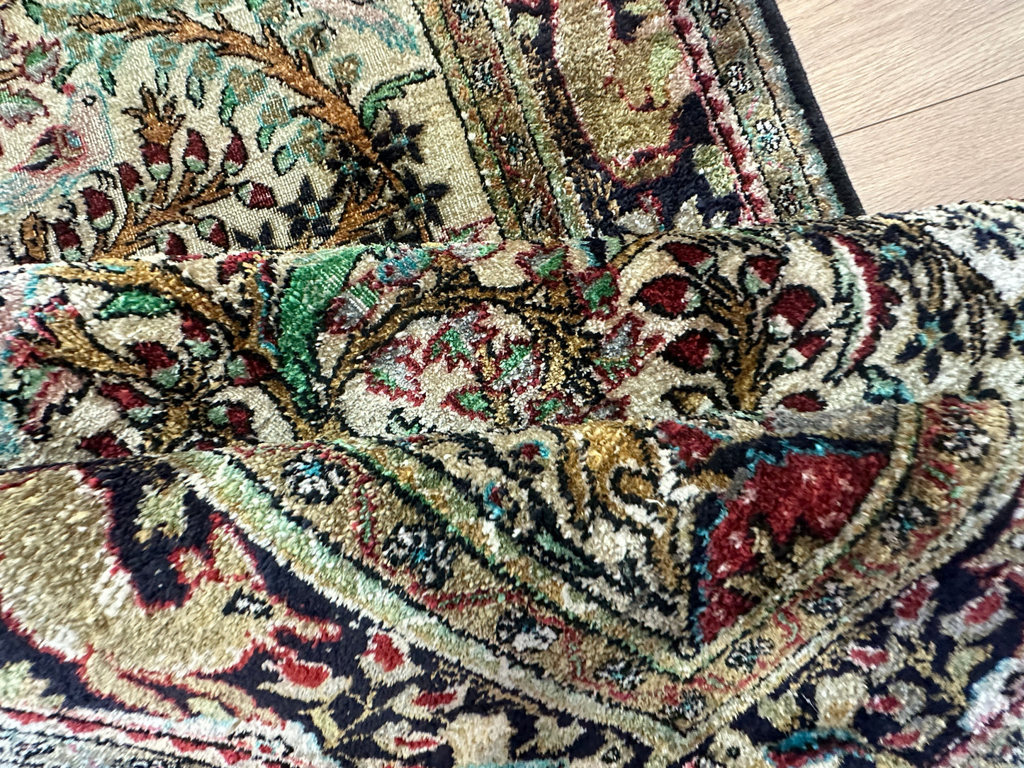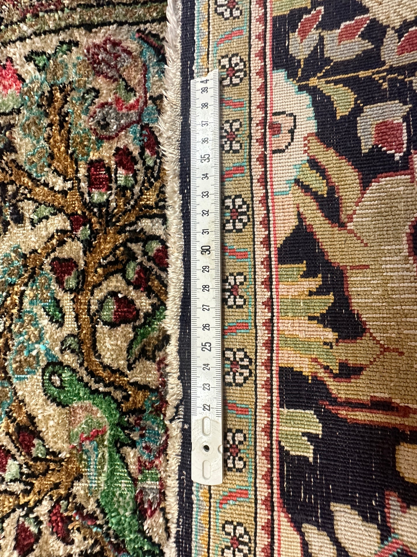 • Material: Hergestellt aus feinster Seide, besticht dieser Teppich durch seine zarte Textur und lebendigen Farben. Die Seide verleiht dem Teppich einen luxuriösen Glanz und eine exquisite Haptik.