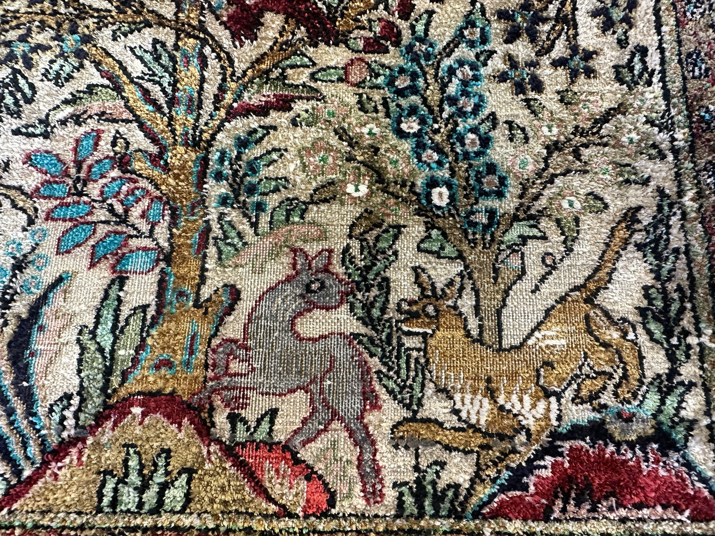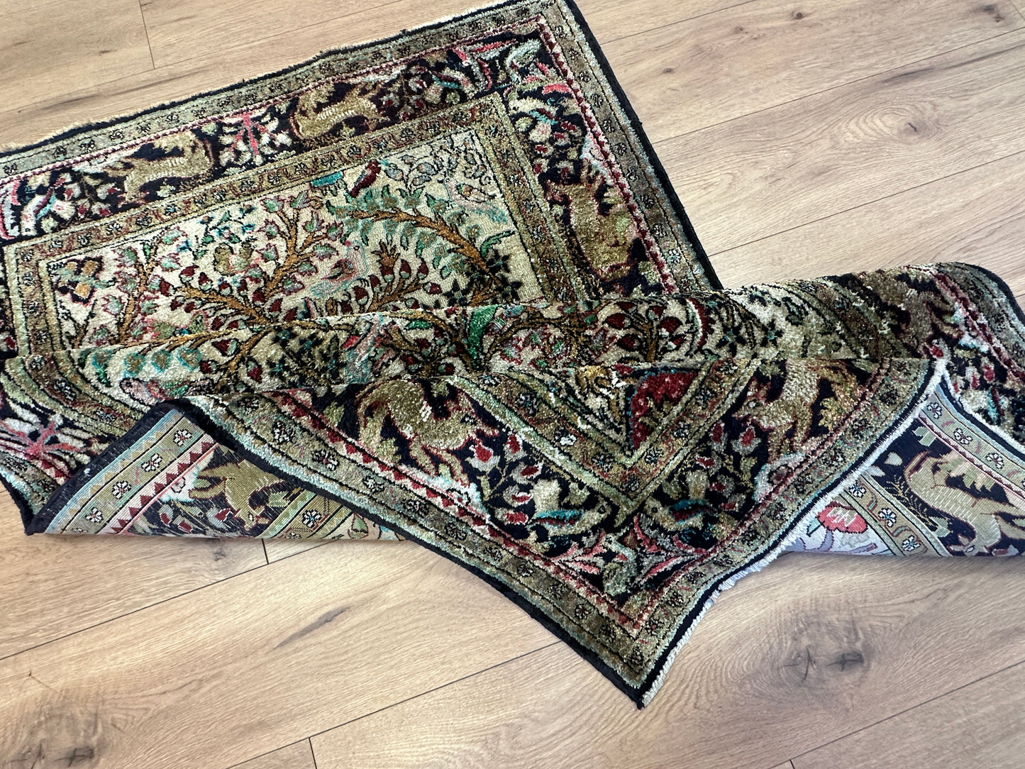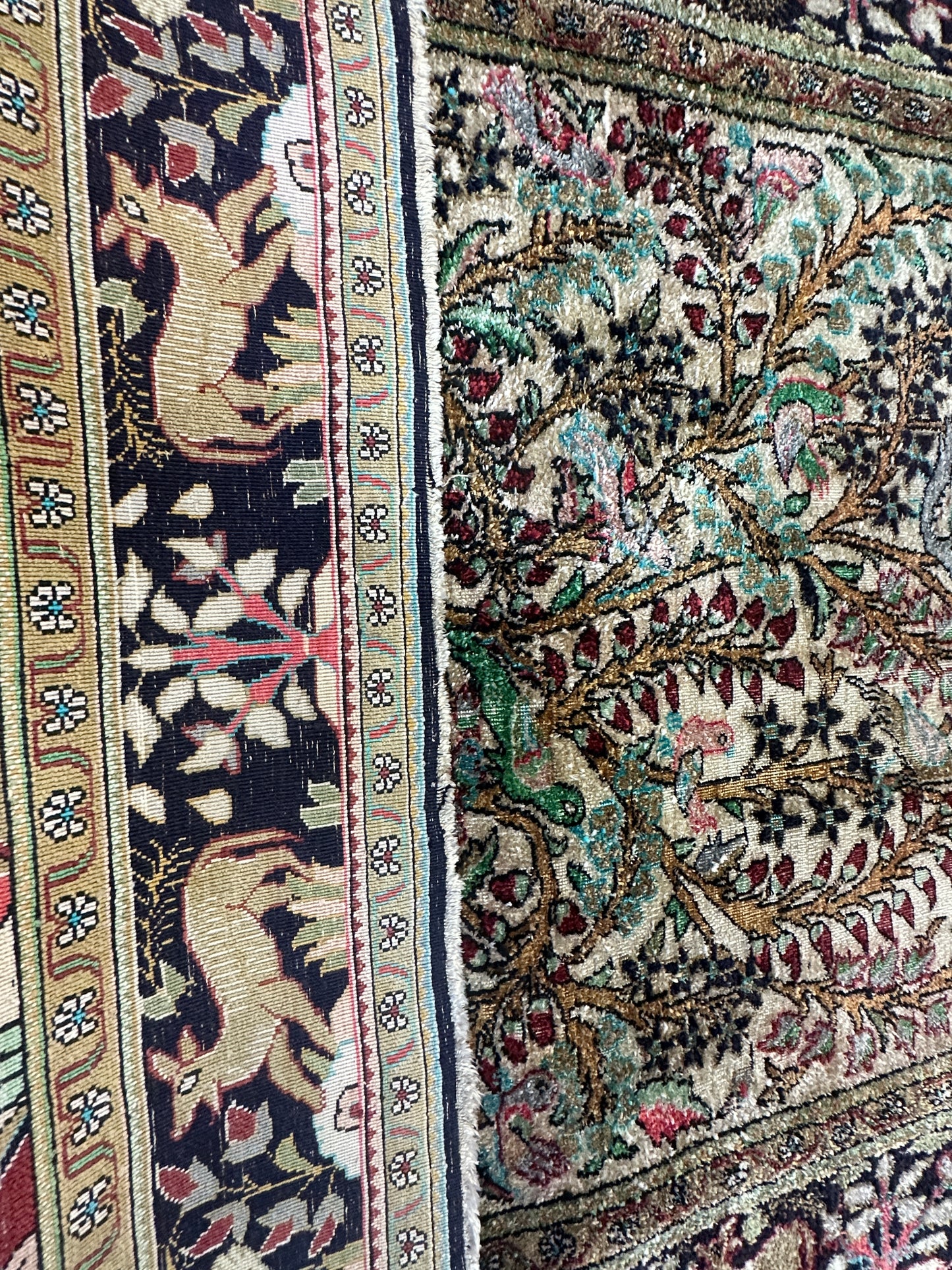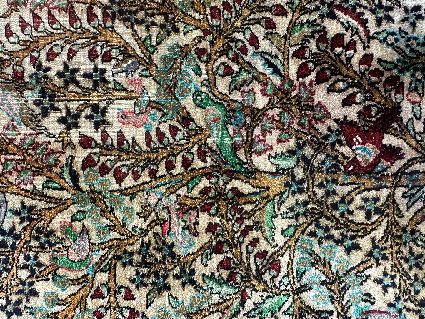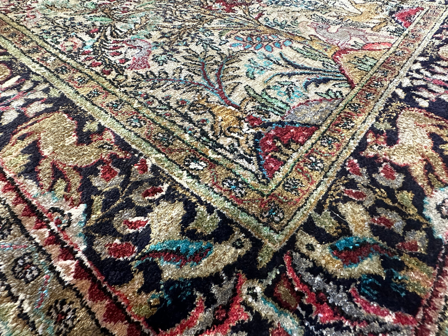 • Material: Hergestellt aus feinster Seide, besticht dieser Teppich durch seine zarte Textur und lebendigen Farben. Die Seide verleiht dem Teppich einen luxuriösen Glanz und eine exquisite Haptik.