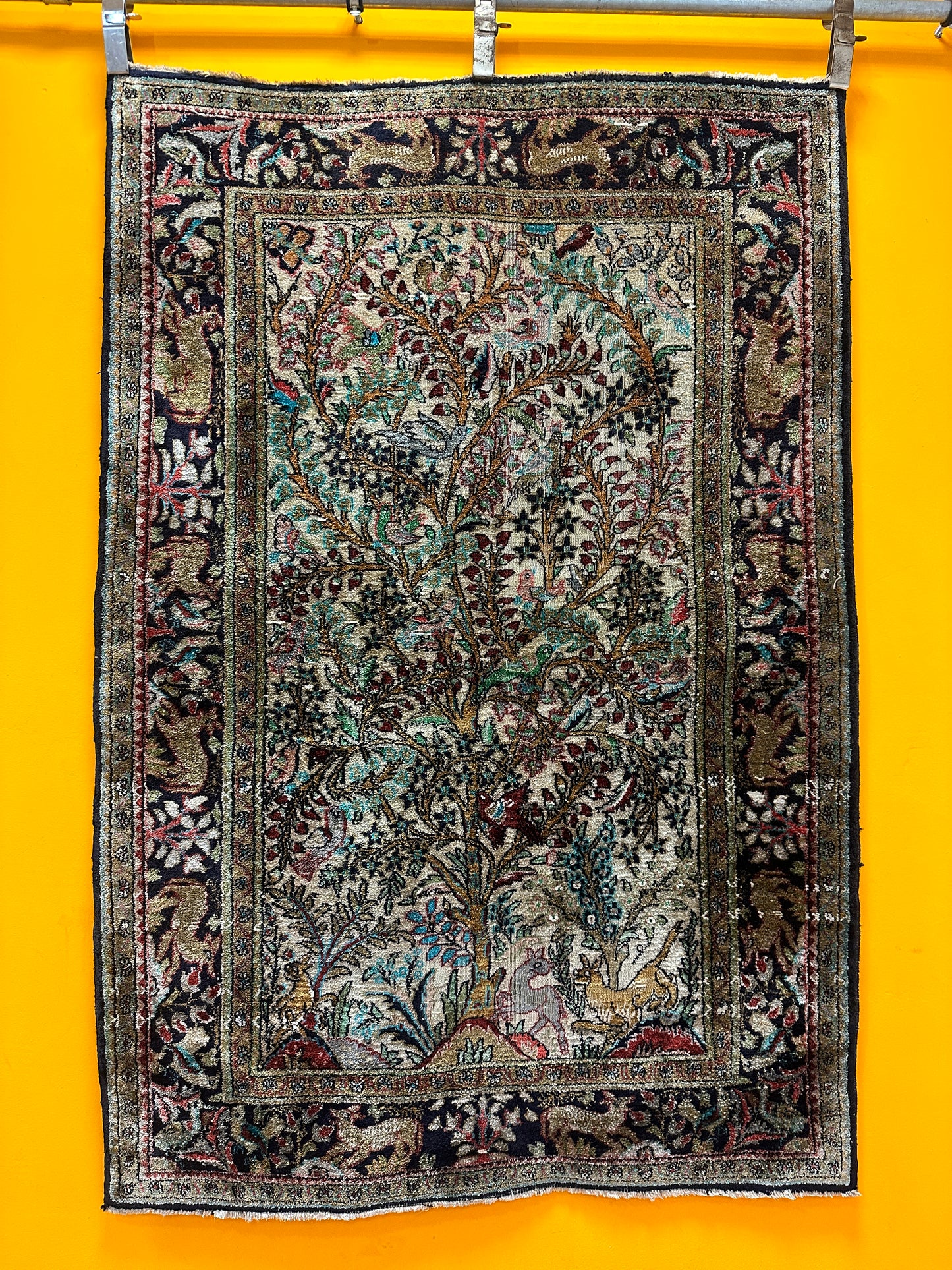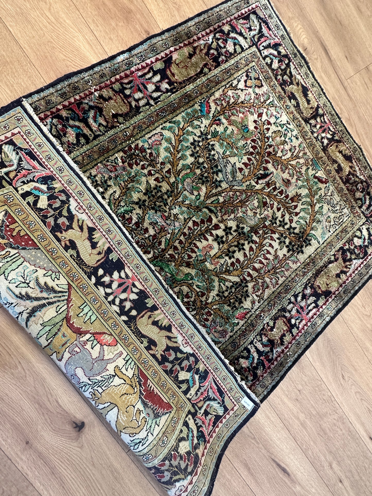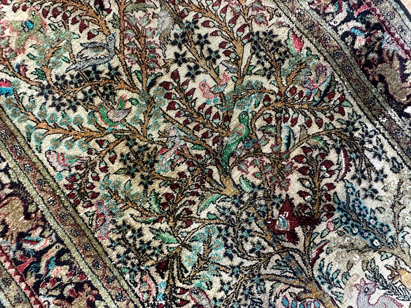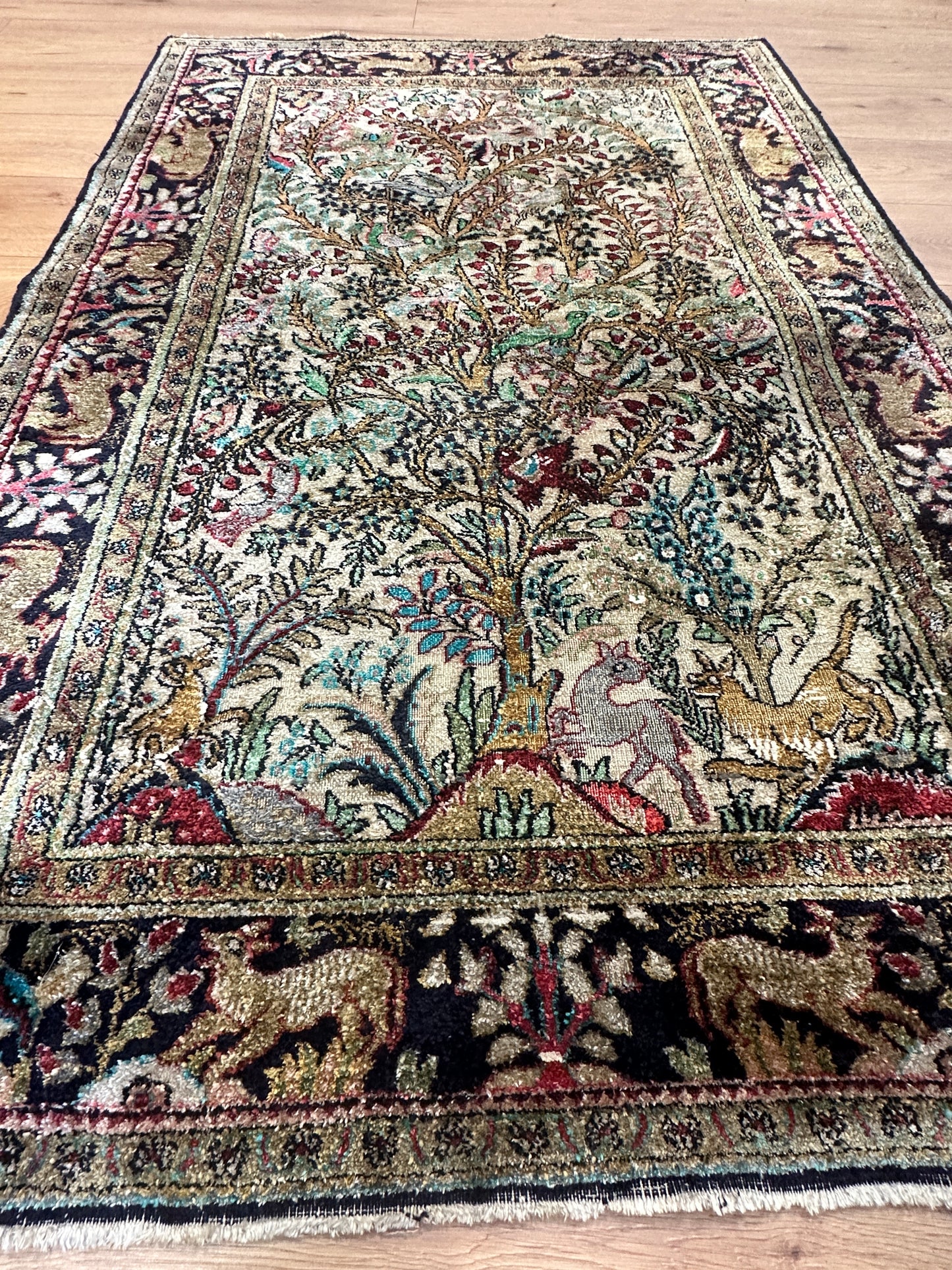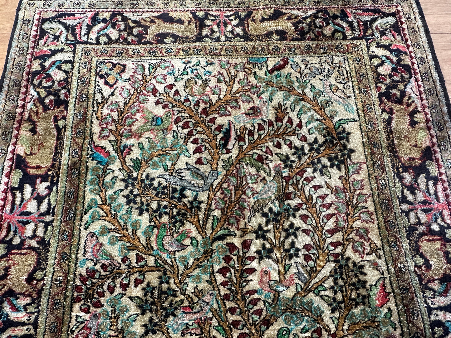 • Material: Hergestellt aus feinster Seide, besticht dieser Teppich durch seine zarte Textur und lebendigen Farben. Die Seide verleiht dem Teppich einen luxuriösen Glanz und eine exquisite Haptik.