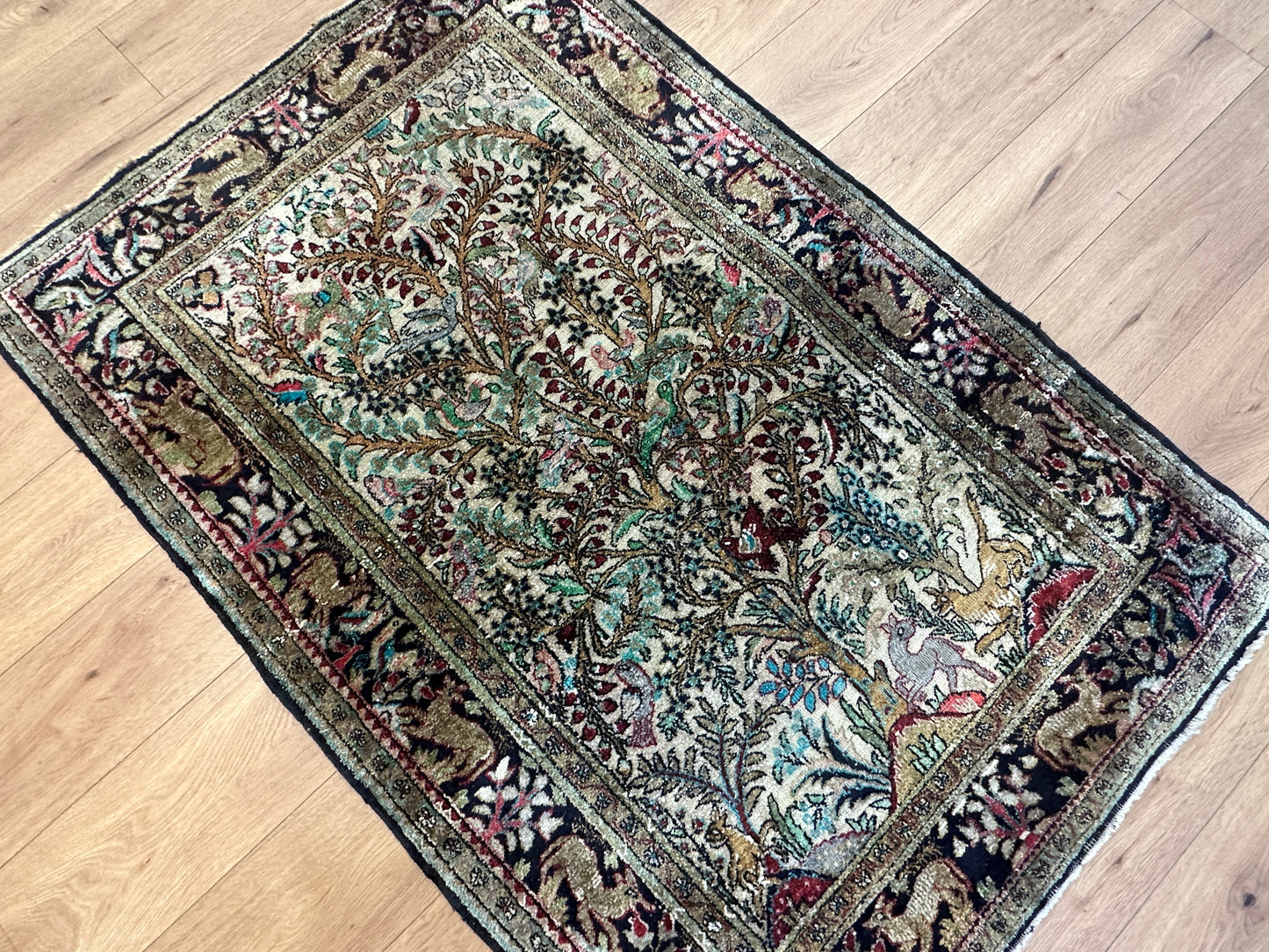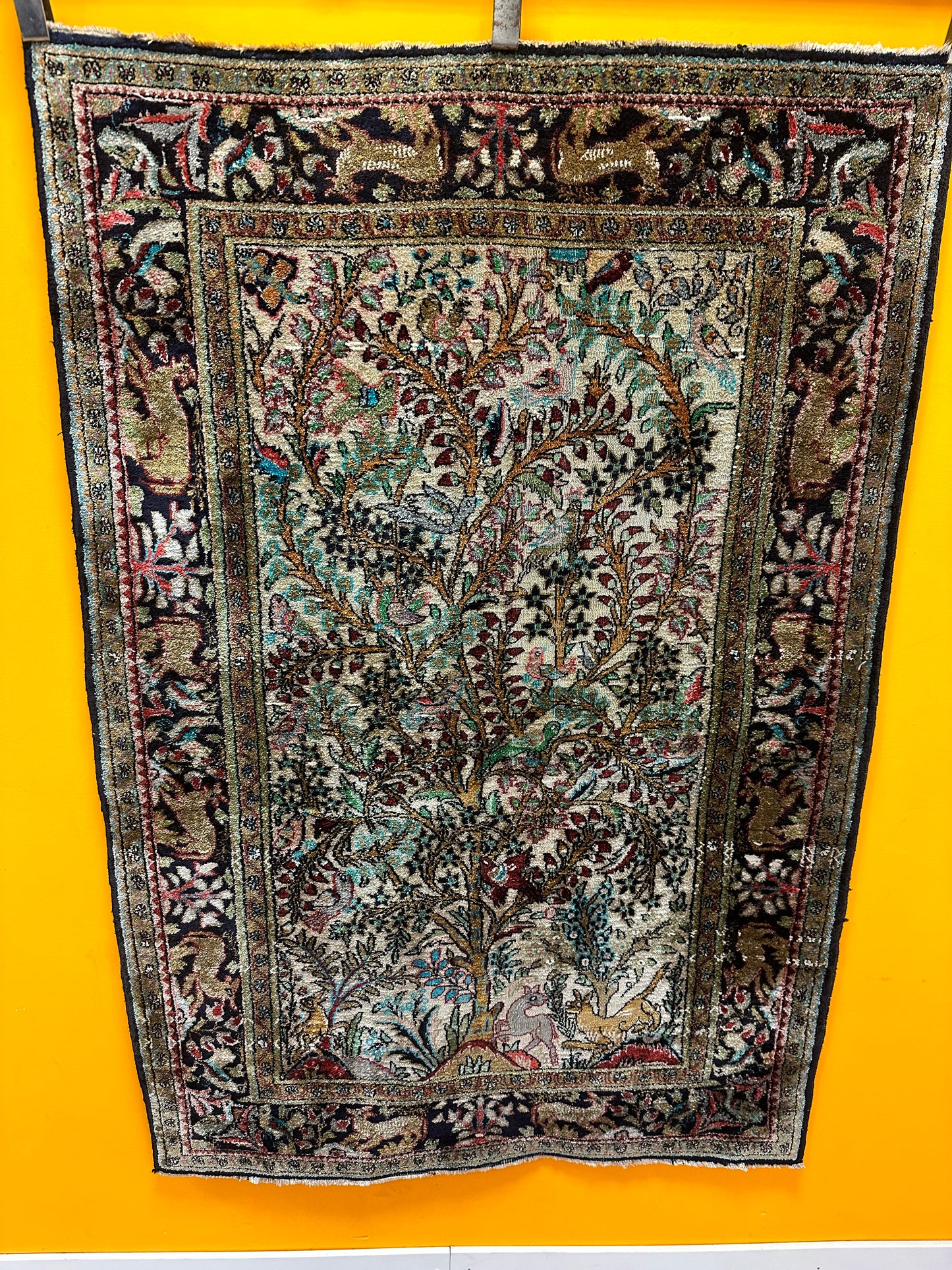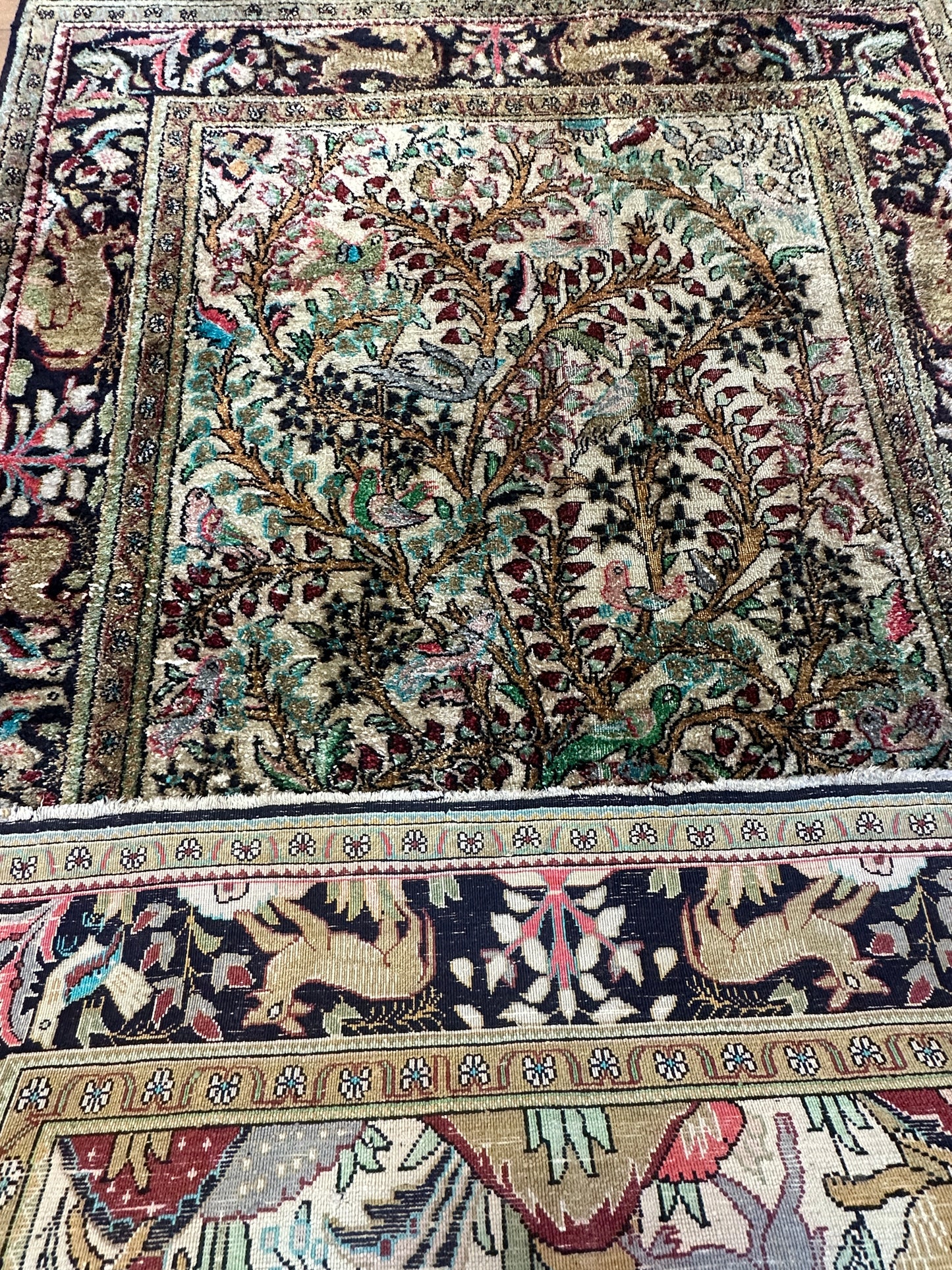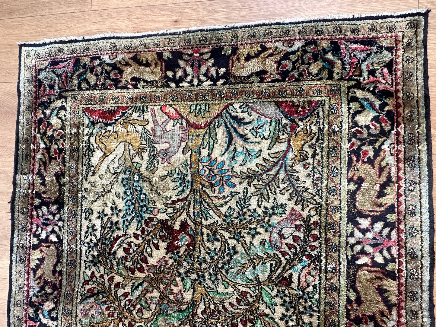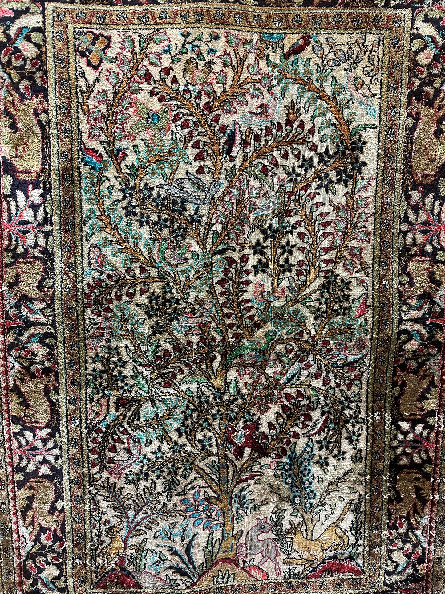 • Material: Hergestellt aus feinster Seide, besticht dieser Teppich durch seine zarte Textur und lebendigen Farben. Die Seide verleiht dem Teppich einen luxuriösen Glanz und eine exquisite Haptik.