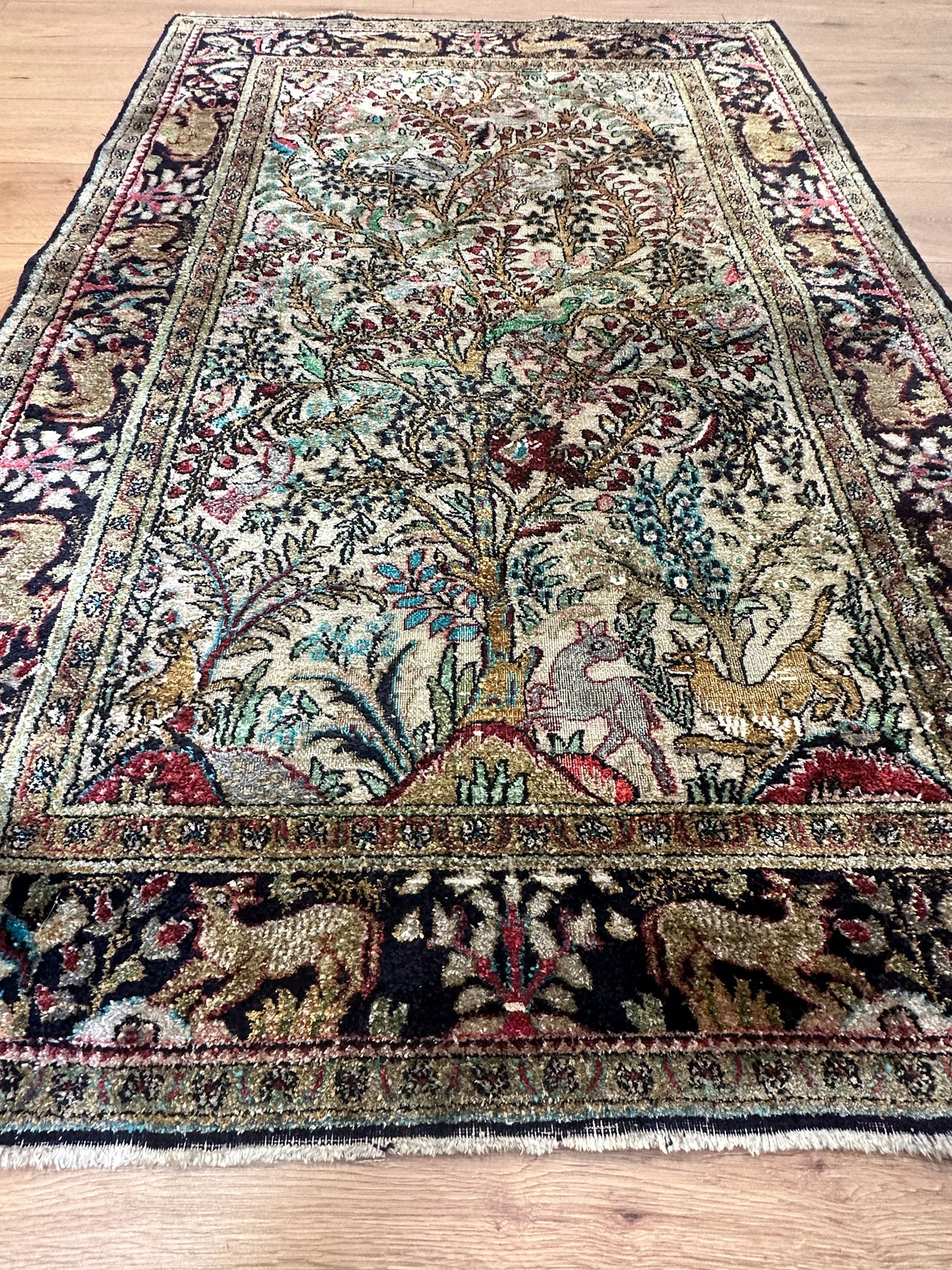 Genießen Sie den Komfort und die Schönheit dieses einzigartigen Ghom Seidenteppichs mit Lebensbaum-Design. Die feine Handwerkskunst und die lebendigen Farben machen diesen Teppich zu einem wahren Schmuckstück, das Ihre Räumlichkeiten auf elegante Weise bereichern wird.