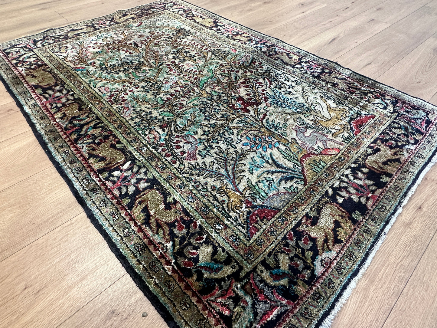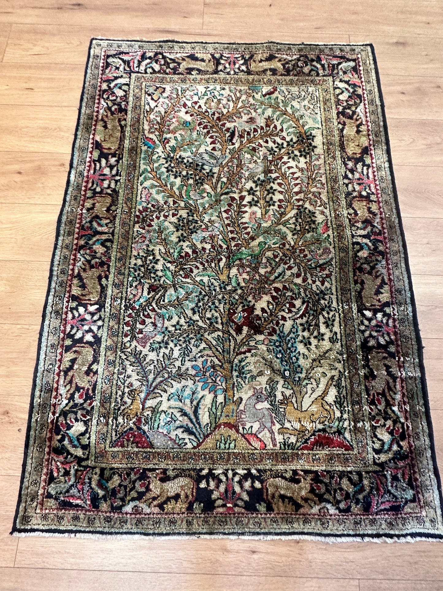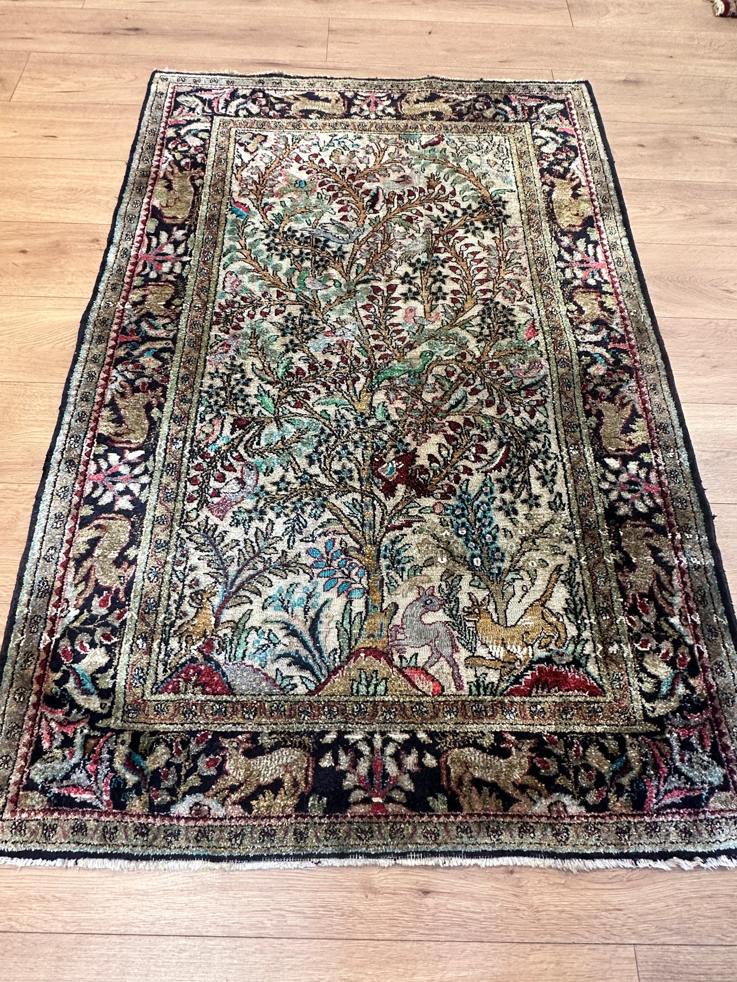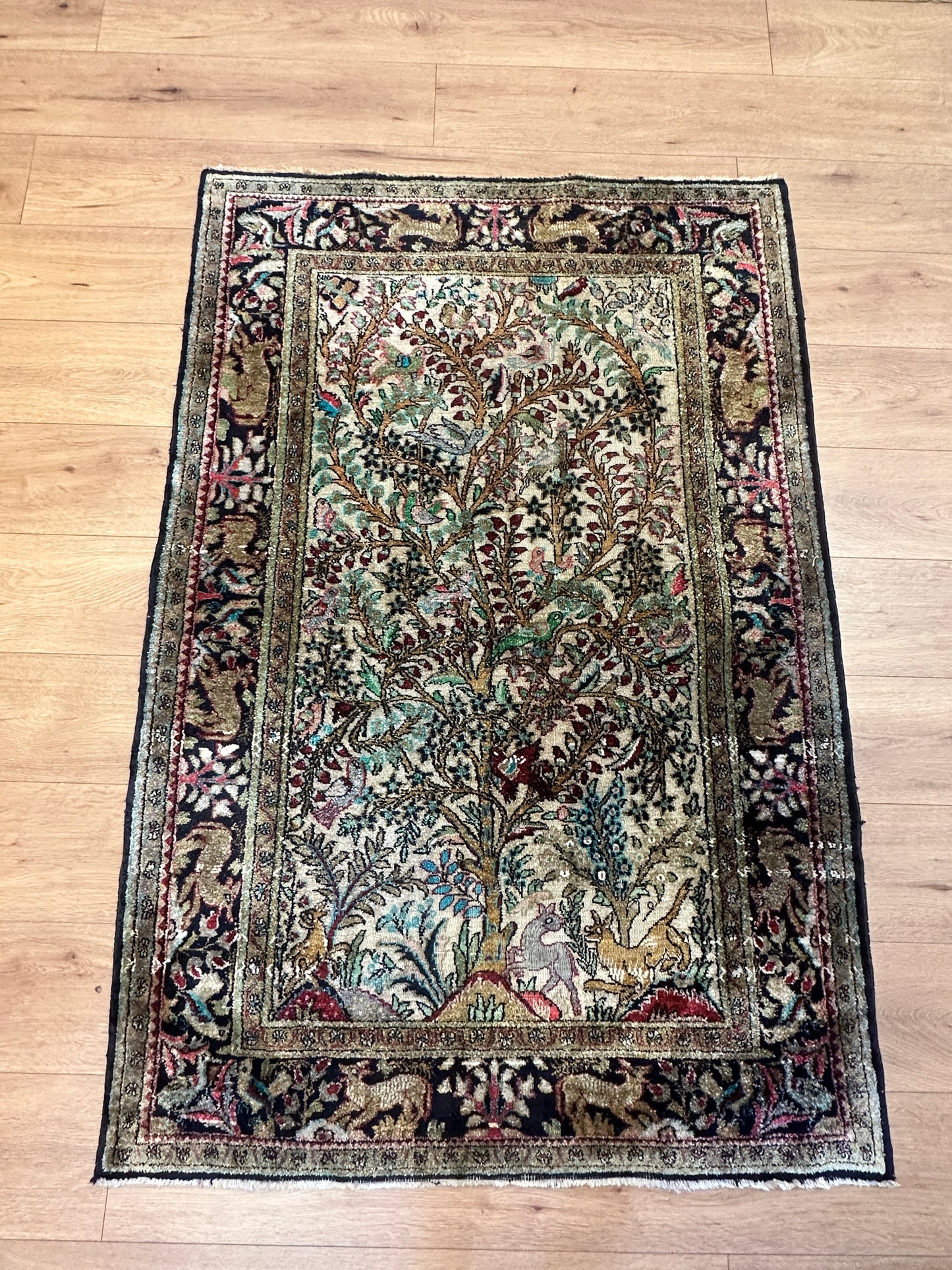 Titel: "Exquisiter Handgeknüpfter Perser Orientteppich - Ghom Seidenteppich Lebensbaum (160x105cm) - Artikelnummer GJ/R 1276 - Gebraucht, Gut Gereinigt"
