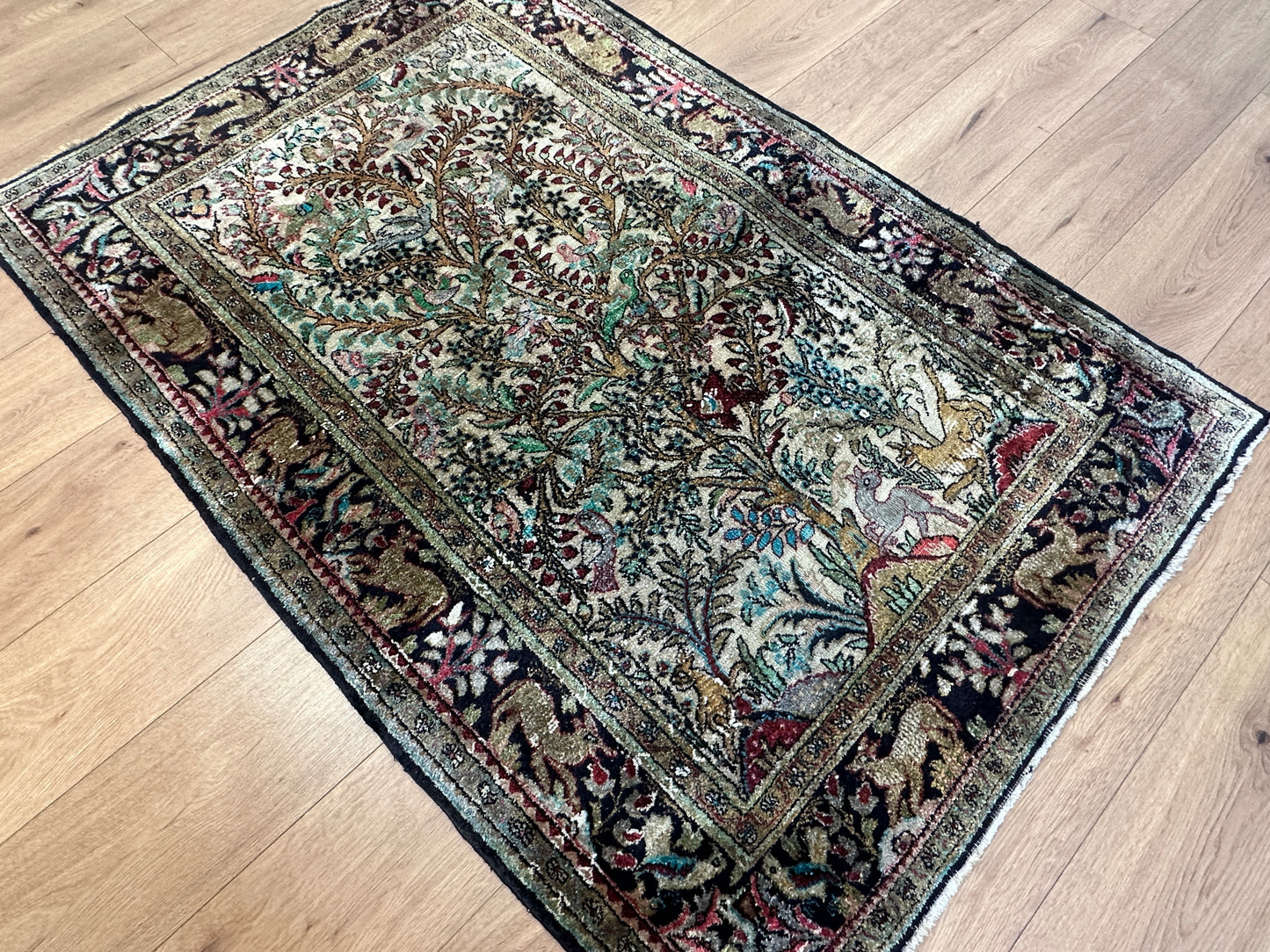 • Design und Herkunft: Dieser Teppich zeichnet sich durch sein kunstvolles Lebensbaum-Design aus, gefertigt in der berühmten Region Ghom. Die feinen Details und das elegante Muster verleihen dem Teppich eine zeitlose Schönheit.