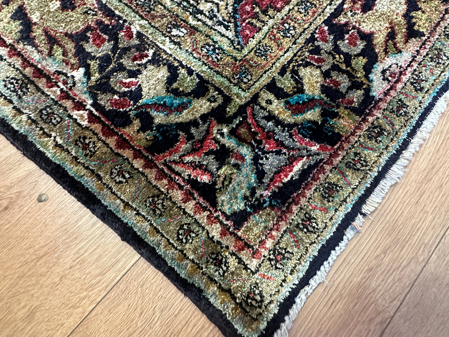 • Zustand: Der Teppich befindet sich in einem gebrauchten, jedoch gut gepflegten Zustand. Er wurde professionell gereinigt, um seine Schönheit zu bewahren und zu revitalisieren.