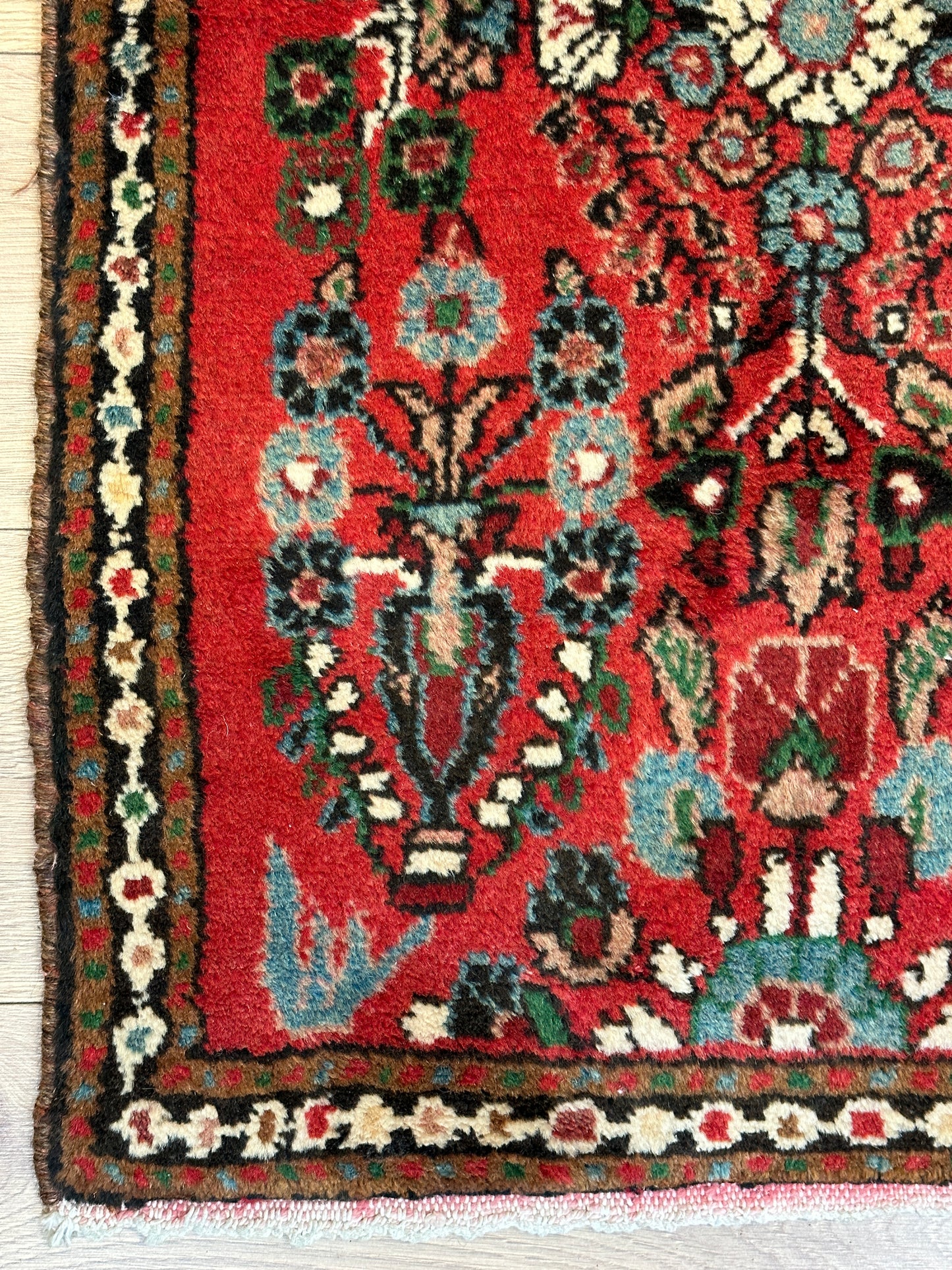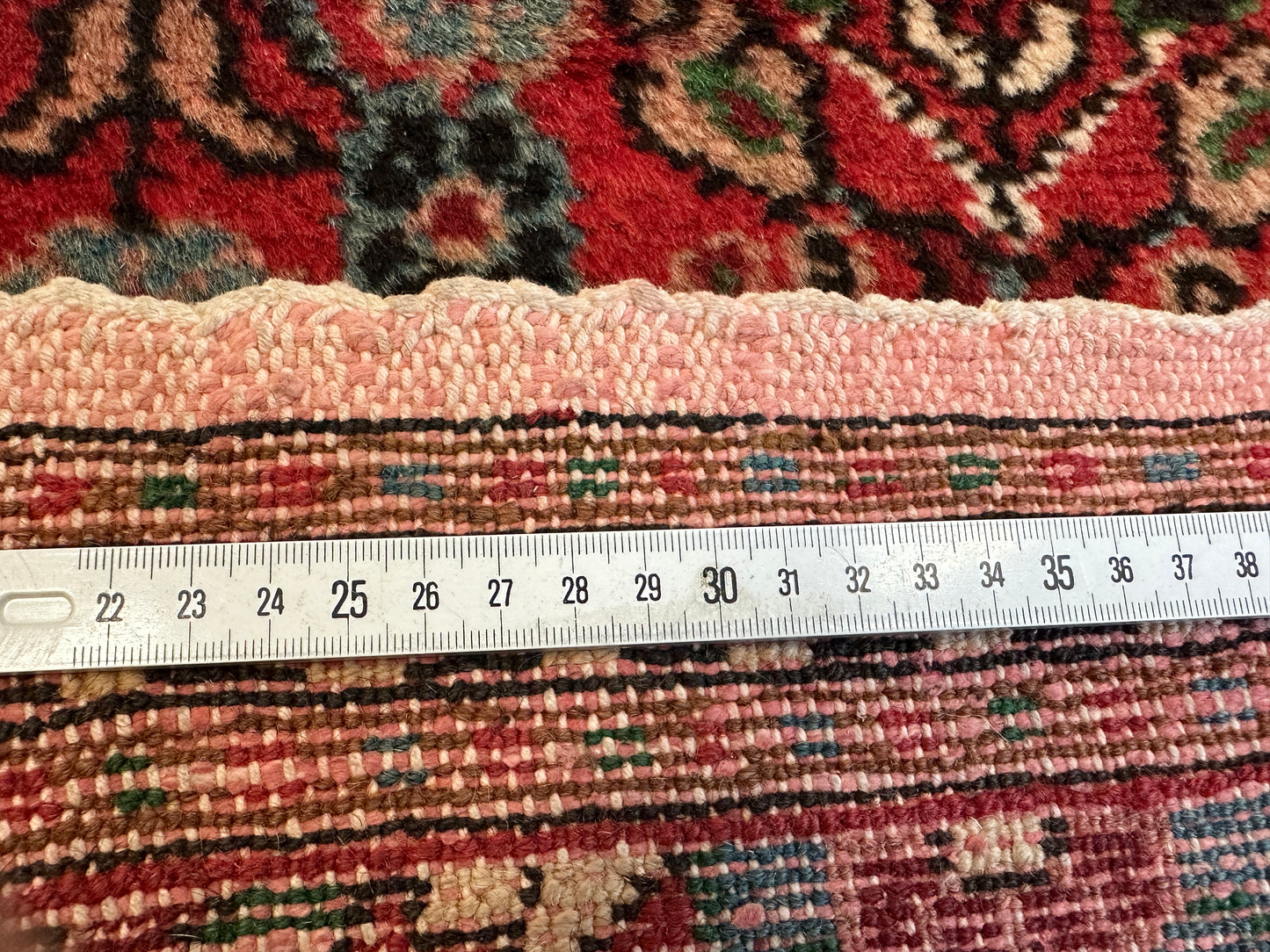 Hinweis: Aufgrund der Handarbeit kann es zu minimalen Variationen in Farbe und Muster kommen, was die Einzigartigkeit jedes Teppichs unterstreicht.
