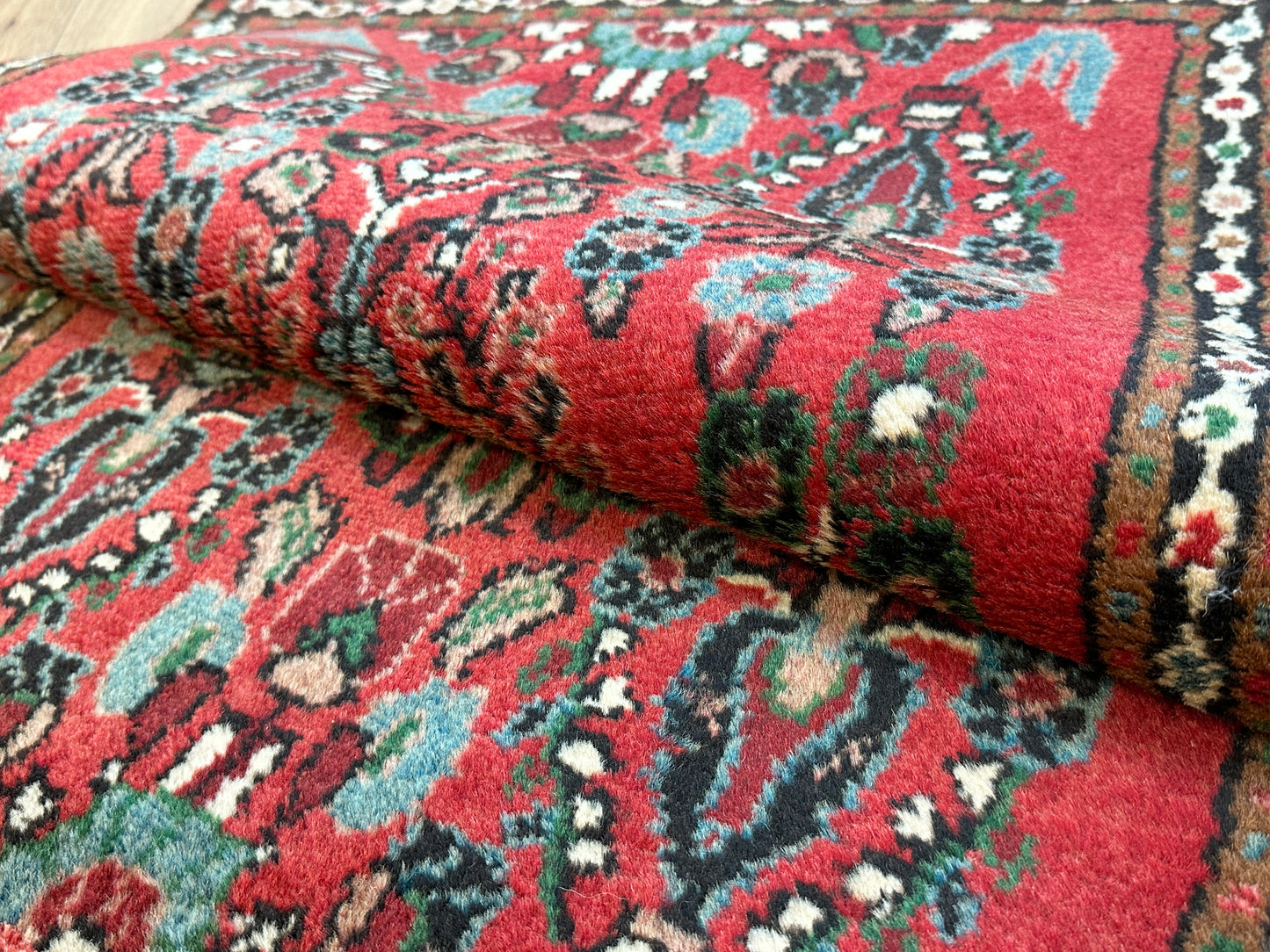 • Malayer-Design: Die auffälligen Muster und lebendigen Farben repräsentieren die traditionelle Handwerkskunst und die kulturelle Bedeutung des Malayer-Stils.
