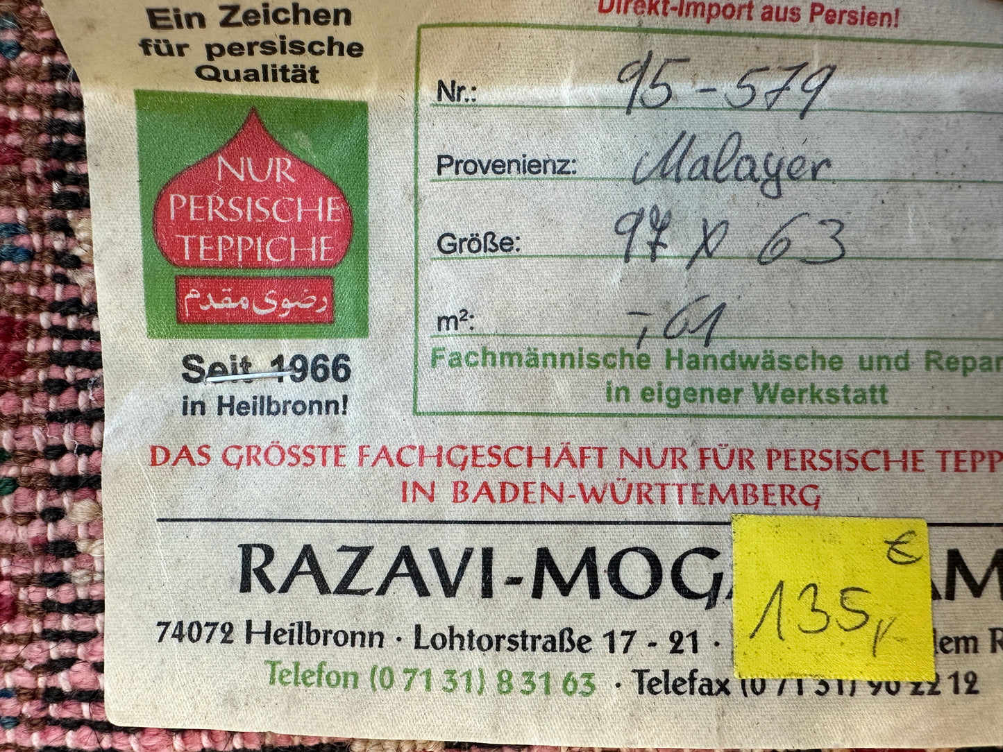 Titel: Handgeknüpfter Perser Orientteppich Malayer - Neu (95x62 cm)