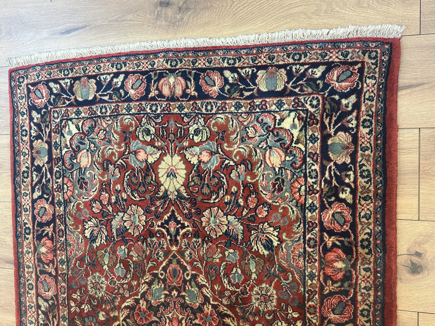Trotz seines Gebrauchtzustands befindet sich dieser Teppich in einem hervorragenden Zustand, der durch eine professionelle Reinigung noch verbessert wurde. Ein Sarough Hamadan Teppich verleiht jedem Raum nicht nur Stil, sondern auch kulturelle Tiefe.
