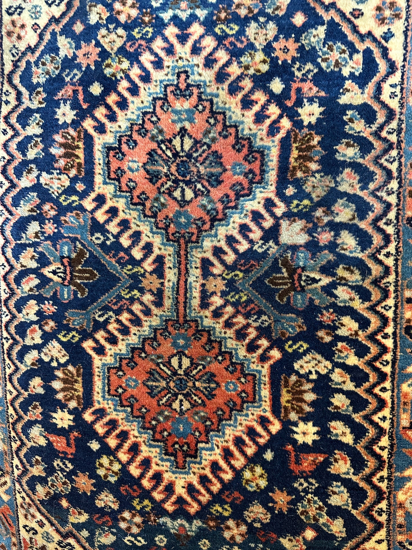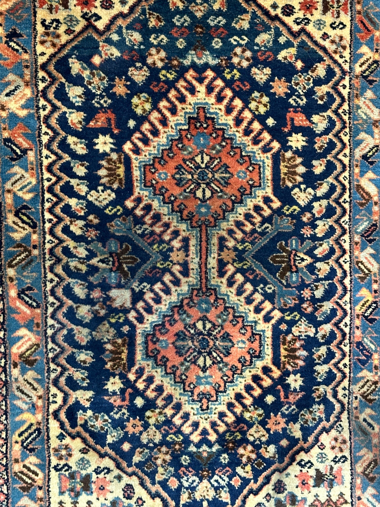 • Yalamel-Stil: Dieser Teppich präsentiert charakteristische Elemente des Yalamel-Stils, die sich harmonisch in das Jugendstil-Design einfügen und eine einzigartige visuelle Ausdruckskraft schaffen.