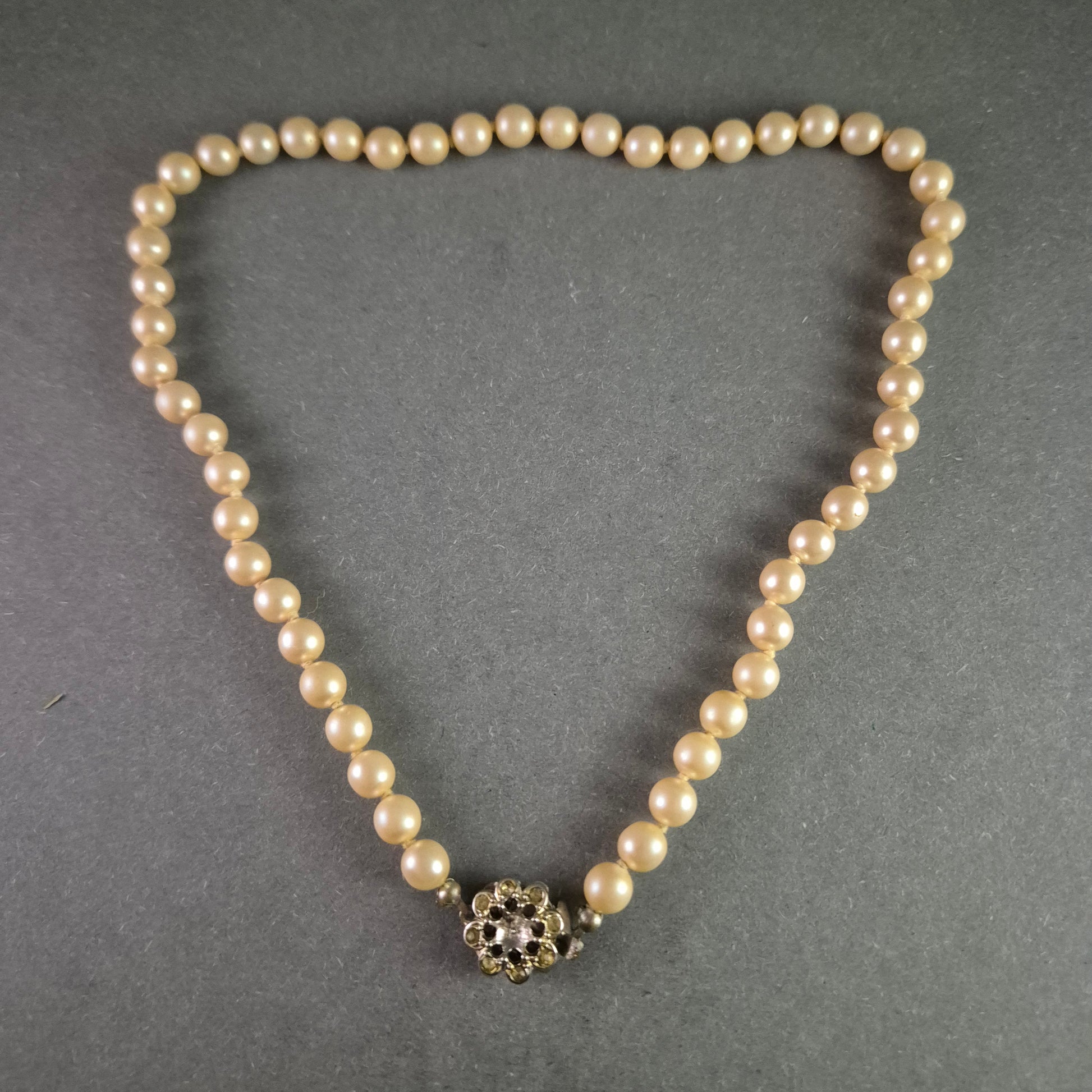 Klassische Perlenkette mit floralem Verschluss – Eleganz für besondere Anlässe