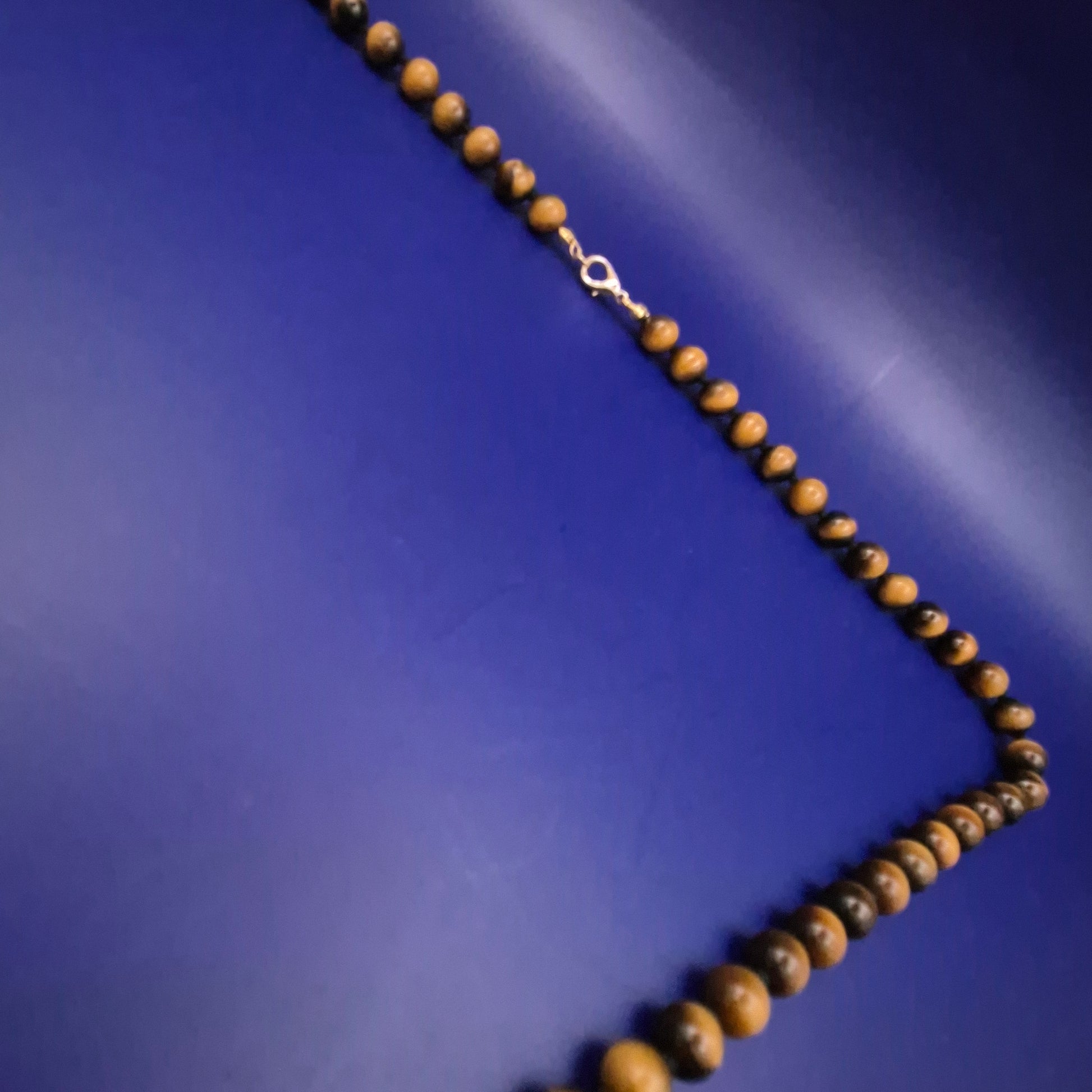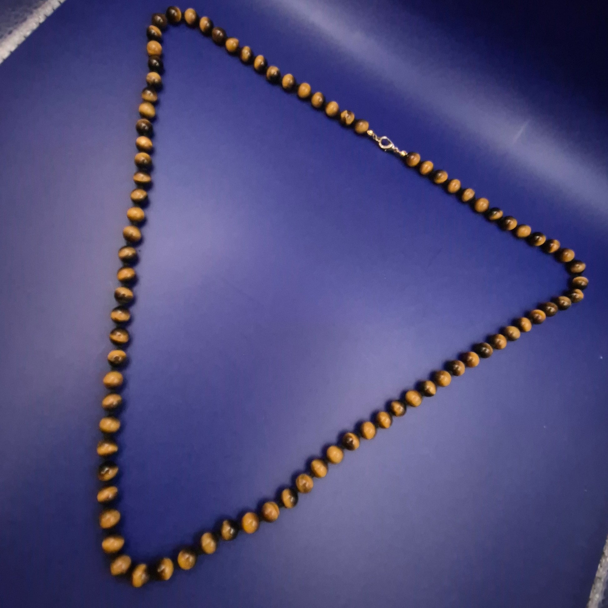 Diese edle Halskette aus echten Tigerauge-Perlen überzeugt durch ihre warme, erdige Farbgebung und den dezenten Glanz der Natursteine. Die runden Perlen sind gleichmäßig aufgereiht und zeigen das charakteristische, goldbraune Schimmern des Tigerauges. Mit einem silberfarbenen Karabinerverschluss ausgestattet, lässt sich die Kette sicher und einfach tragen. Perfekt für Naturliebhaberinnen und alle, die natürliche Eleganz schätzen.