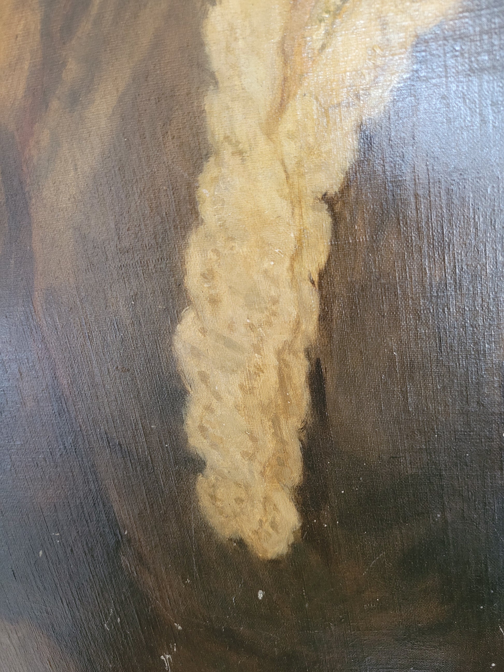 Mit seinen Maßen von 80x63 cm im Rahmen und 73x53 cm ohne Rahmen ist dieses Kunstwerk eine exzellente Wahl für klassische und stilvolle Innenräume. Der Zustand des Gemäldes ist gut, wie auf den Fotos ersichtlich.