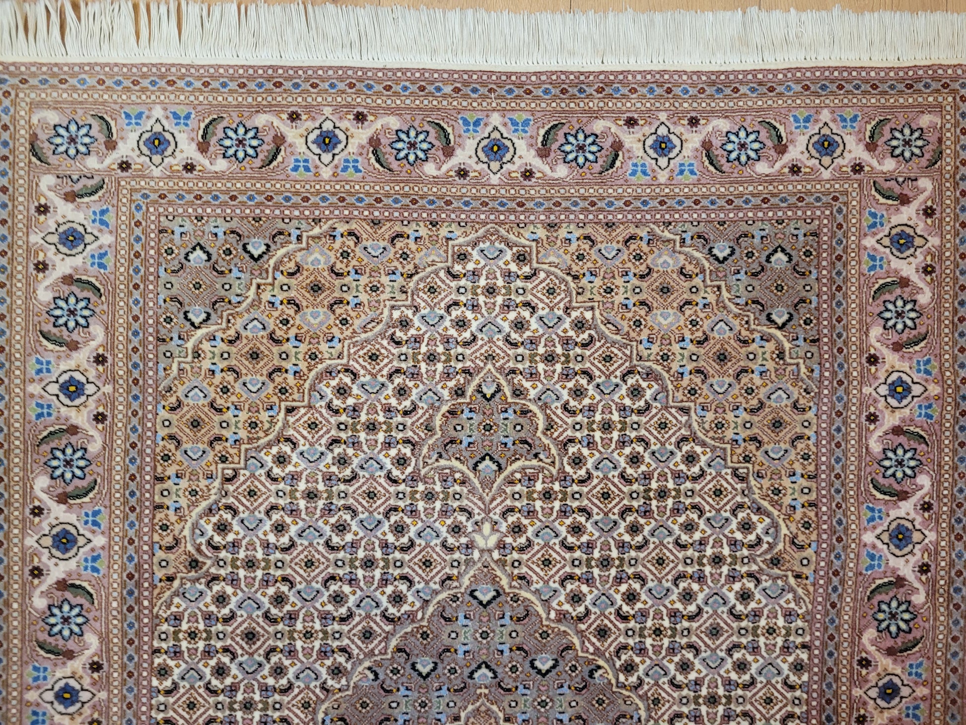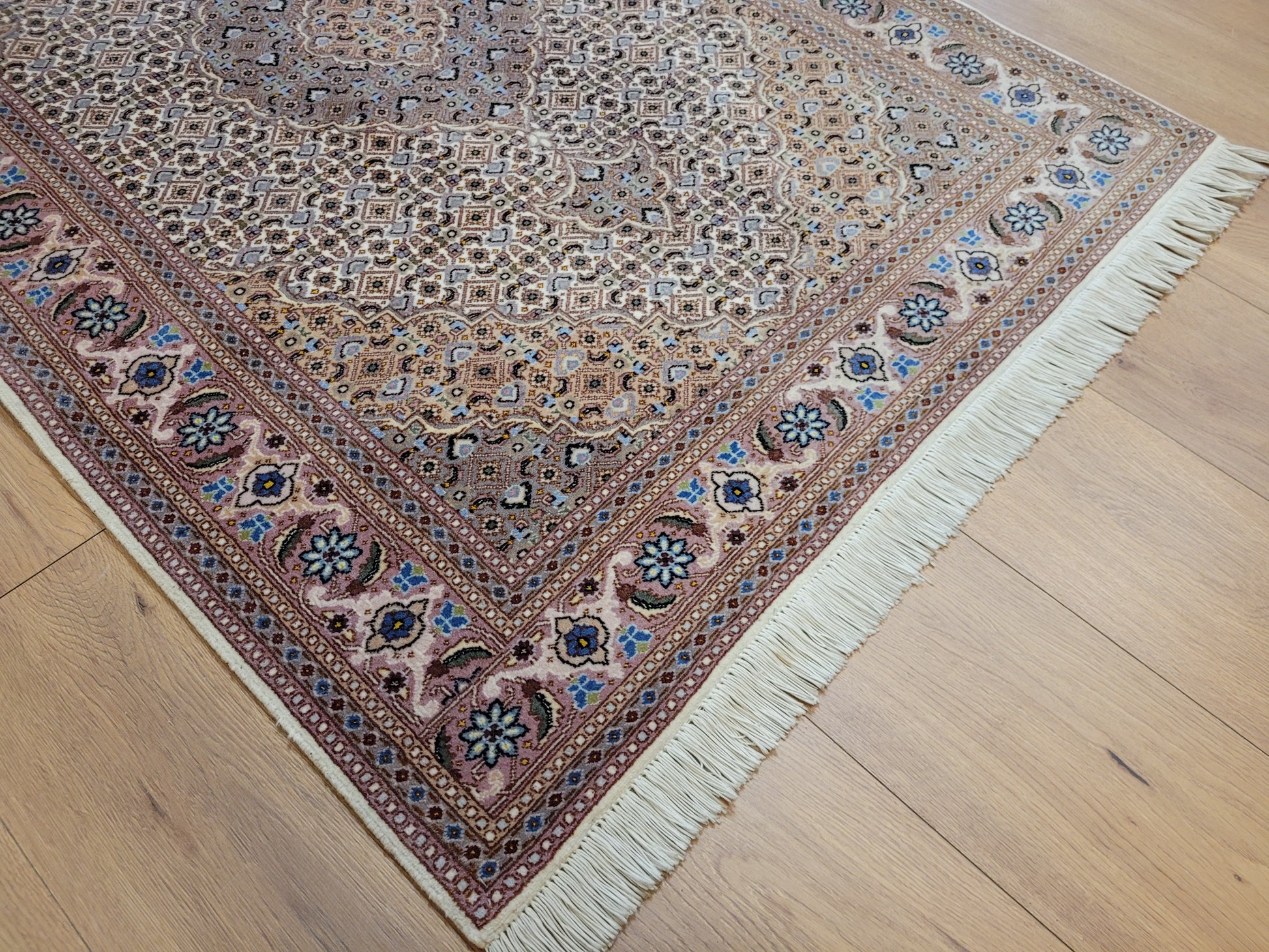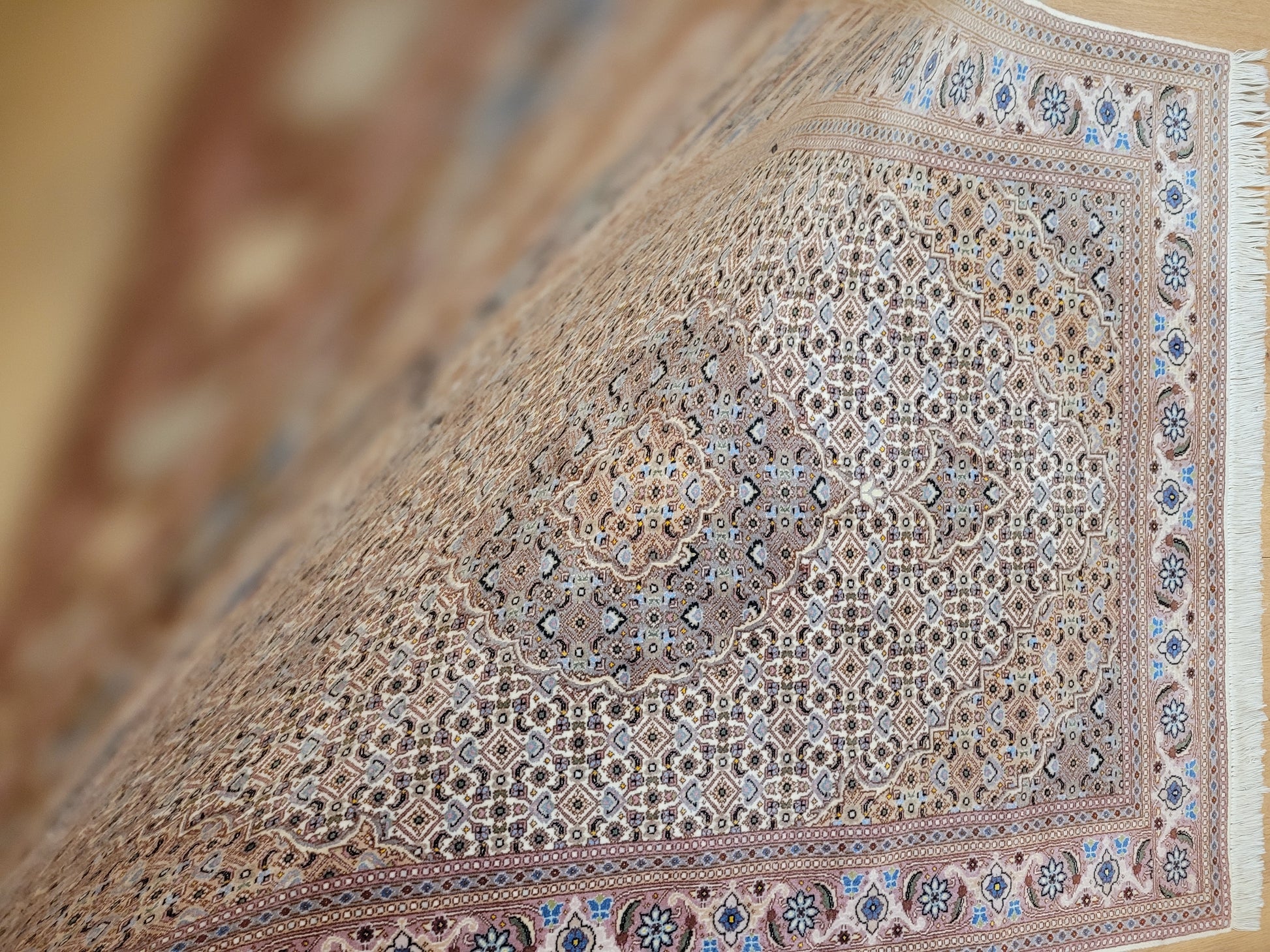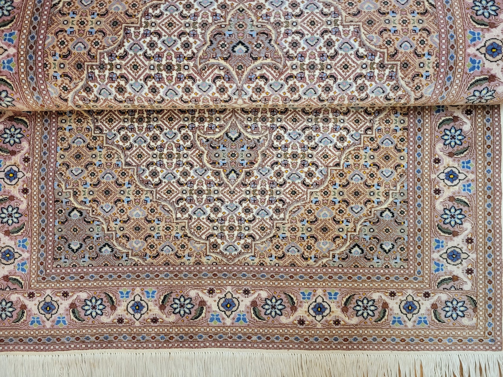 Täbriz Teppich Korkwolle Seide feine Knüpfung Allover Muster