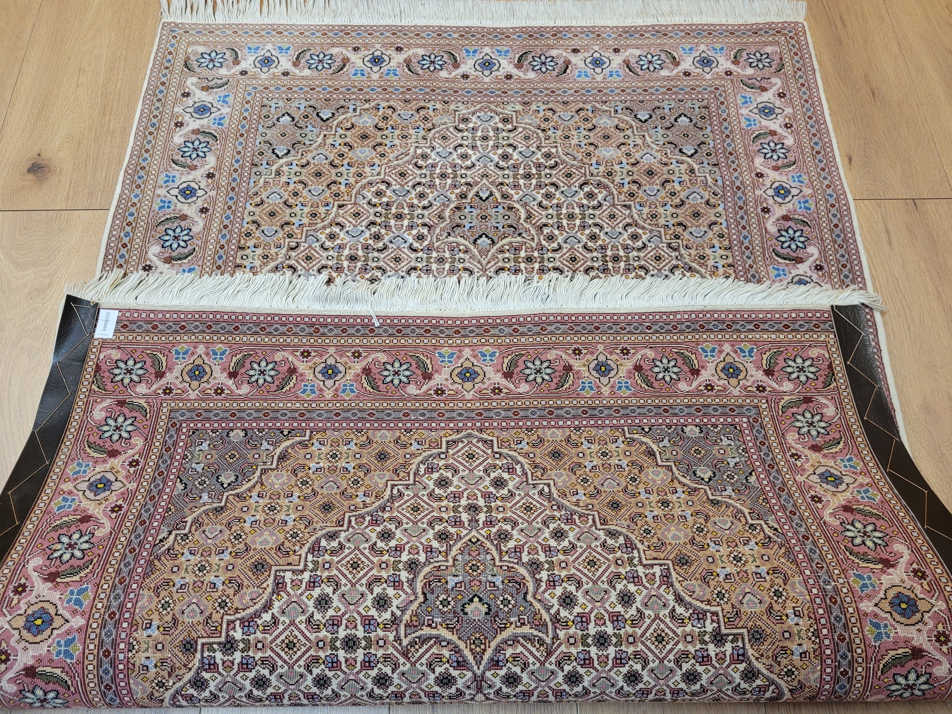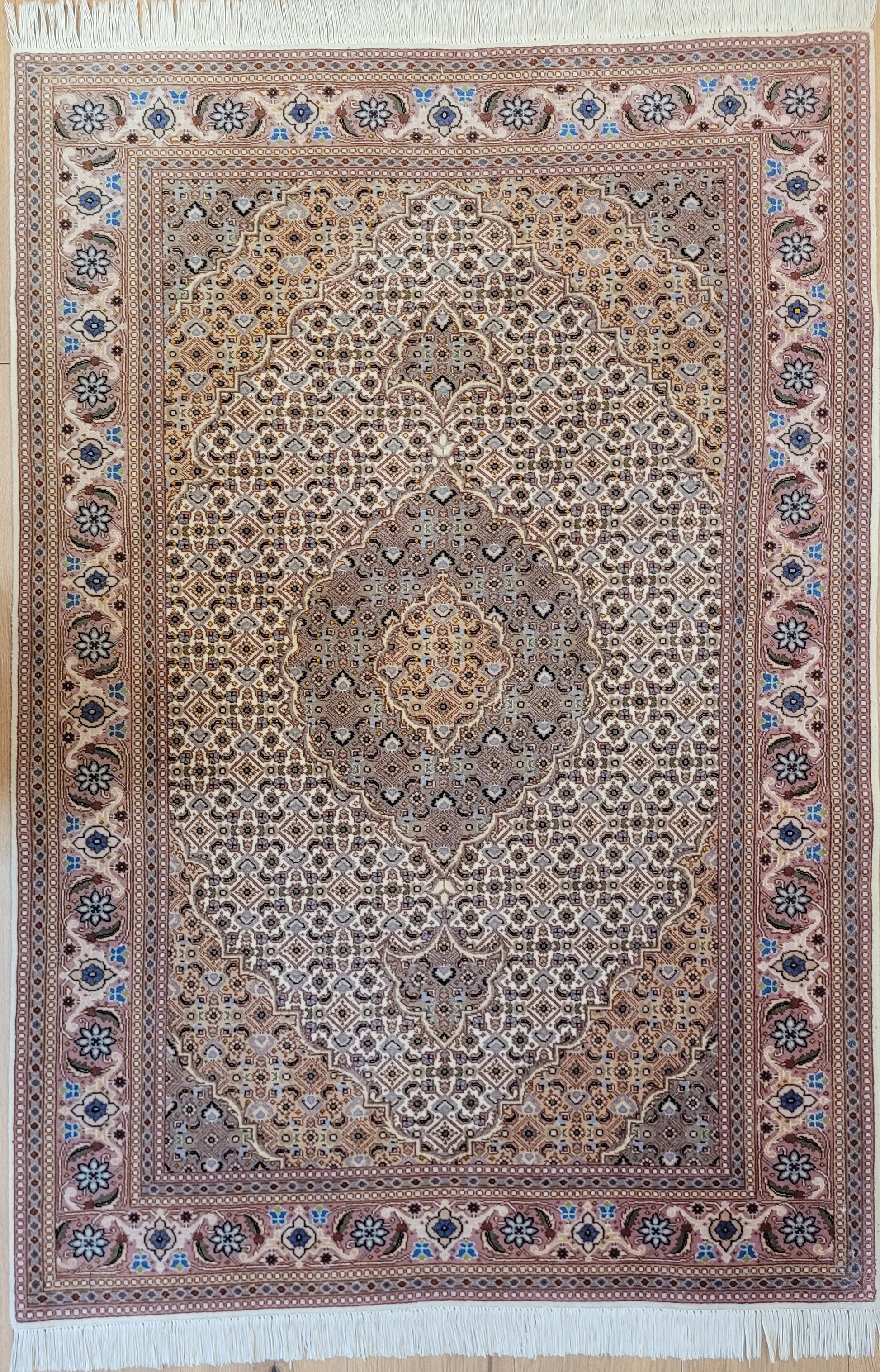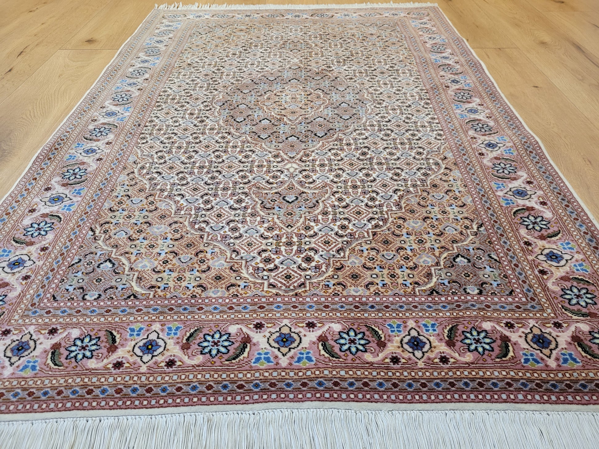 Täbriz Teppich Korkwolle Seide feine Knüpfung Allover Muster