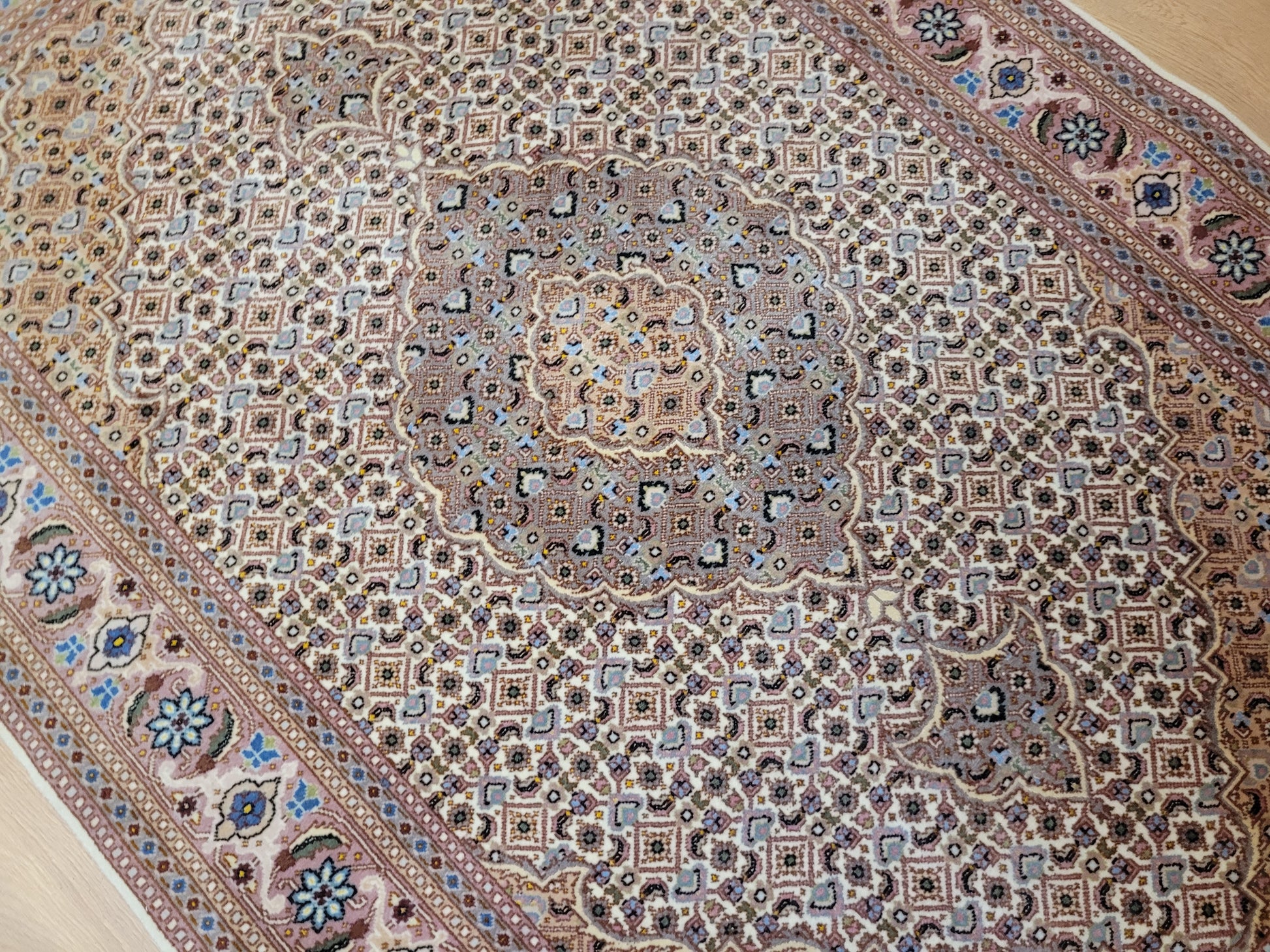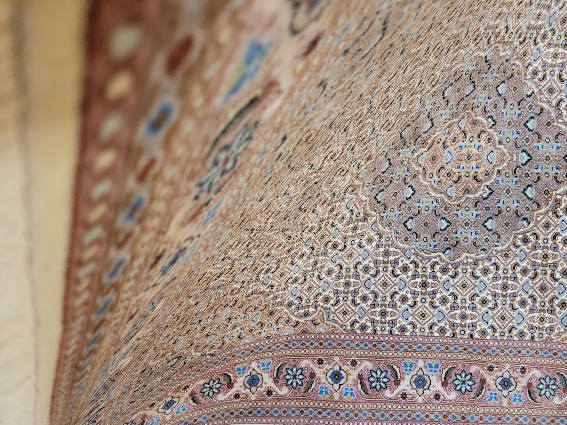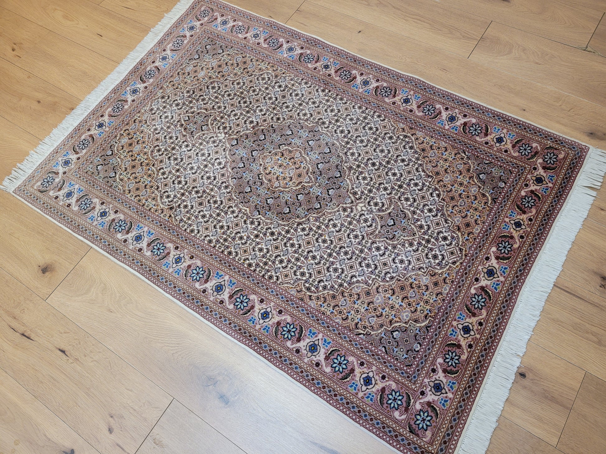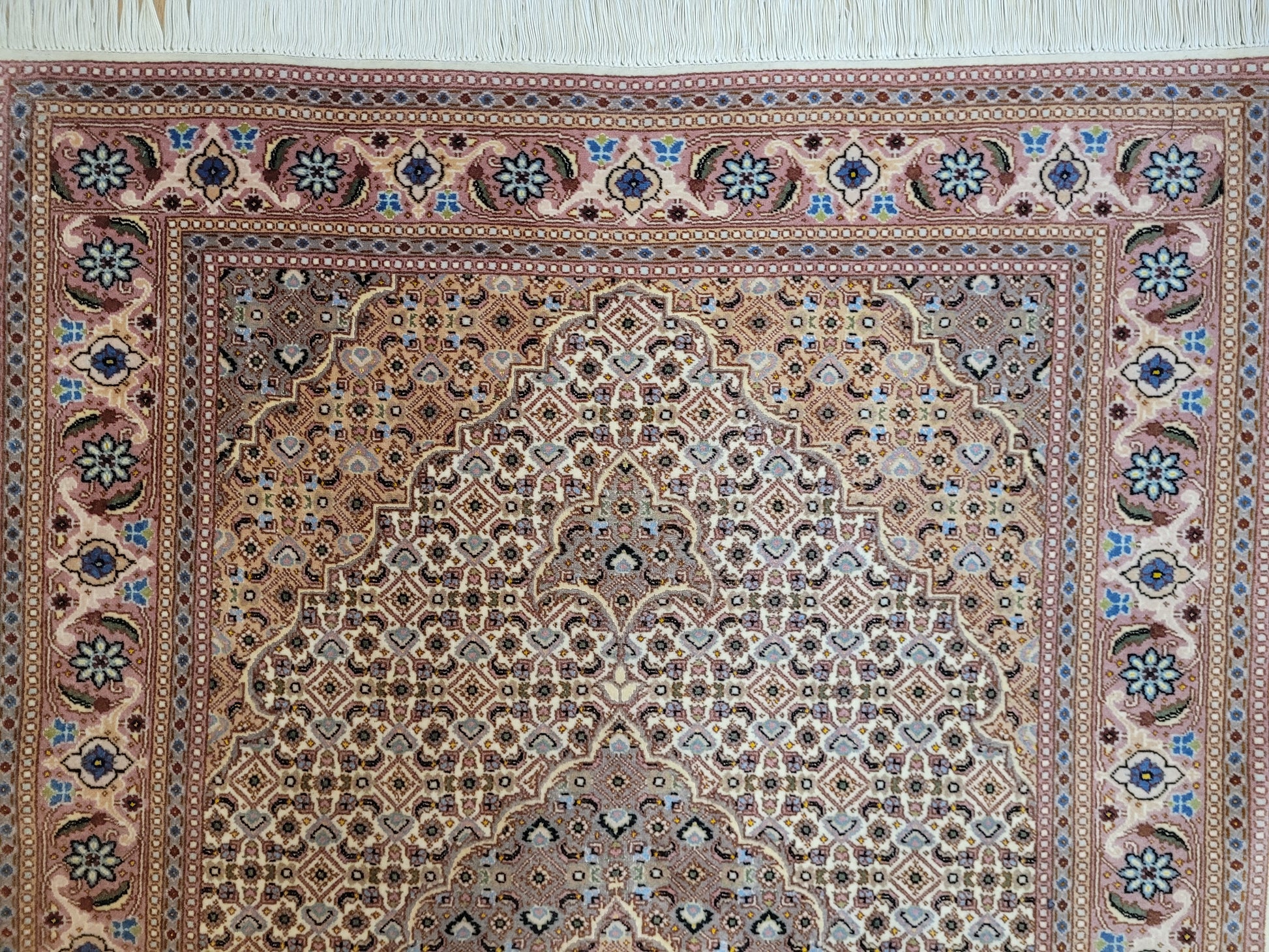 Täbriz Teppich Korkwolle Seide feine Knüpfung Allover Muster