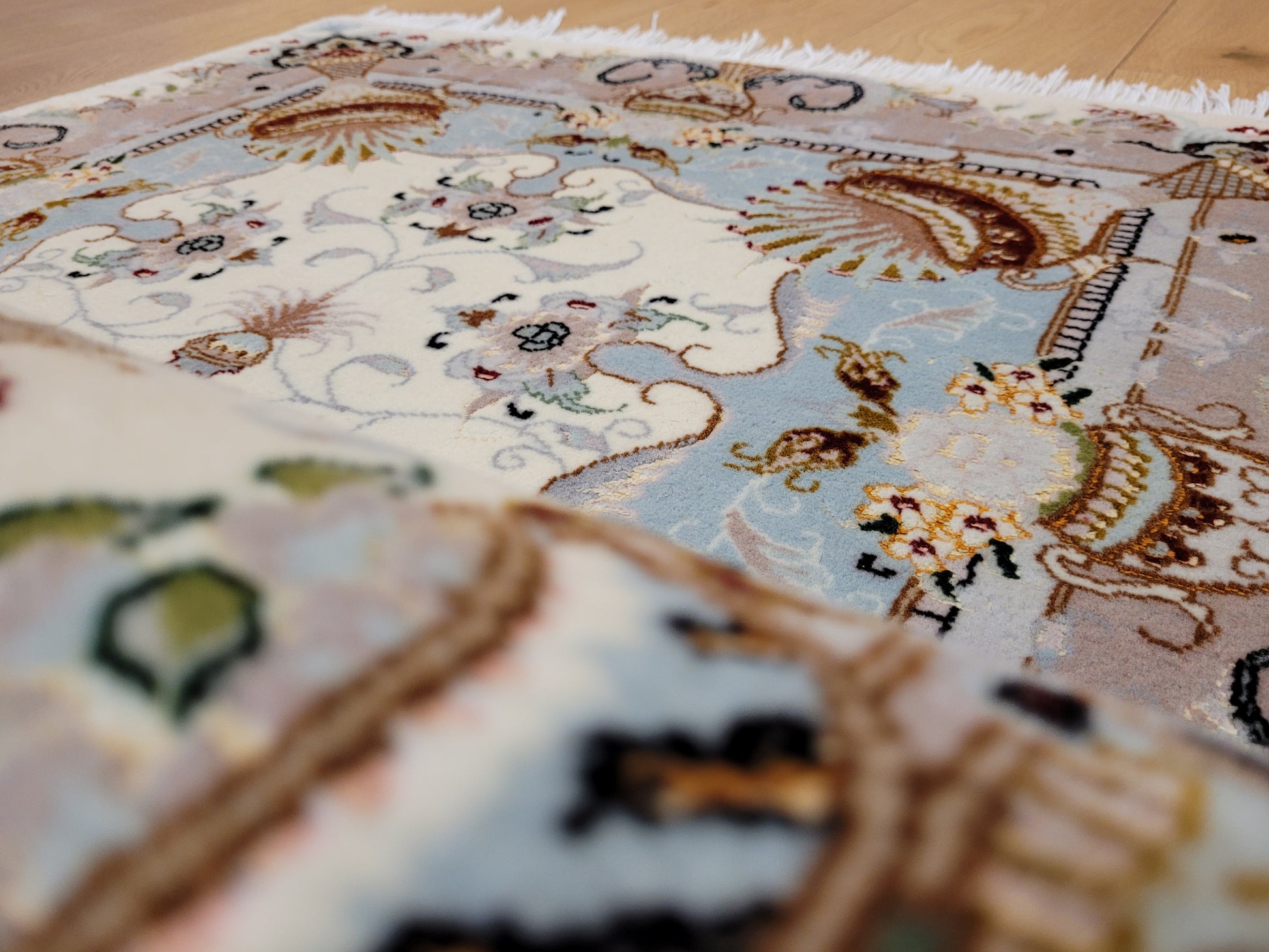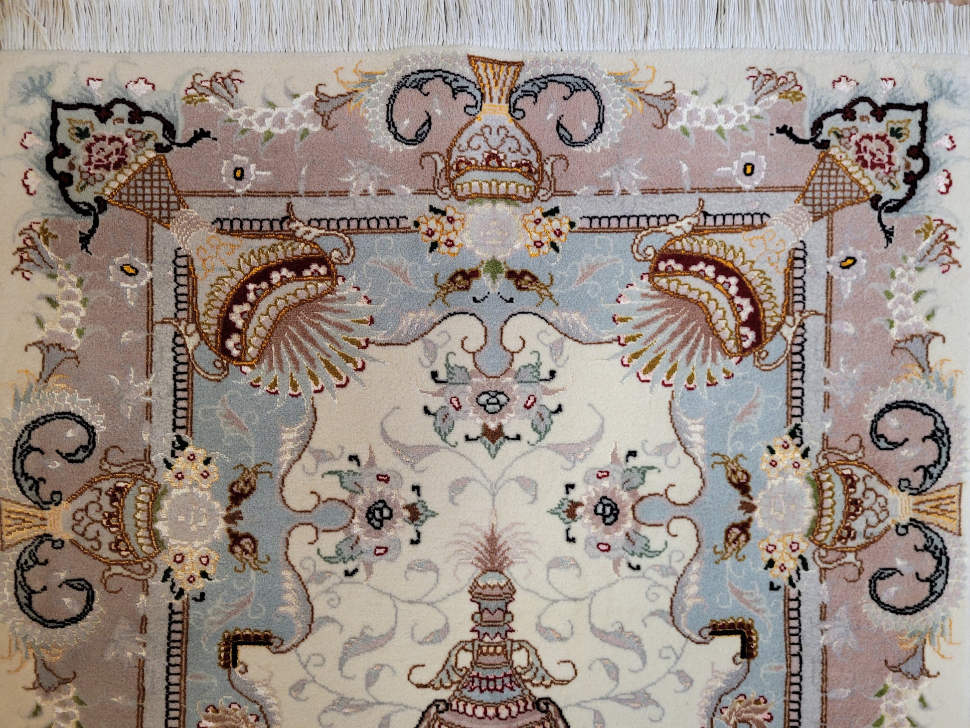 Täbriz Teppich Korkwolle Seide feine Knüpfung klassisches Design