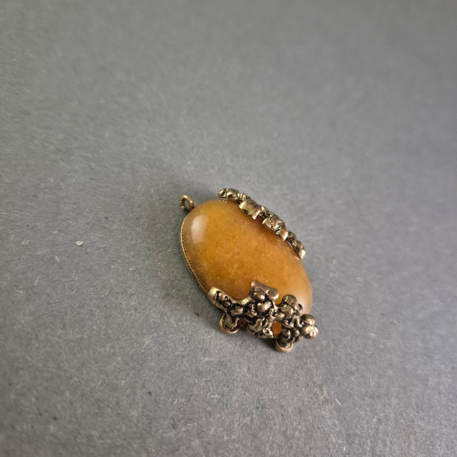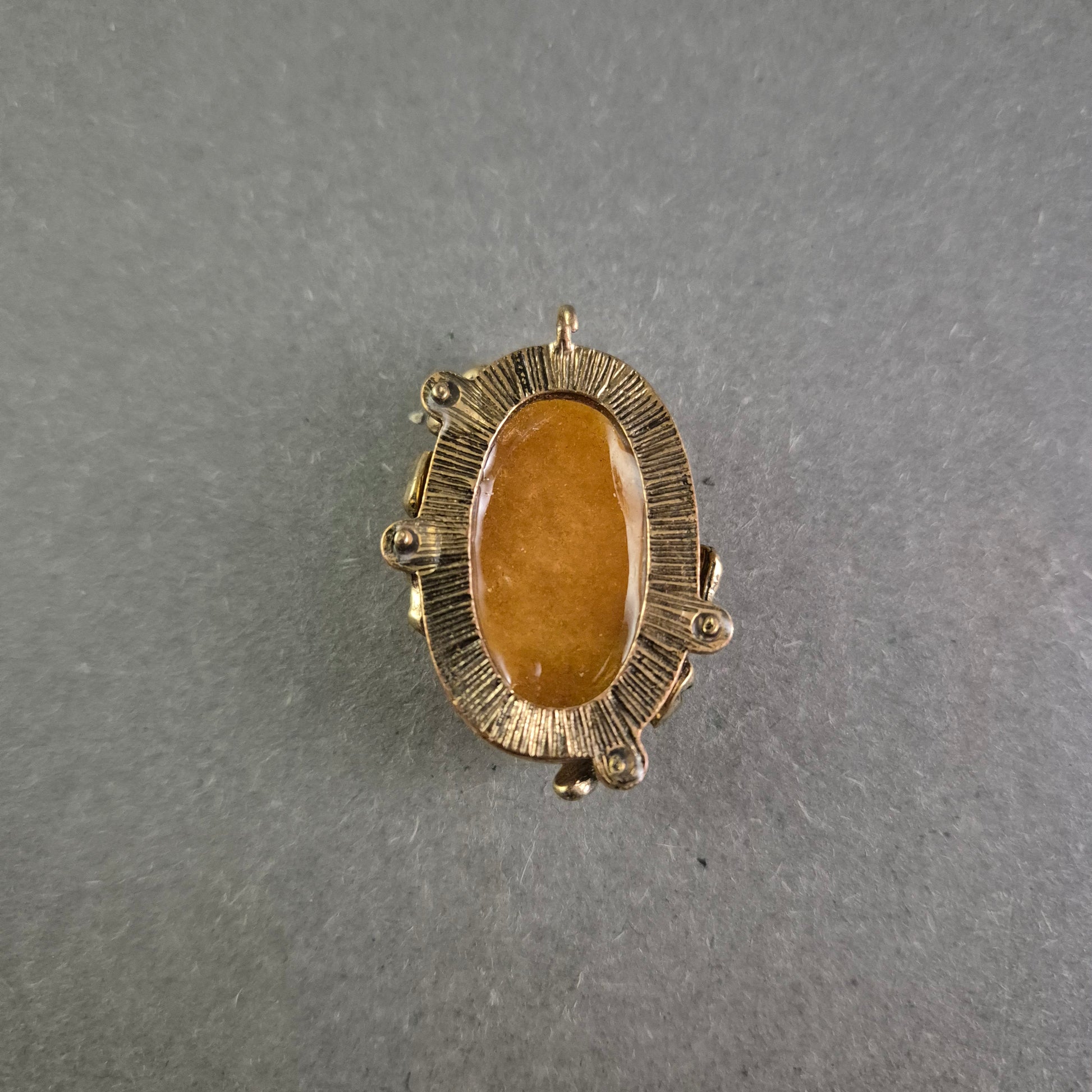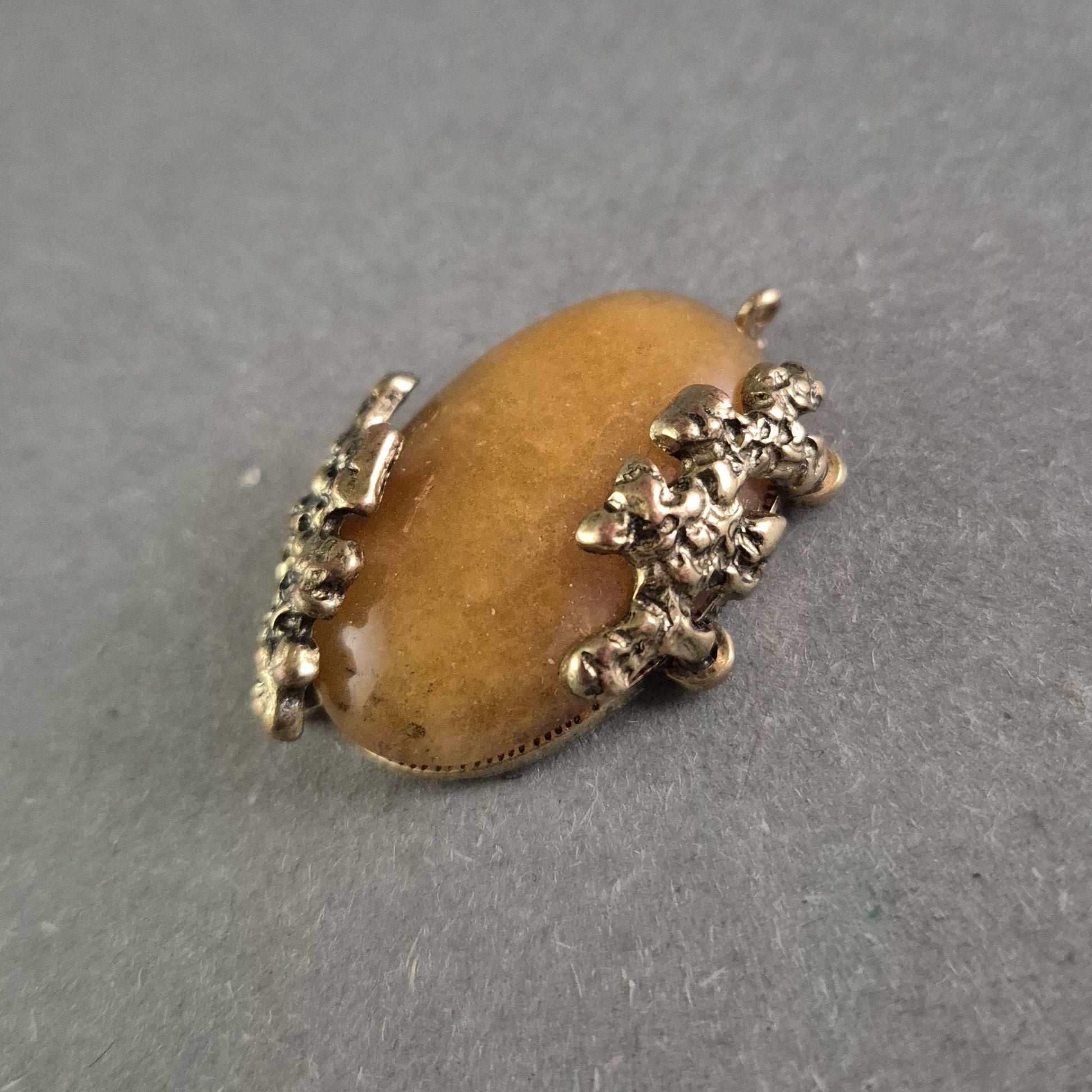 Vintage-Anhänger mit ovalem braunem Stein – Florales Design