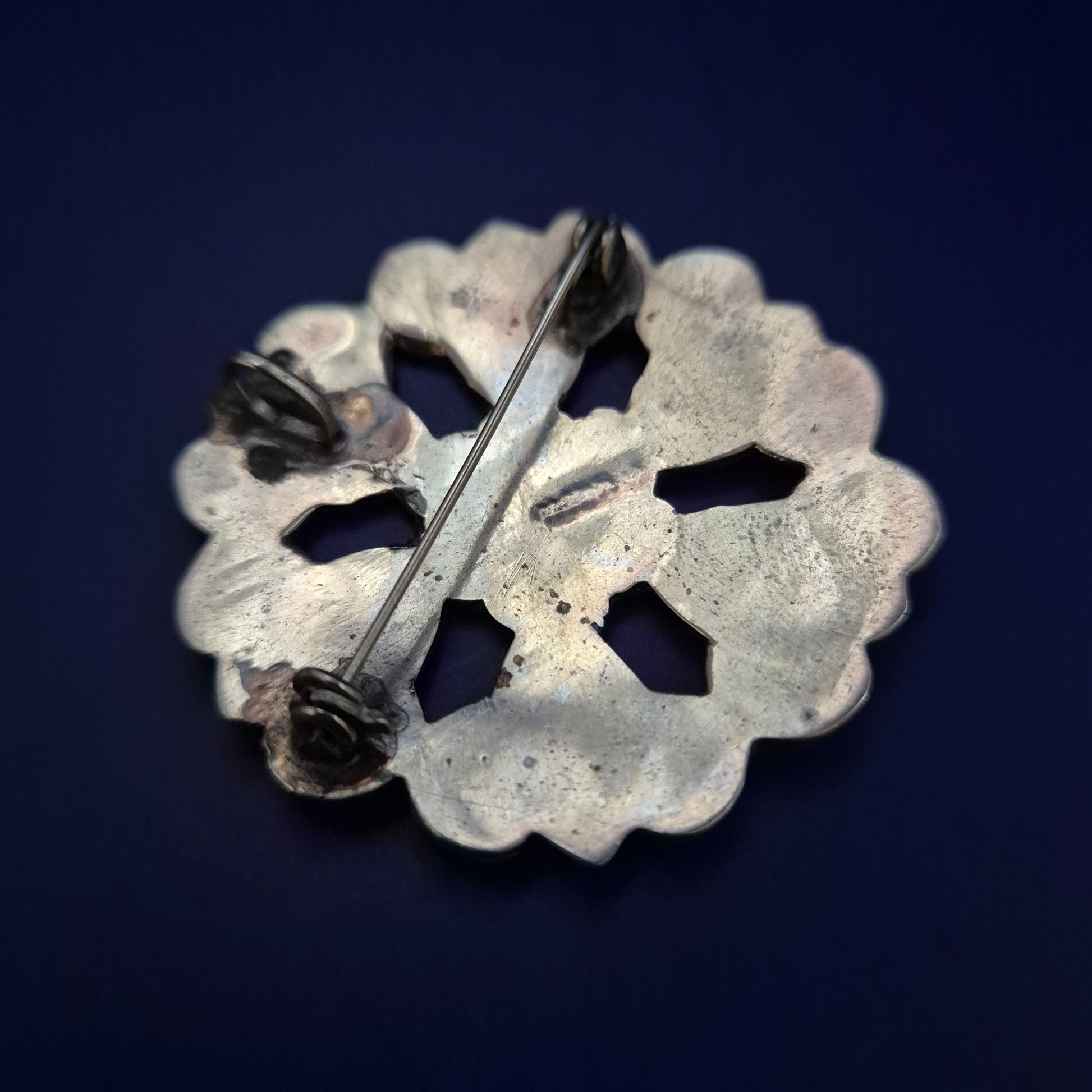 Vintage-Brosche mit Abalone & Türkisoptik – Florales Design