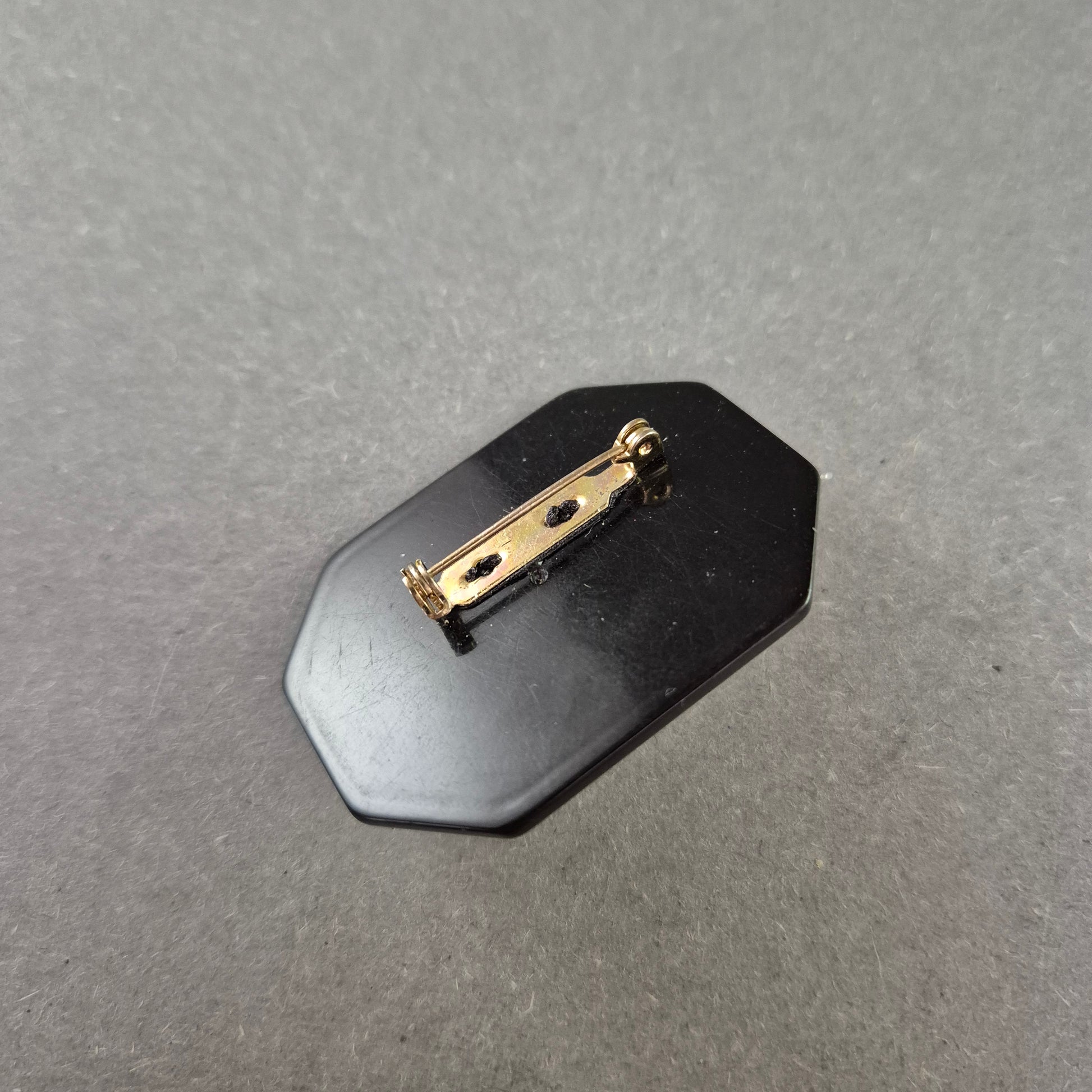 Vintage-Brosche mit Facettstein – Schwarz-Goldenes Design im Barockstil