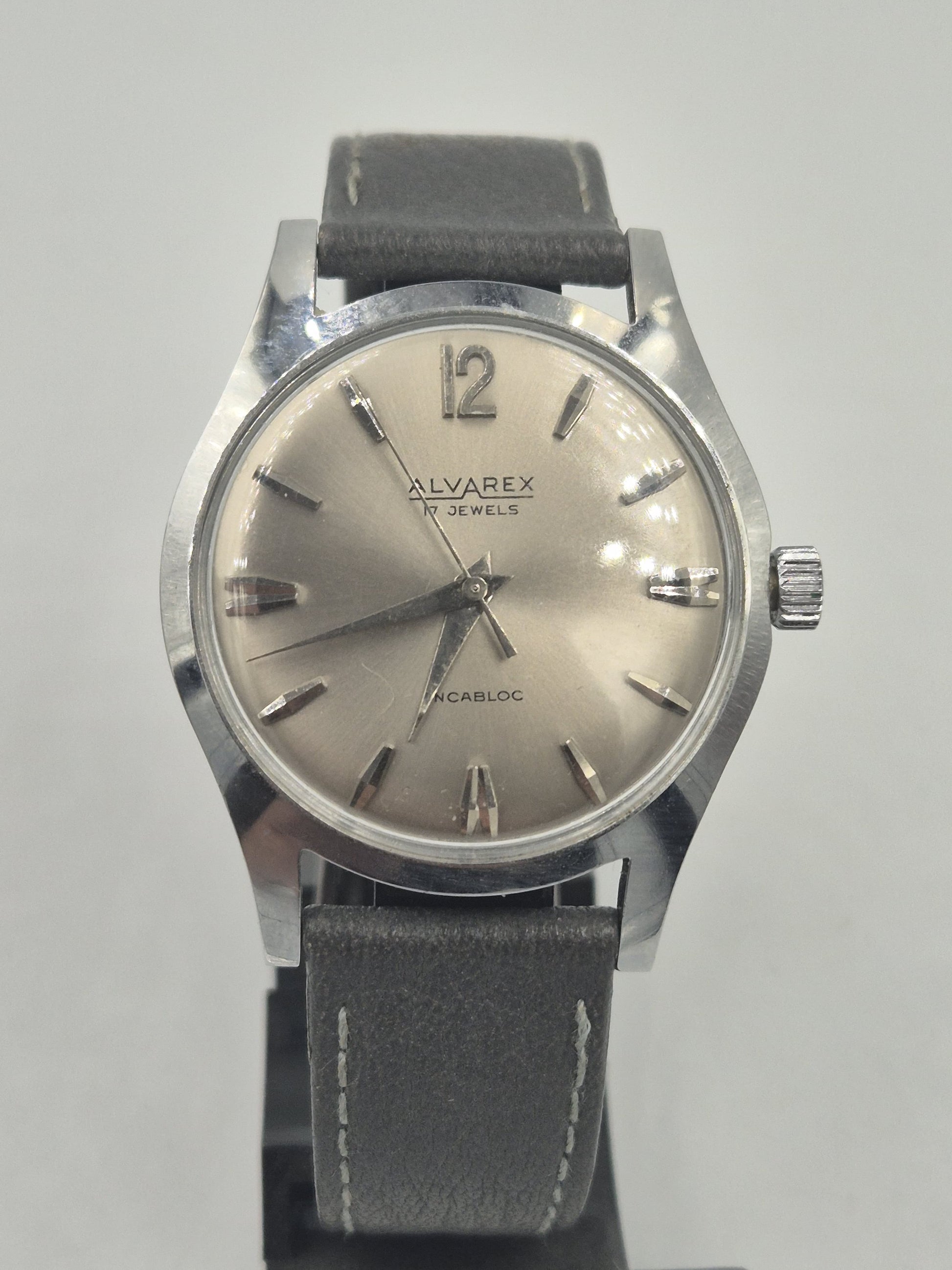 Vintage Herren-Armbanduhr „Alvarex 17 Jewels“ mit Lederarmband