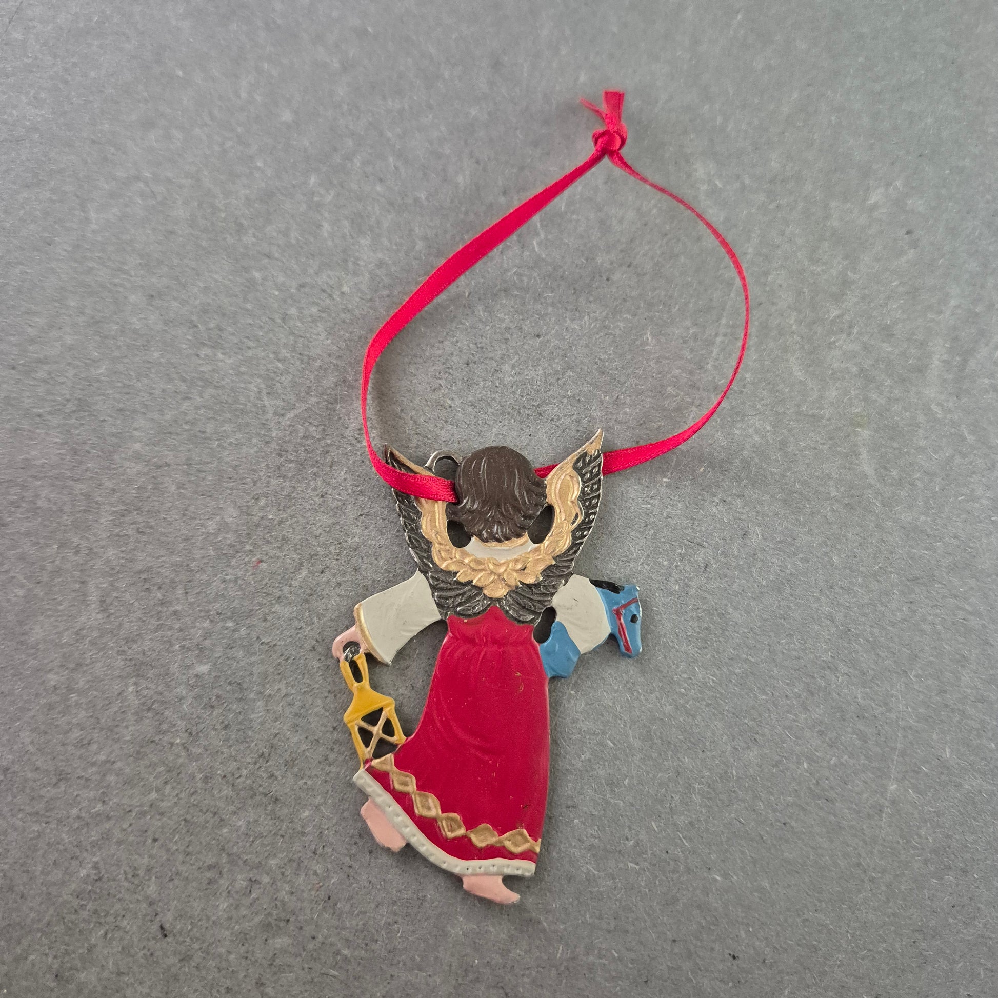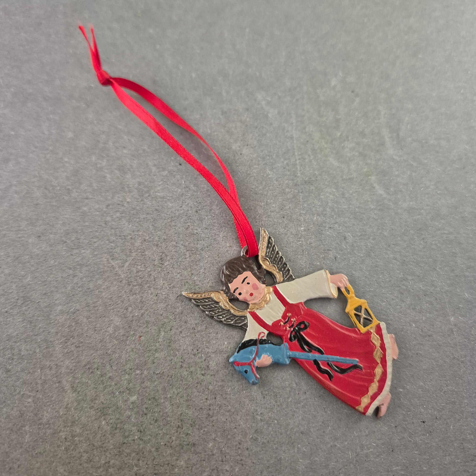 Dieser handbemalte Weihnachts Anhänger in Form eines Engels verleiht Ihrem Baum oder Ihrer festlichen Dekoration eine liebevolle, traditionelle Note. Der Engel trägt ein rotes Gewand, hält eine Laterne sowie ein blaues Spielzeugpferd und ist mit goldfarbenen Flügeln verziert. Dank des roten Bandes lässt sich der Anhänger einfach aufhängen und vielseitig einsetzen – ob am Weihnachtsbaum, an Zweigen oder als Teil einer festlichen Tischdeko.