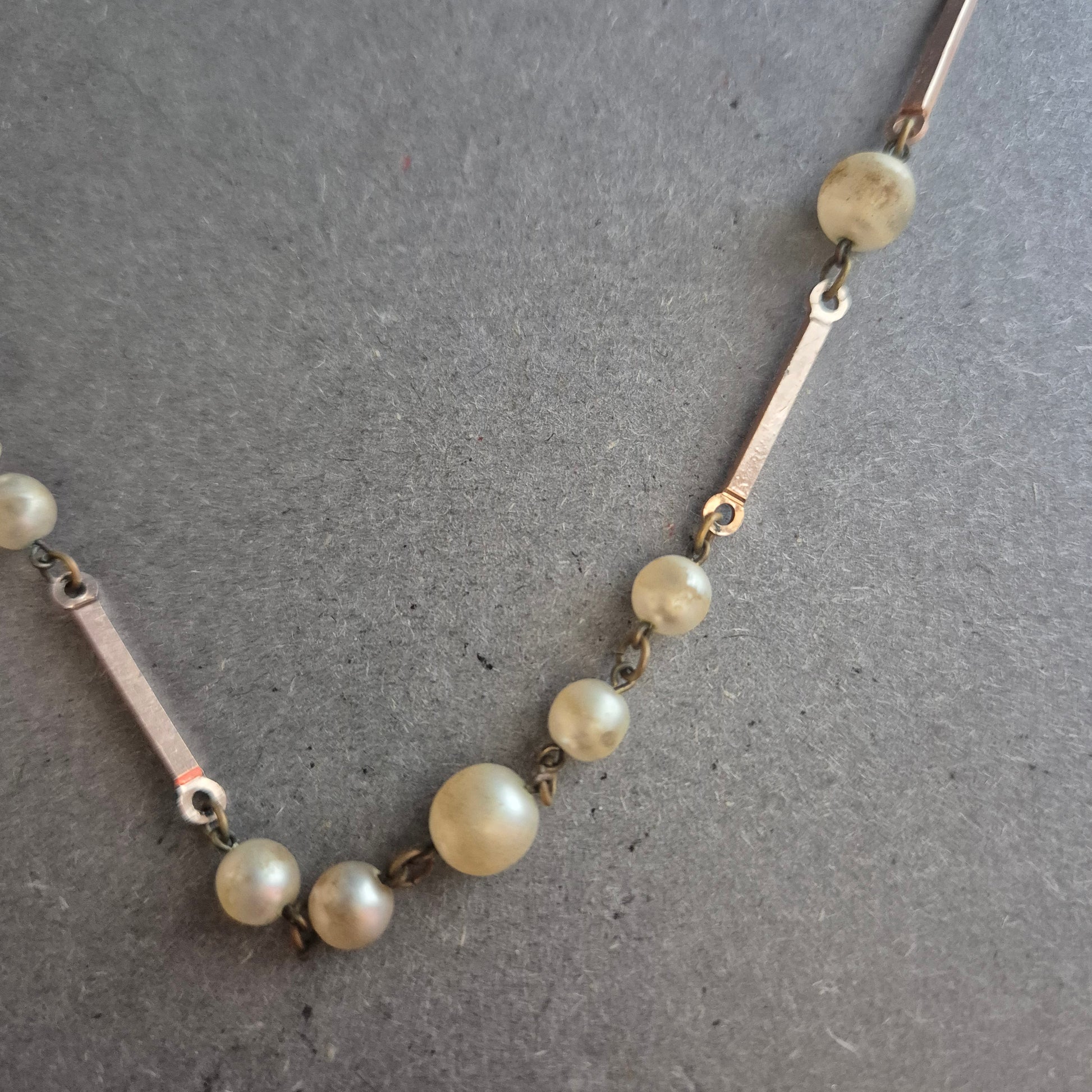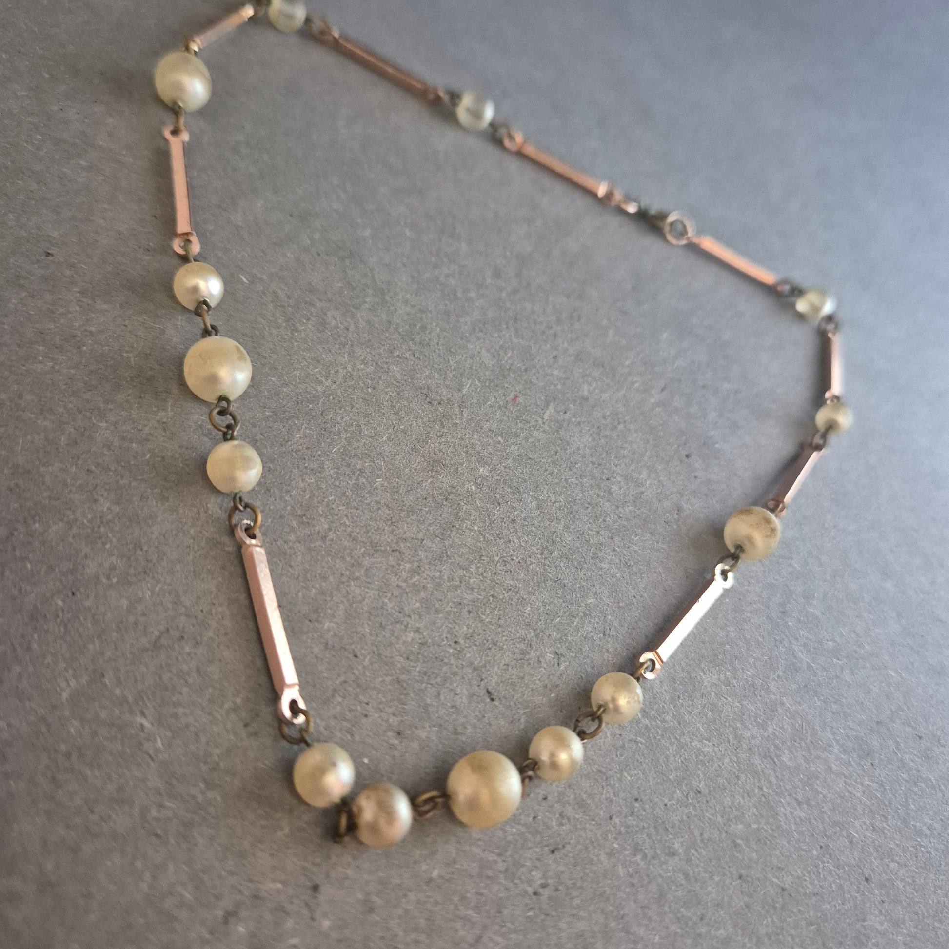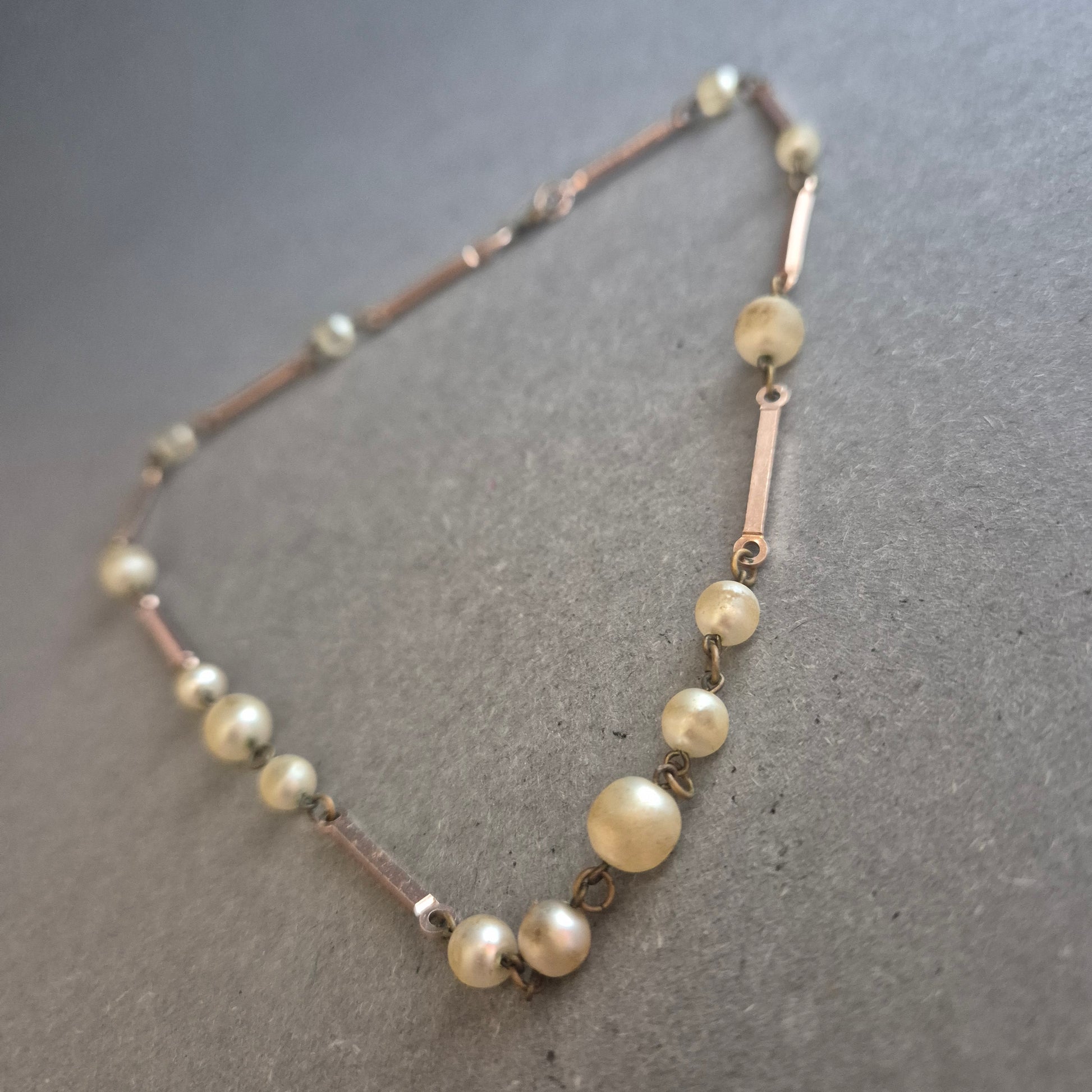 Zarte Vintage-Halskette mit Cremeperlen und Stabgliedern